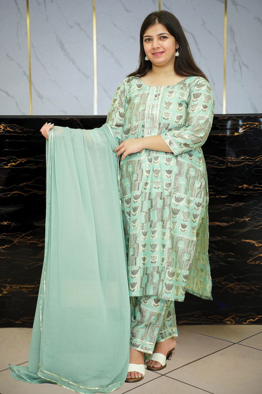 Dusty Green Sequined Georgette Suit