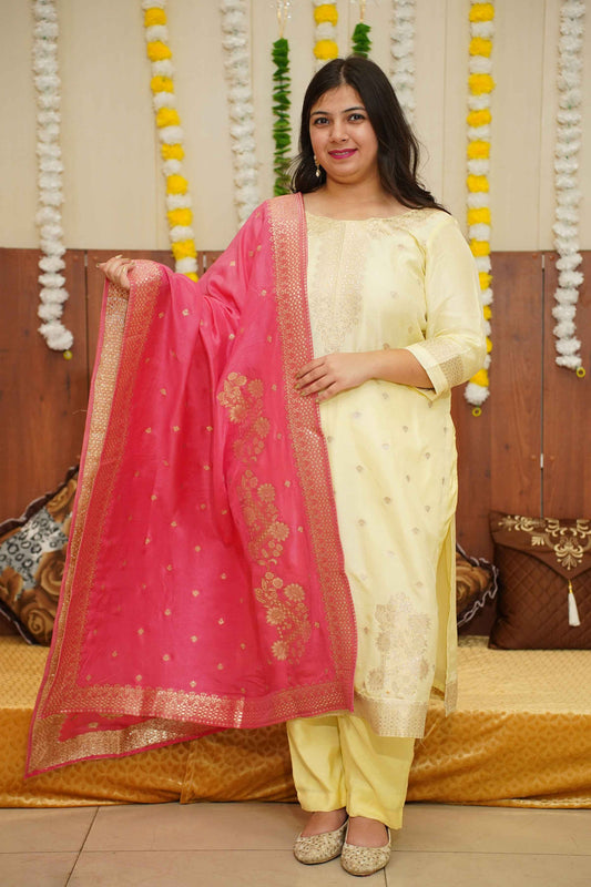 Noor Pallav Suit Set With Zari & Thread Embroidery