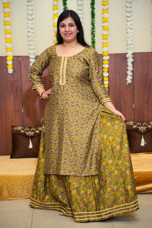 Zavira Tissue Shimmer Embroidered Sharara Suit
