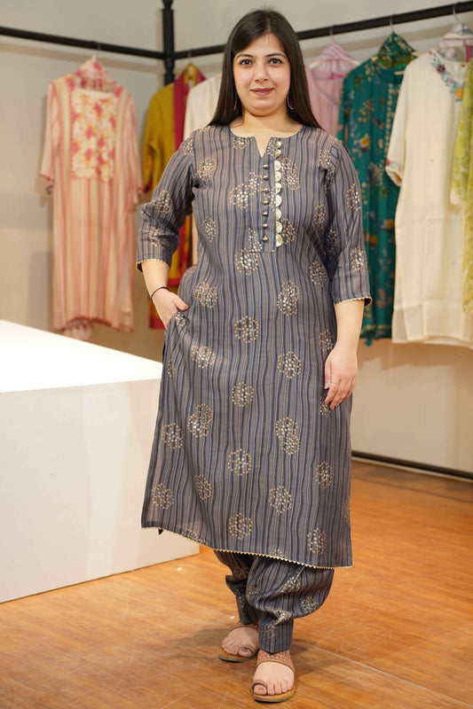 Olive Floral Muslin Suit with Thread Work