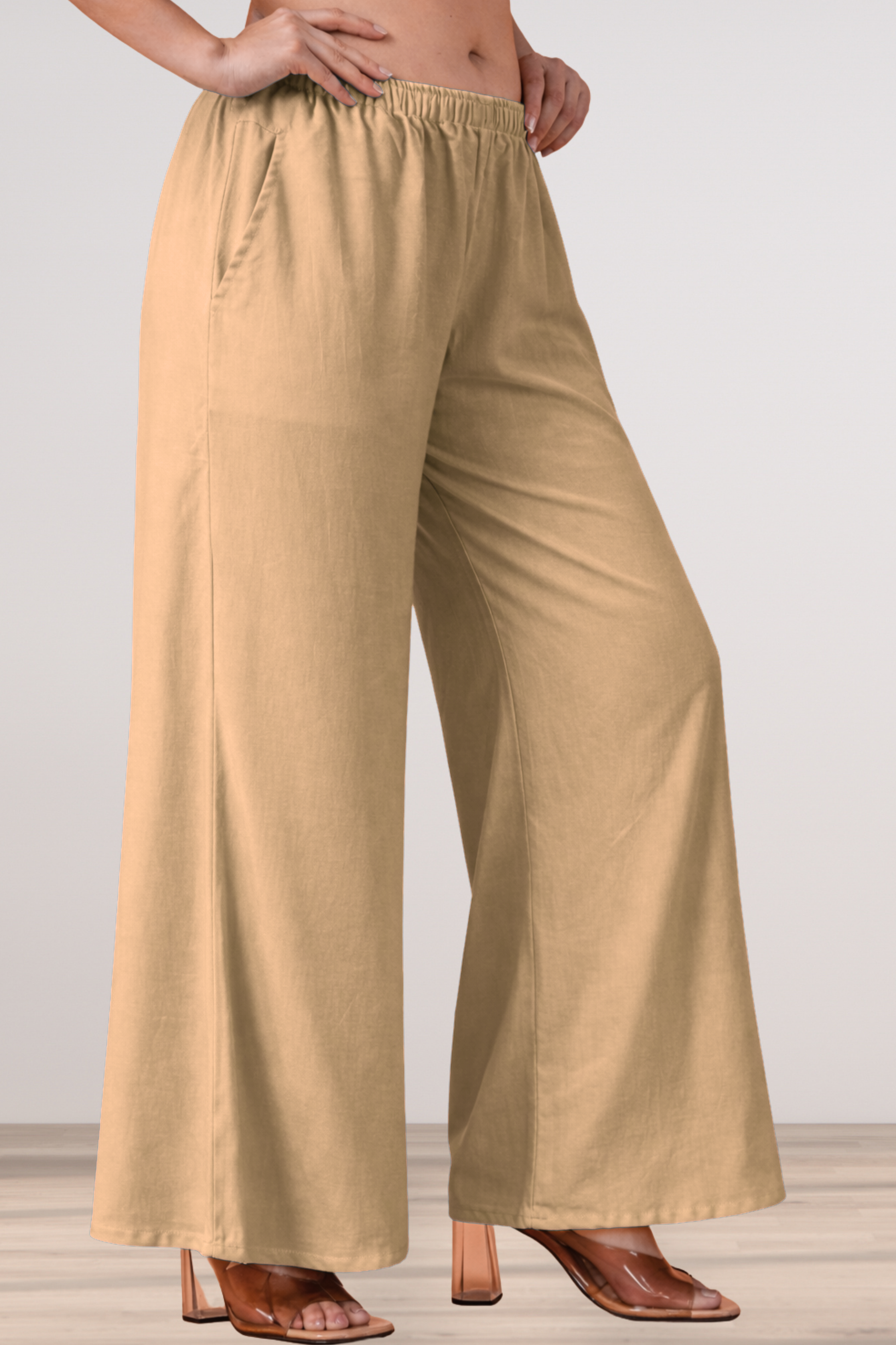 Beige Rayon Loose Palazzo
