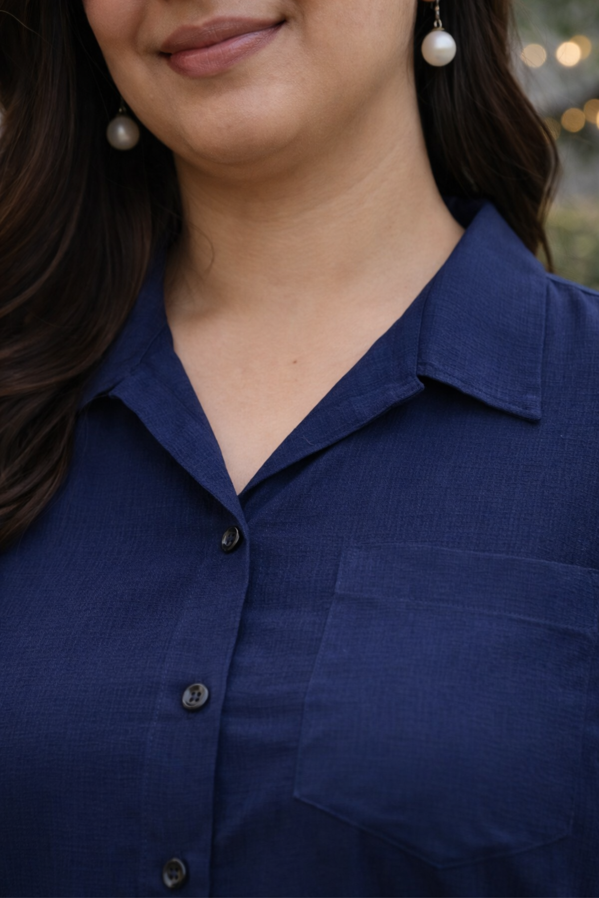 Collar neck top with a front button placket