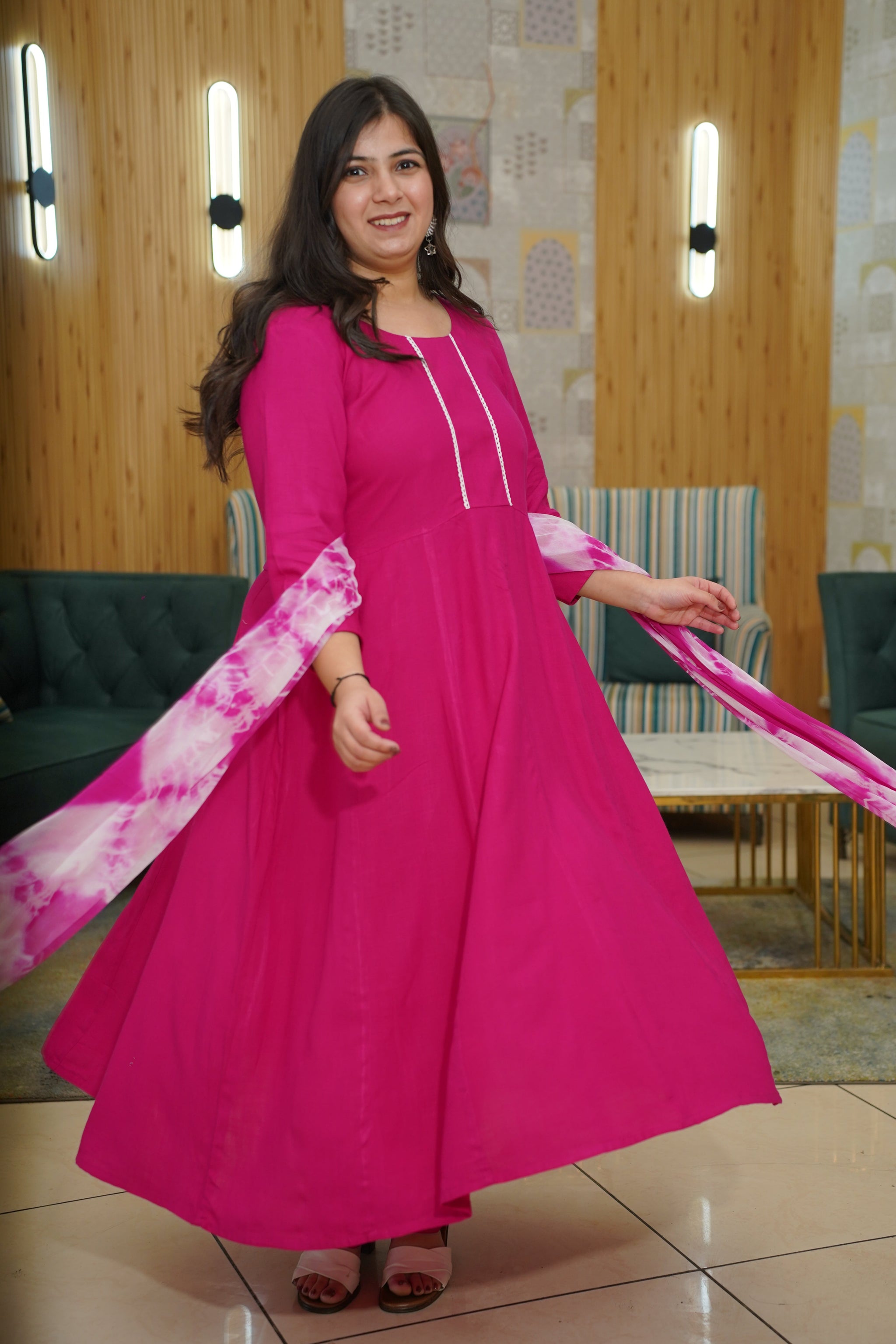 - Berry Pink Anarkali Suit Set made from Rayon fabric