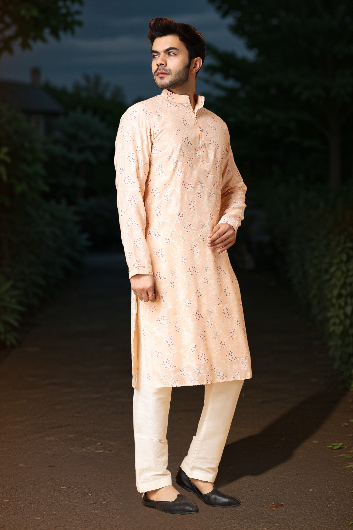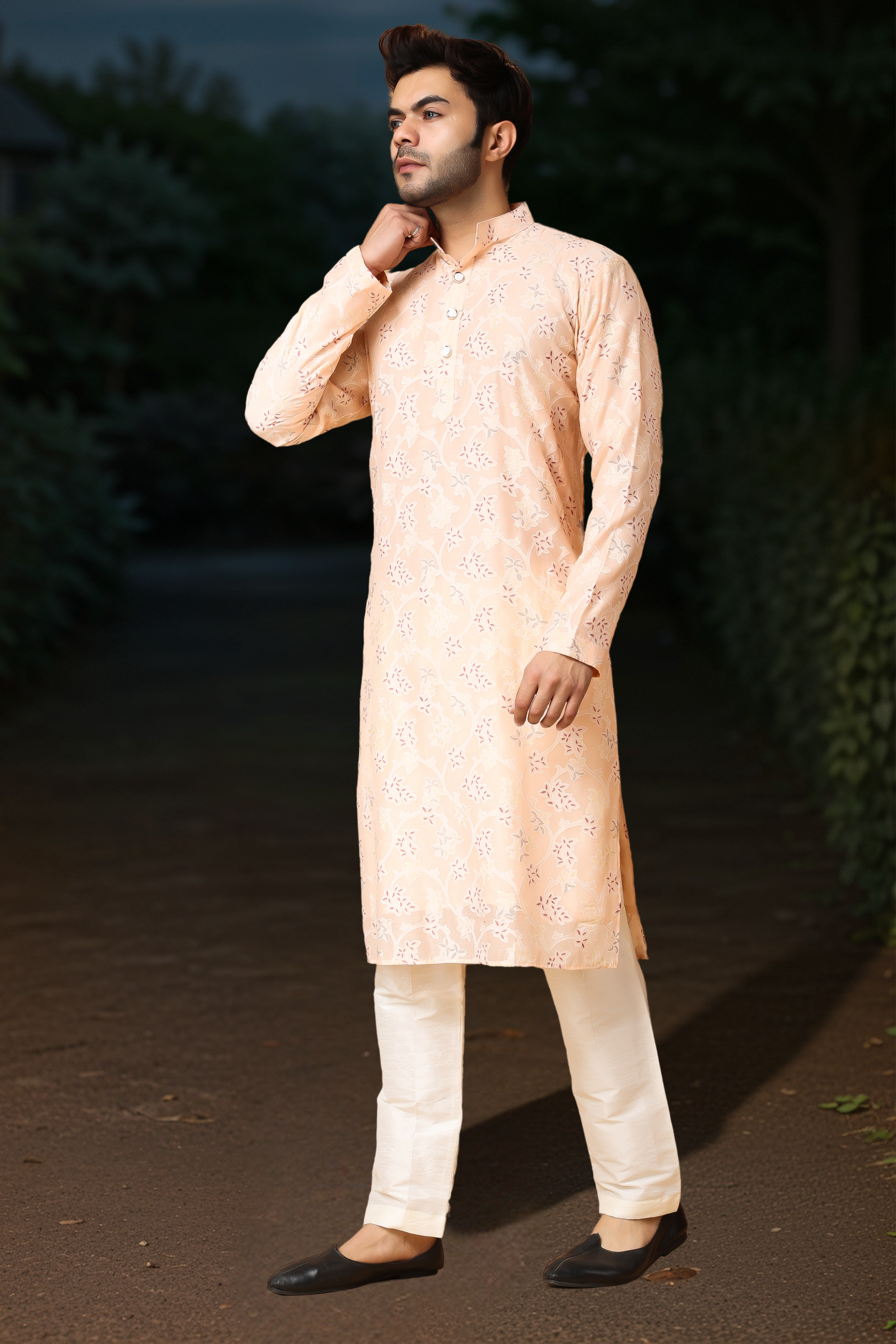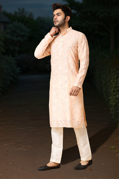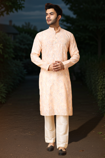 Breezy Peach Printed Kurta Pajama