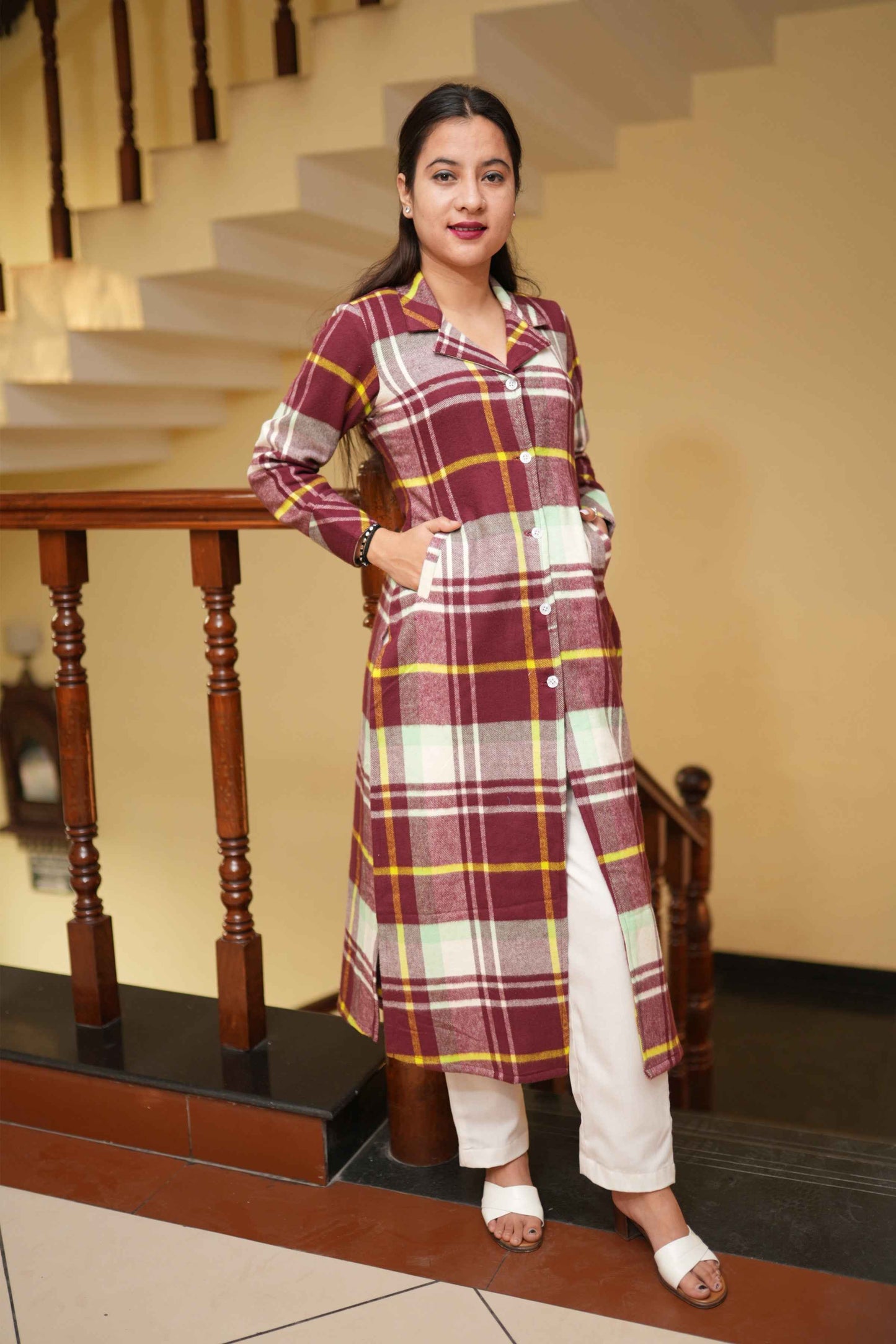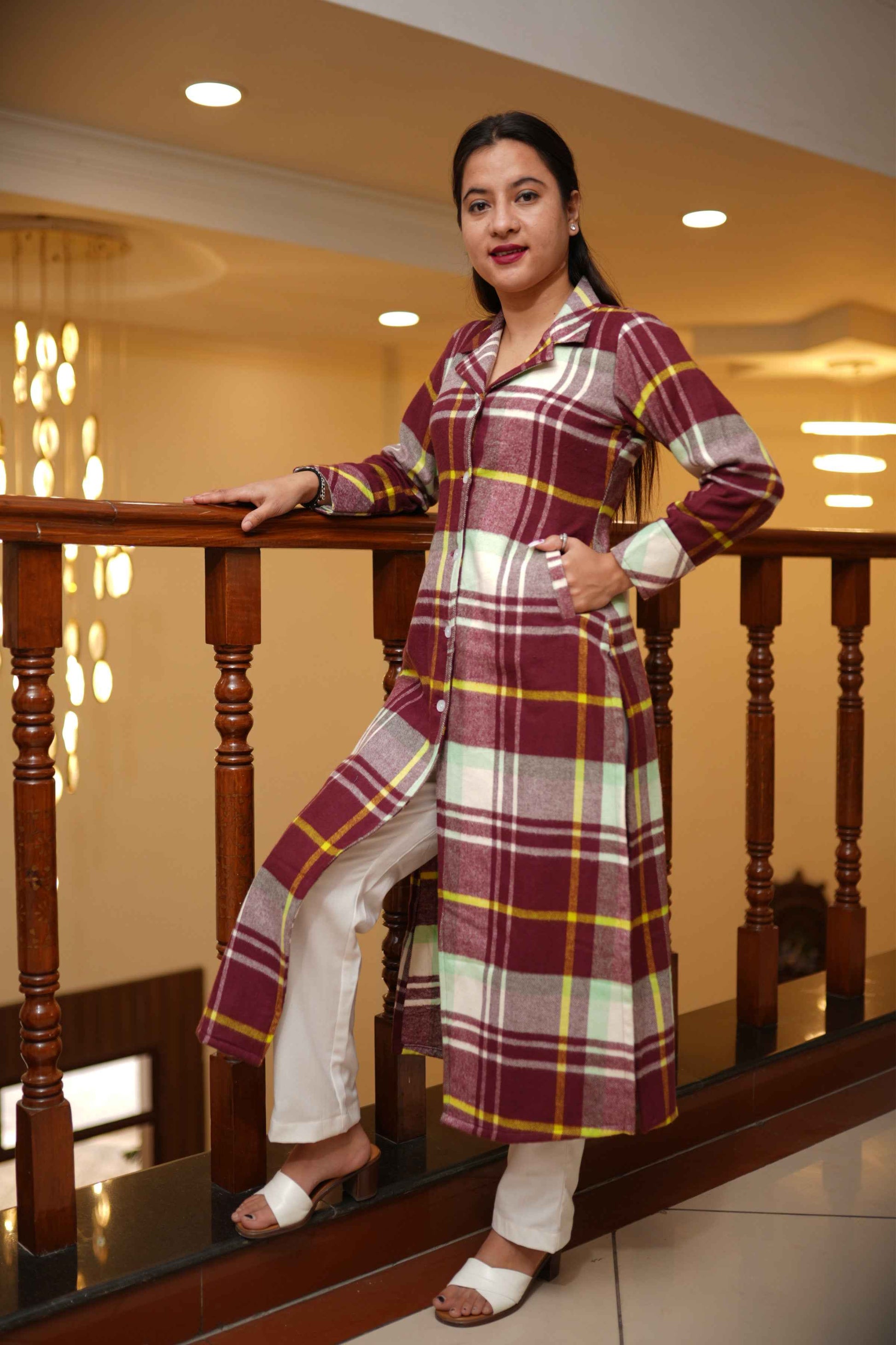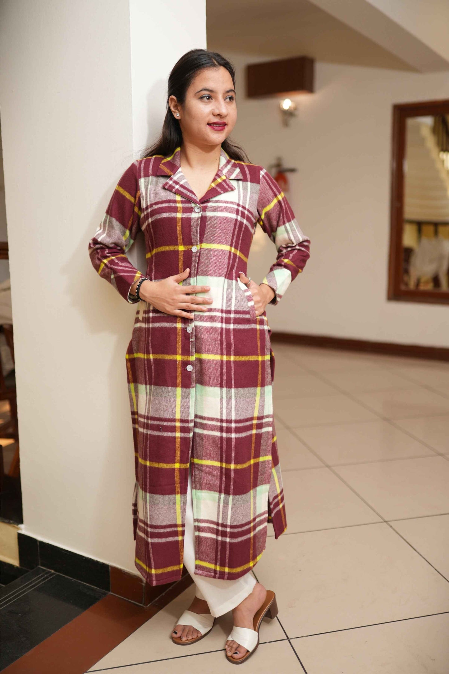 Cranberry Checked Woollen Kurta