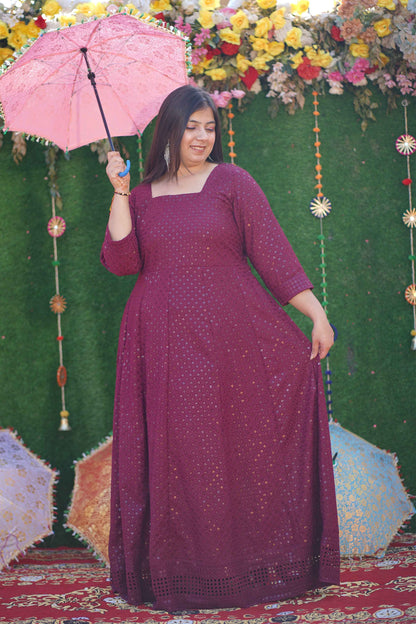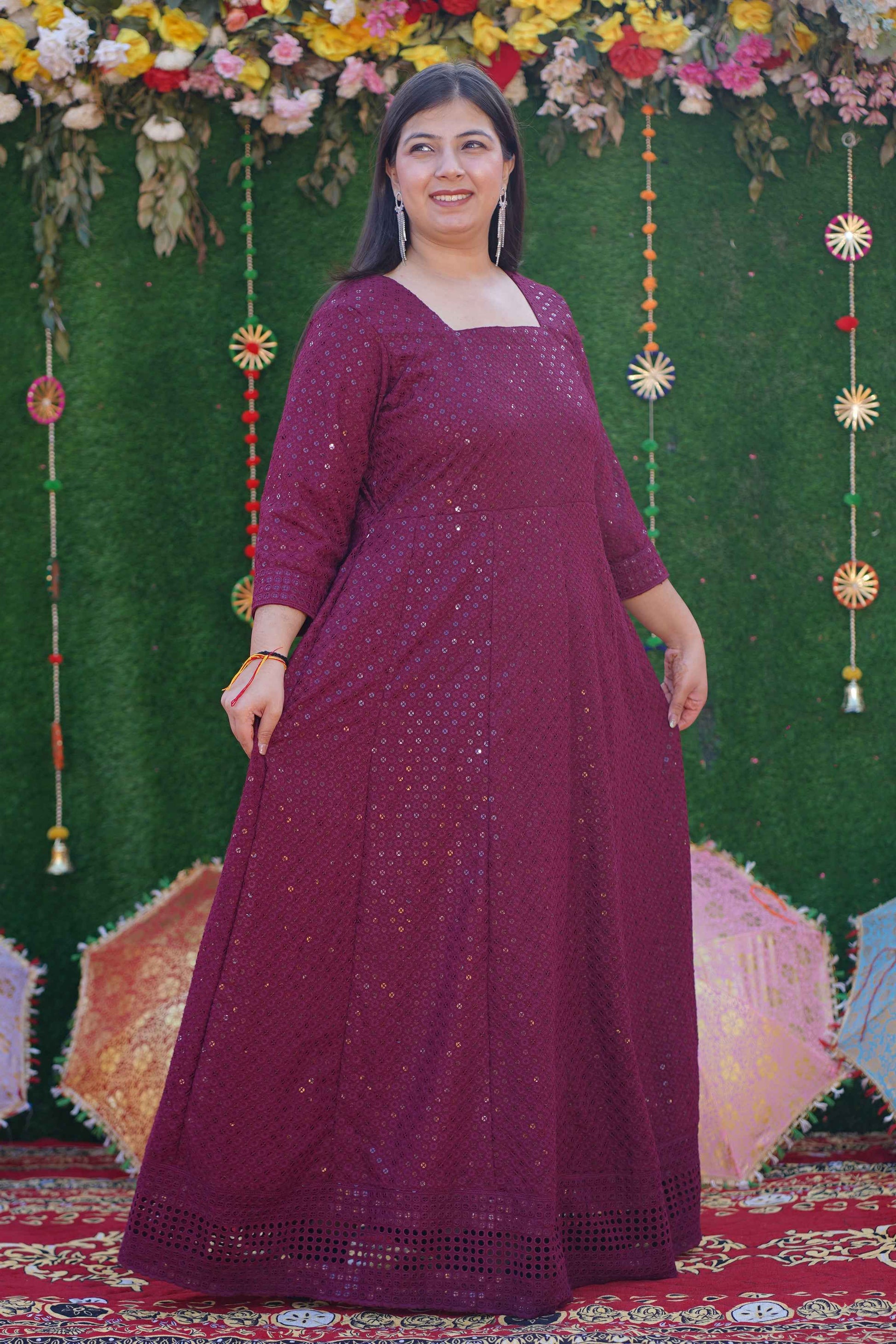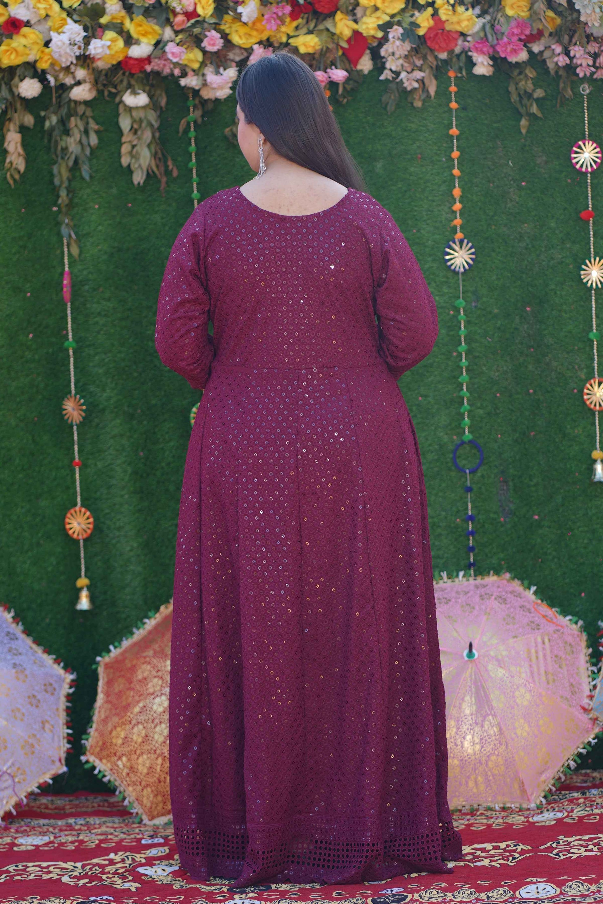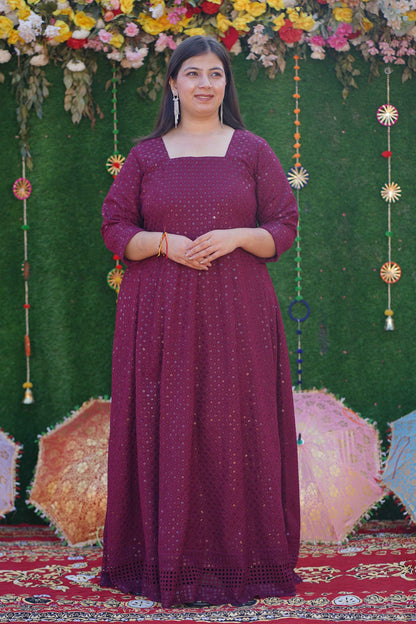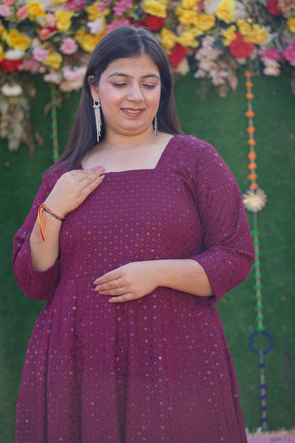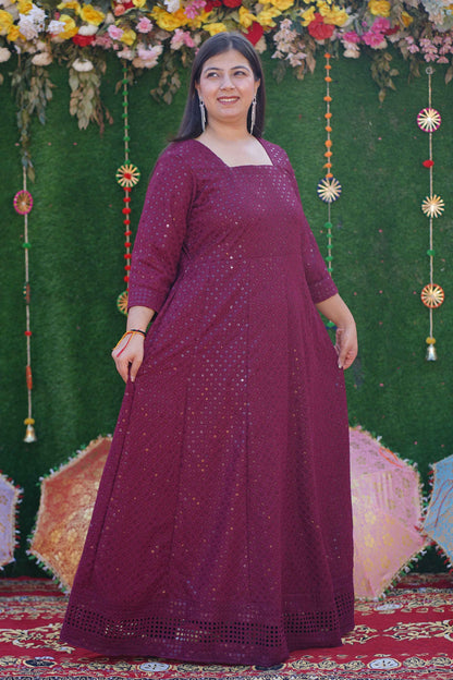 - Wine Sequin Dress made from Embroidered Viscose fabric