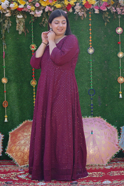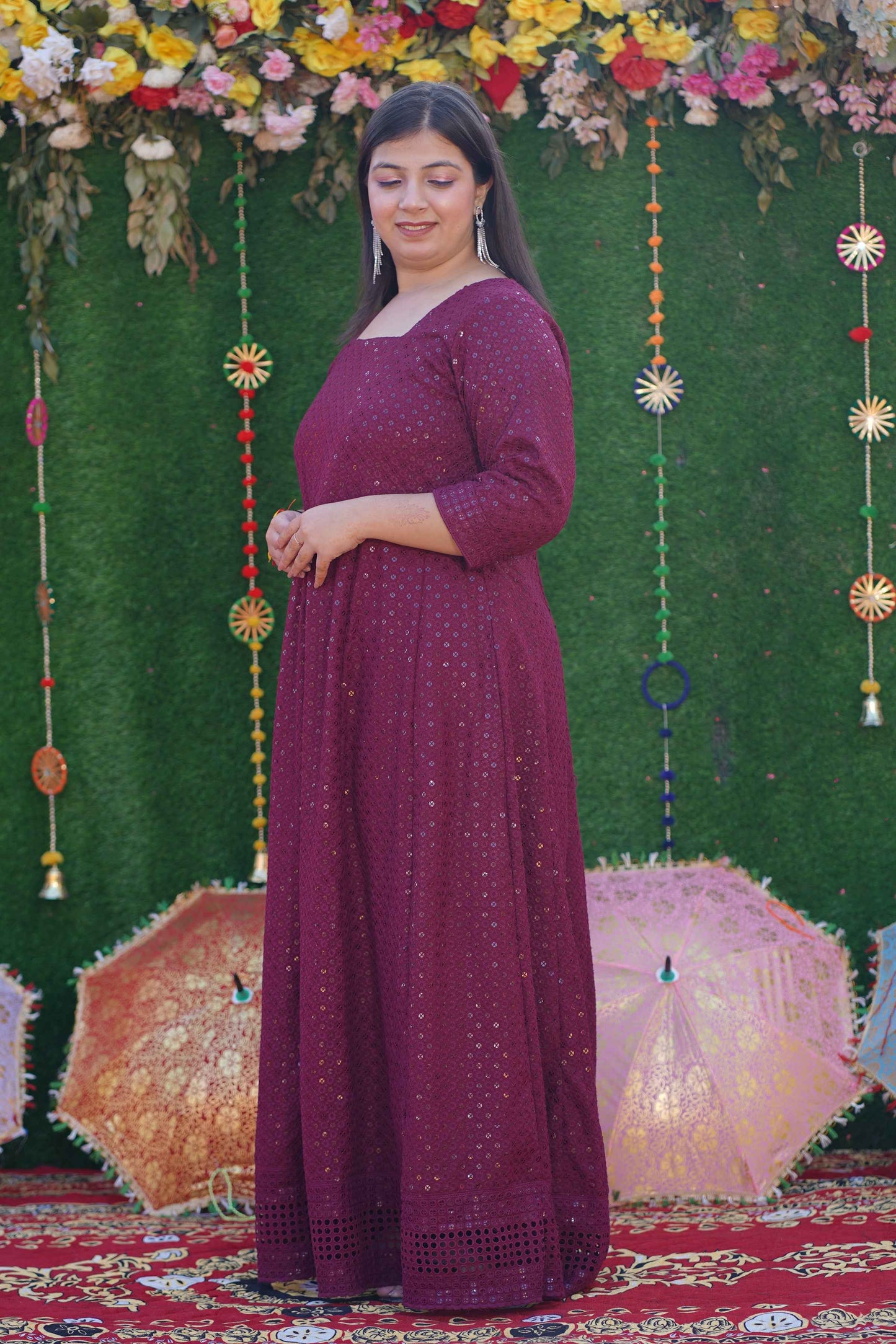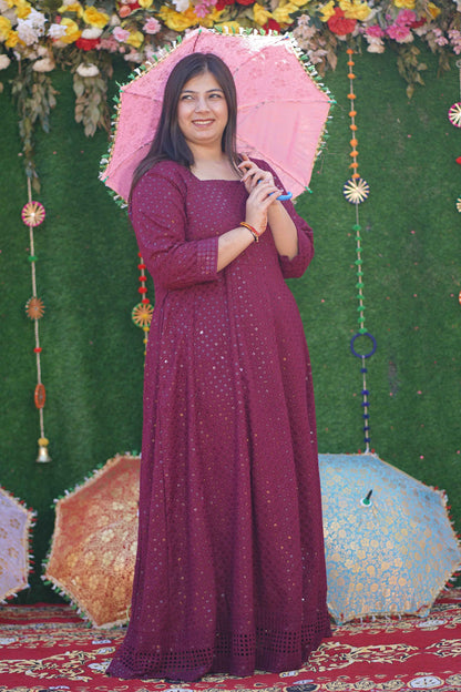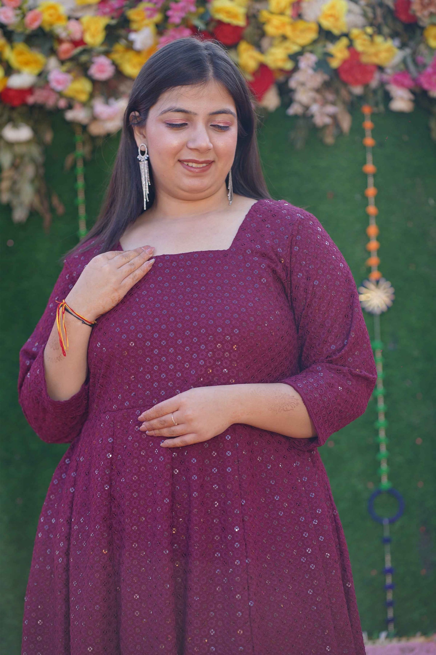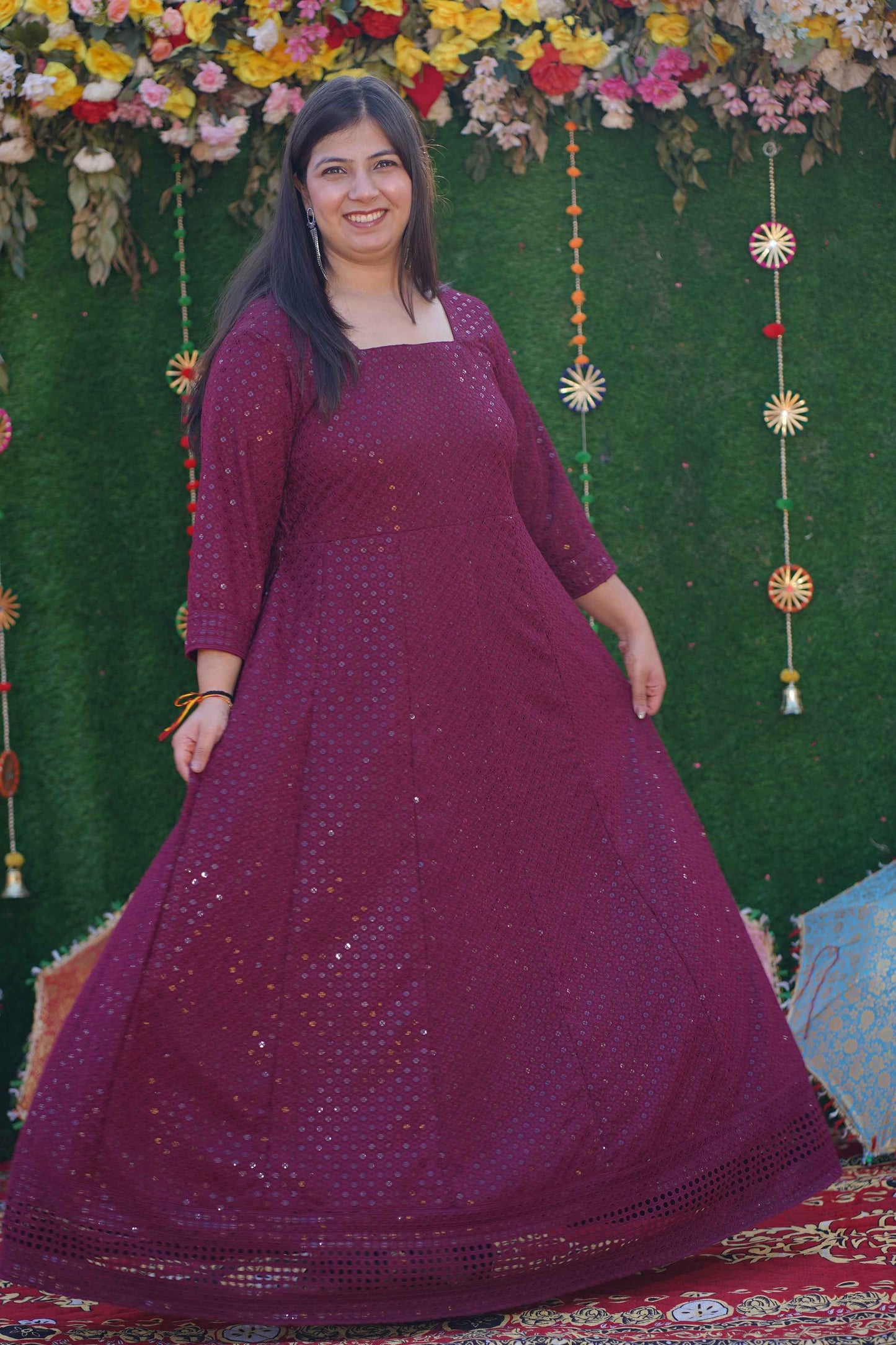 - Wine Sequin Dress made from Embroidered Viscose fabric