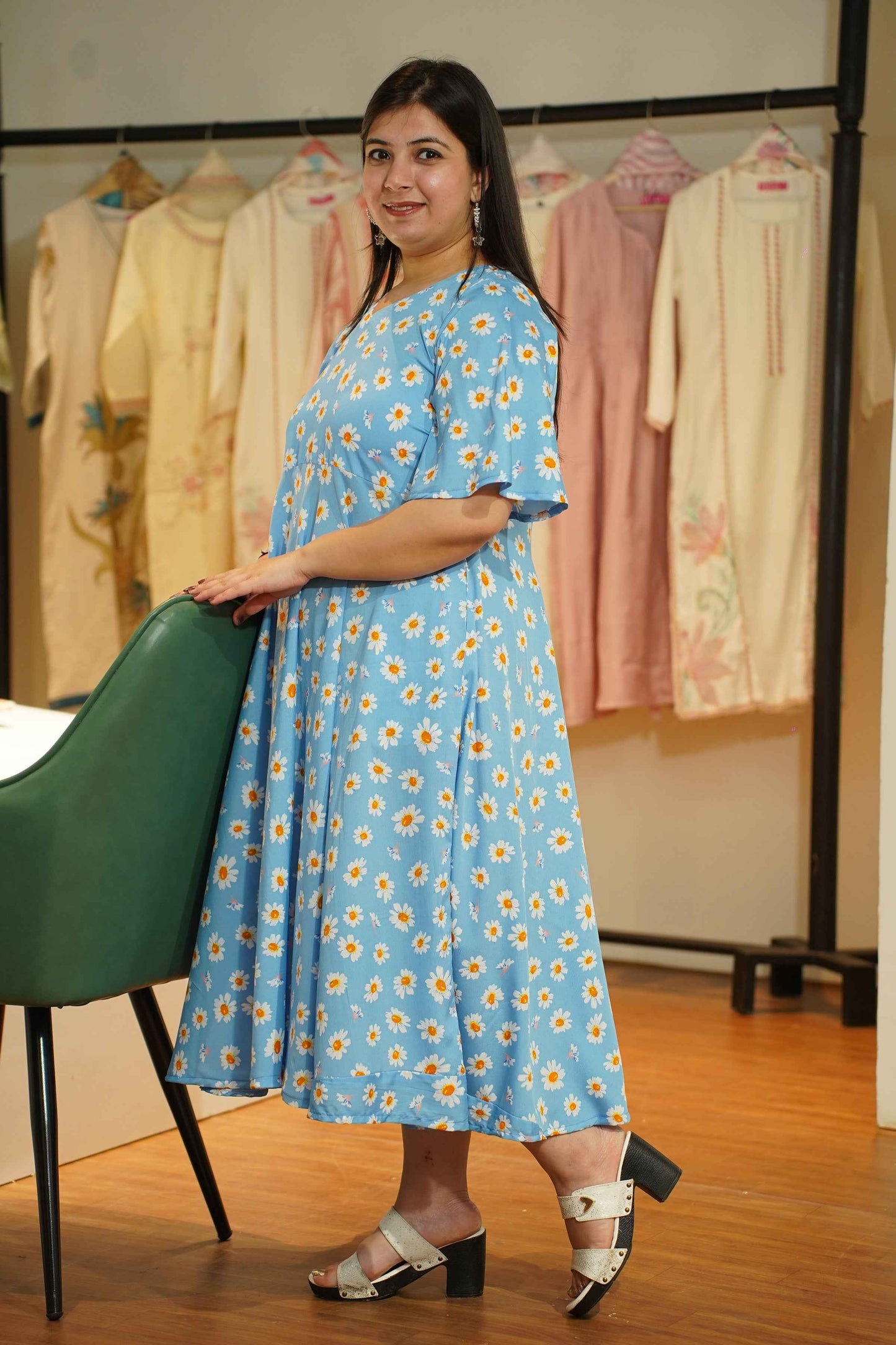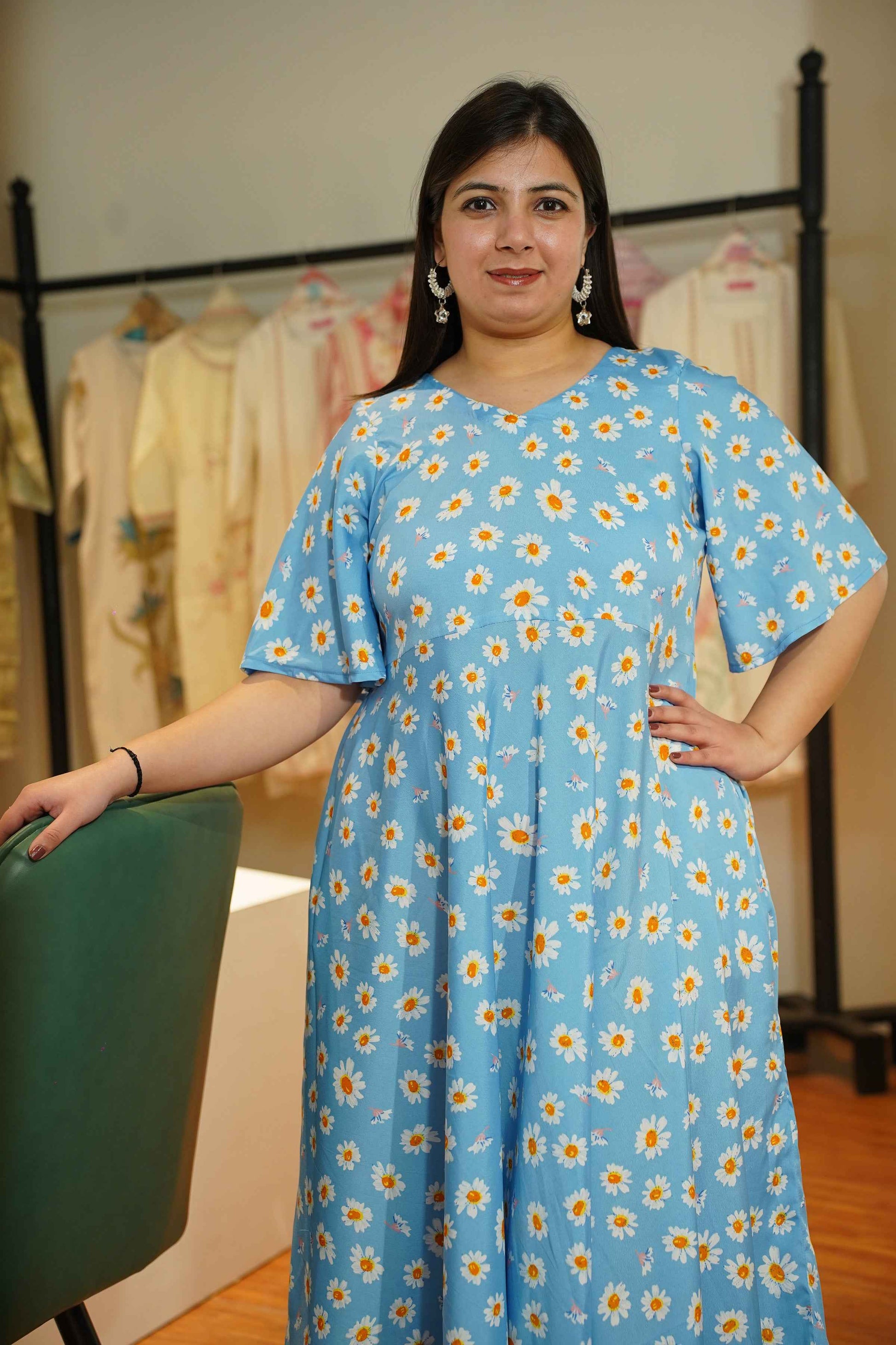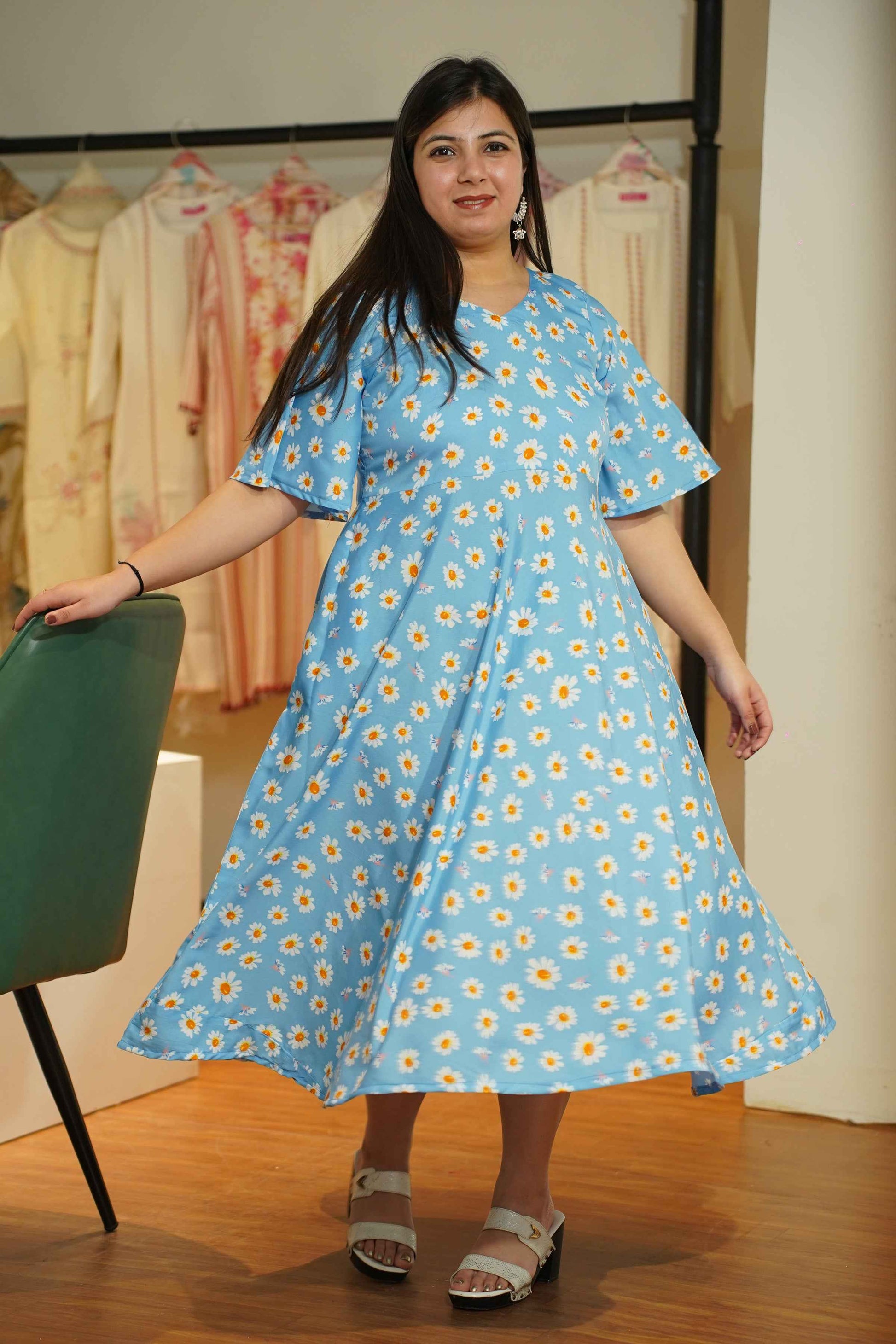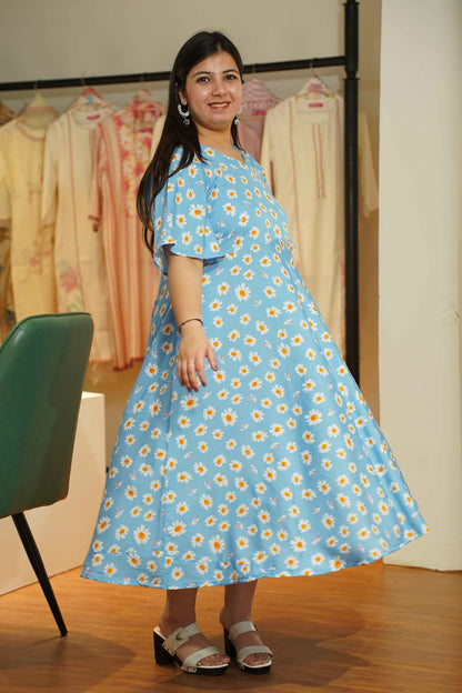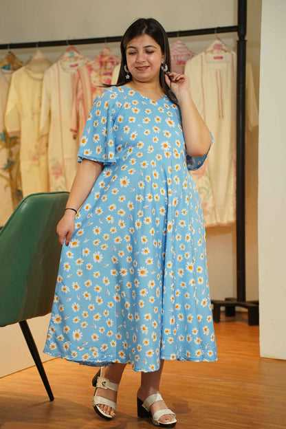 - Sky Blue color with daisy print for a fresh look