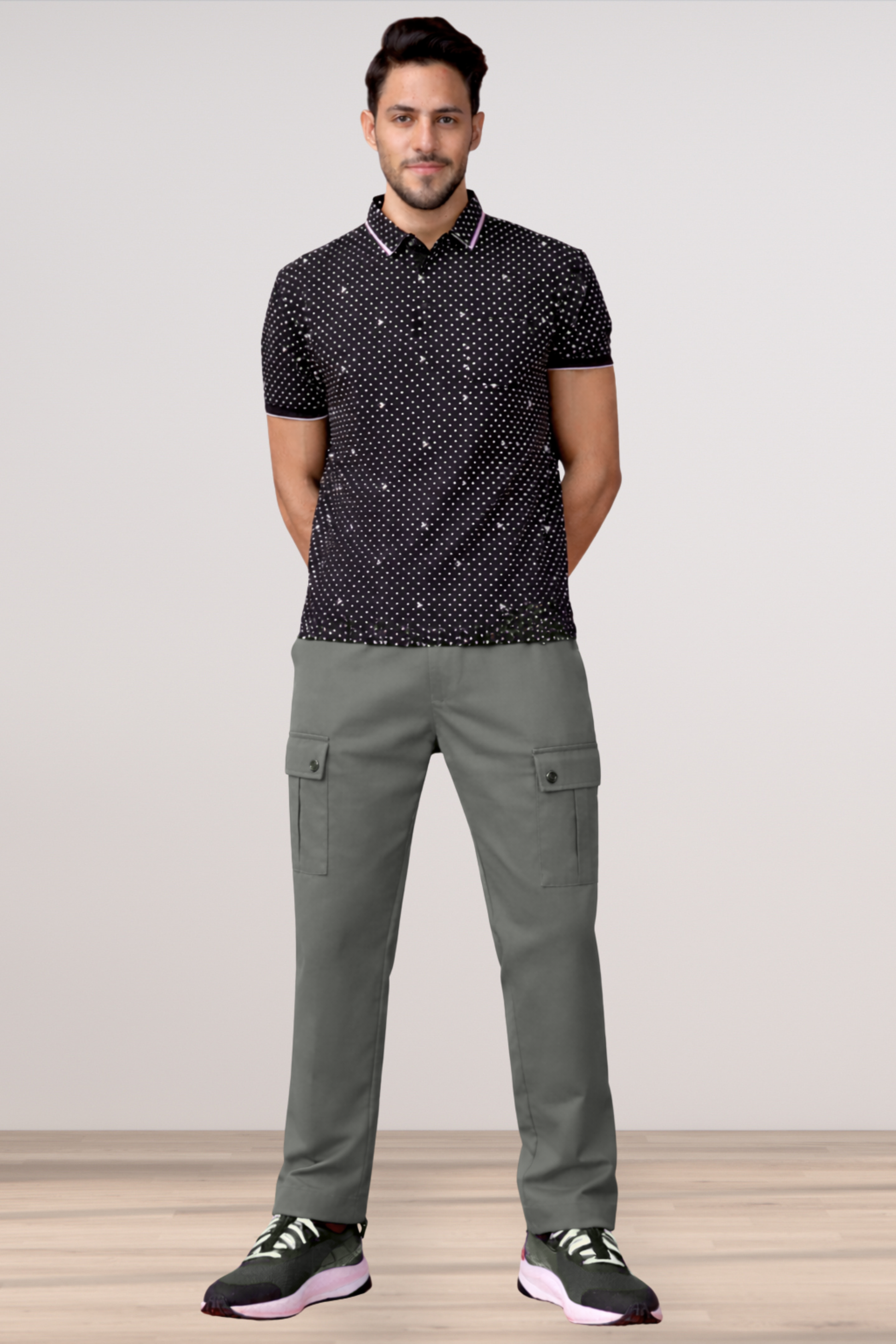 - Dark Grey Solid Stretch Cargo Pants
