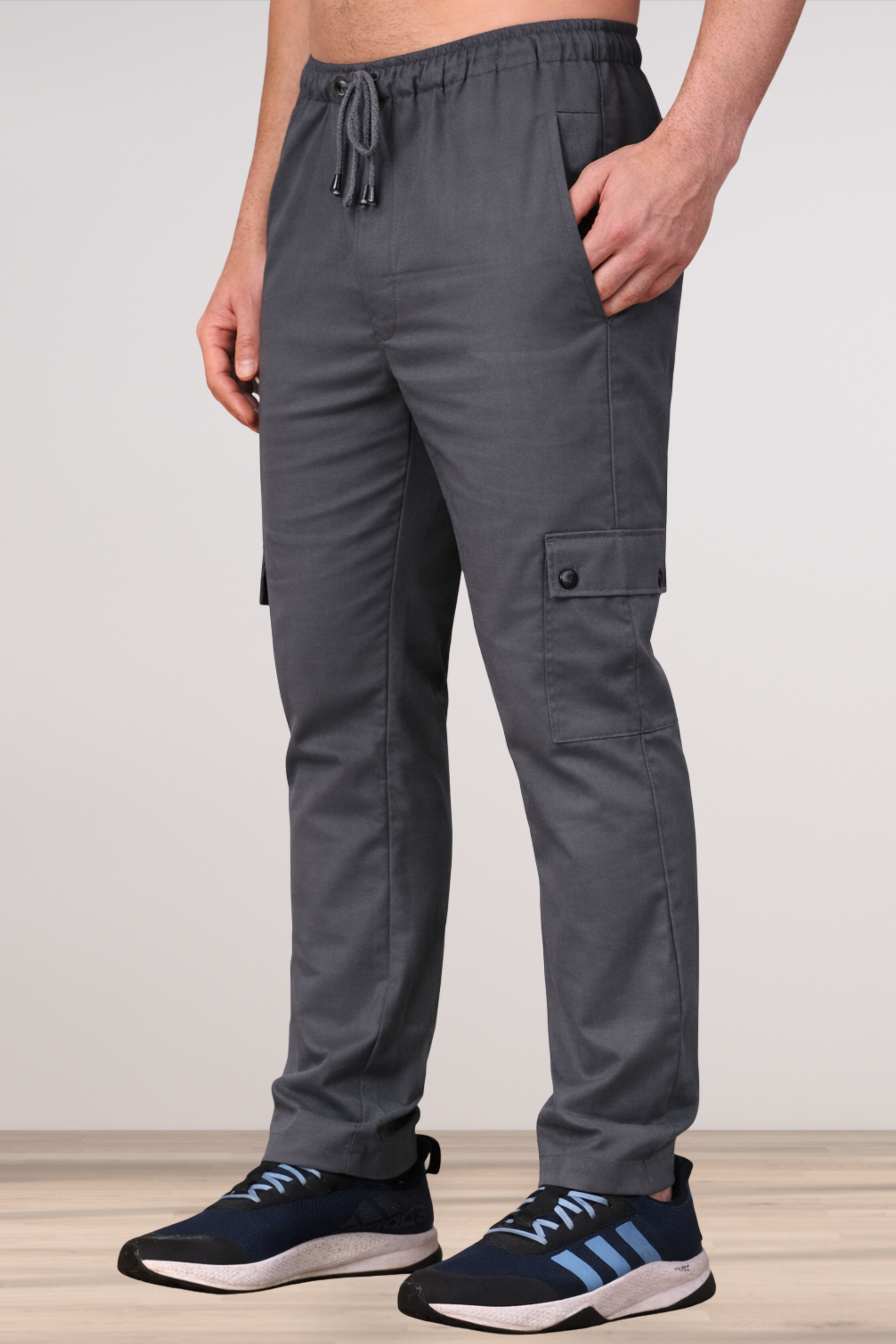 Introducing the Smoke Grey Textured Cargo, expertly crafted from high-quality Lycra Poly Viscose fabric. Designed for a perfect fit, these pants prioritize comfort without compromising on style. With two side pockets for practicality, they are ideal for both casual outings and relaxed days at home.