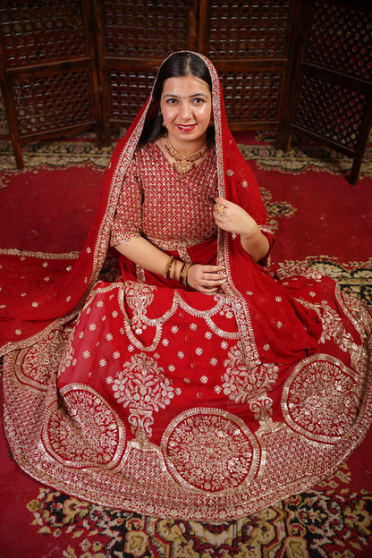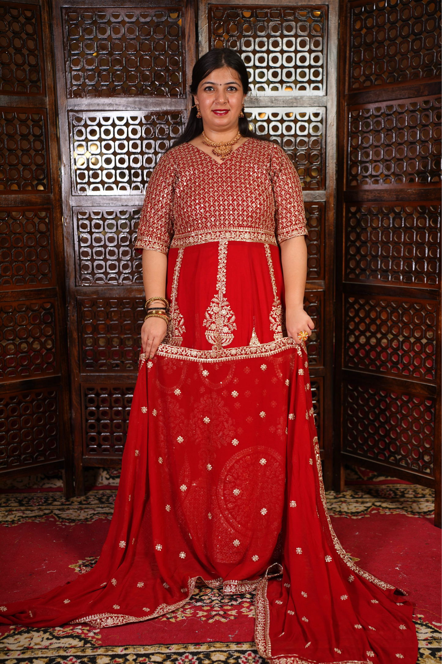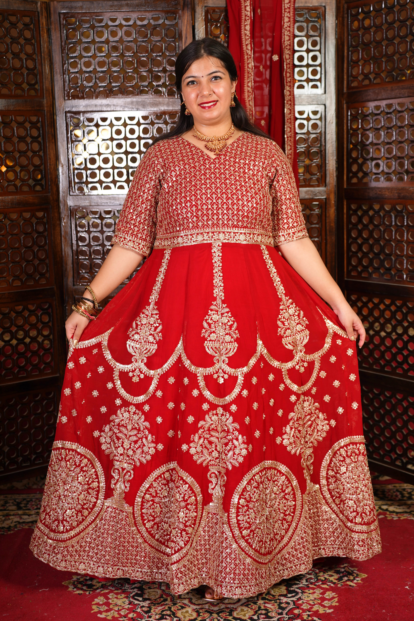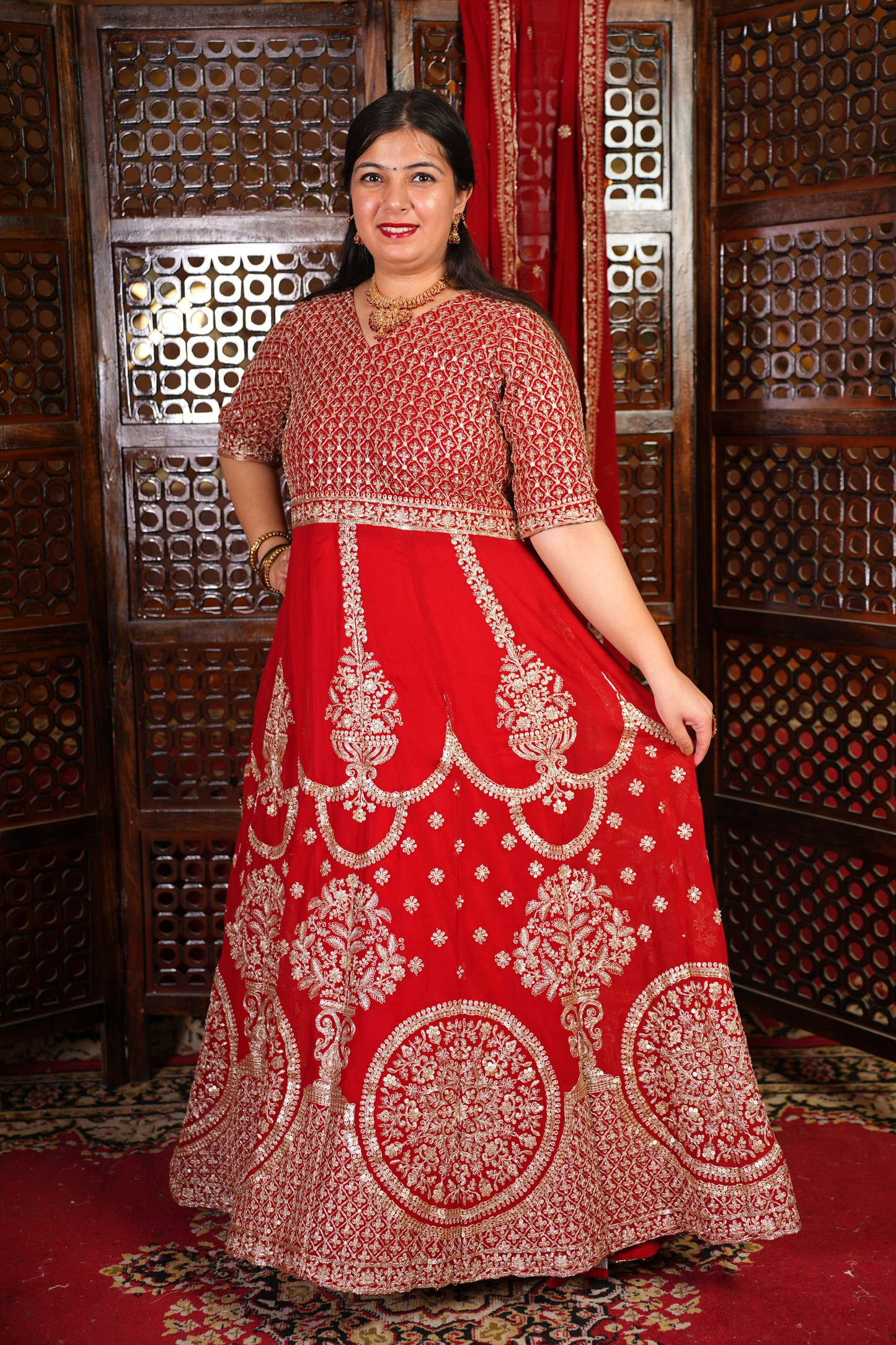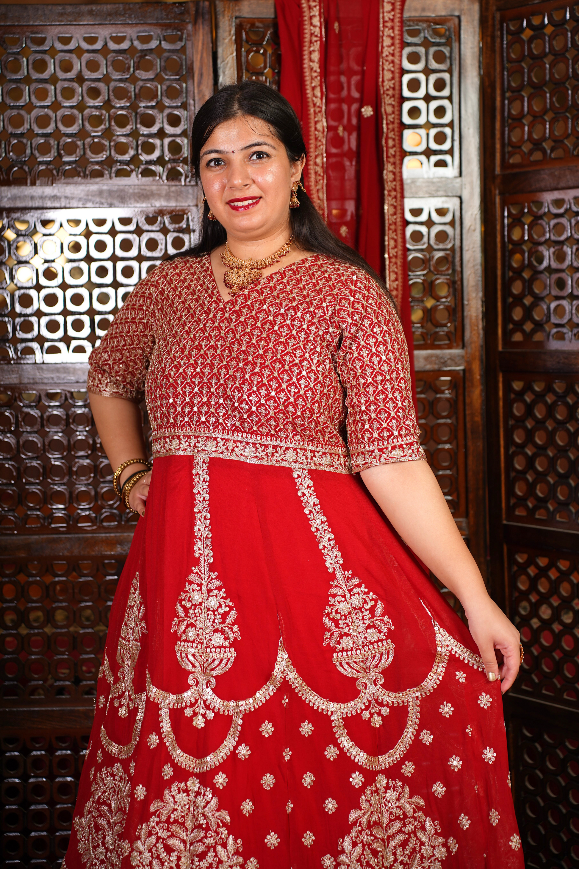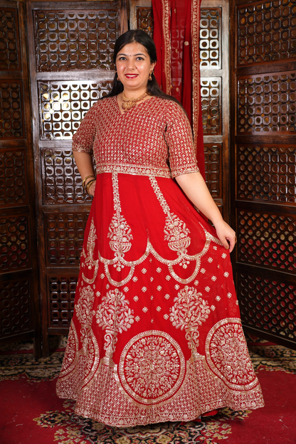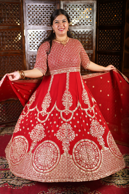 - Red Anarkali Dress made from Georgette fabric