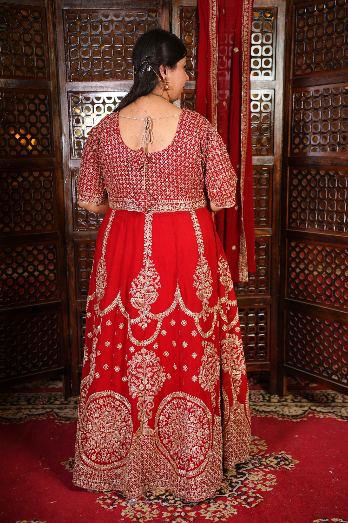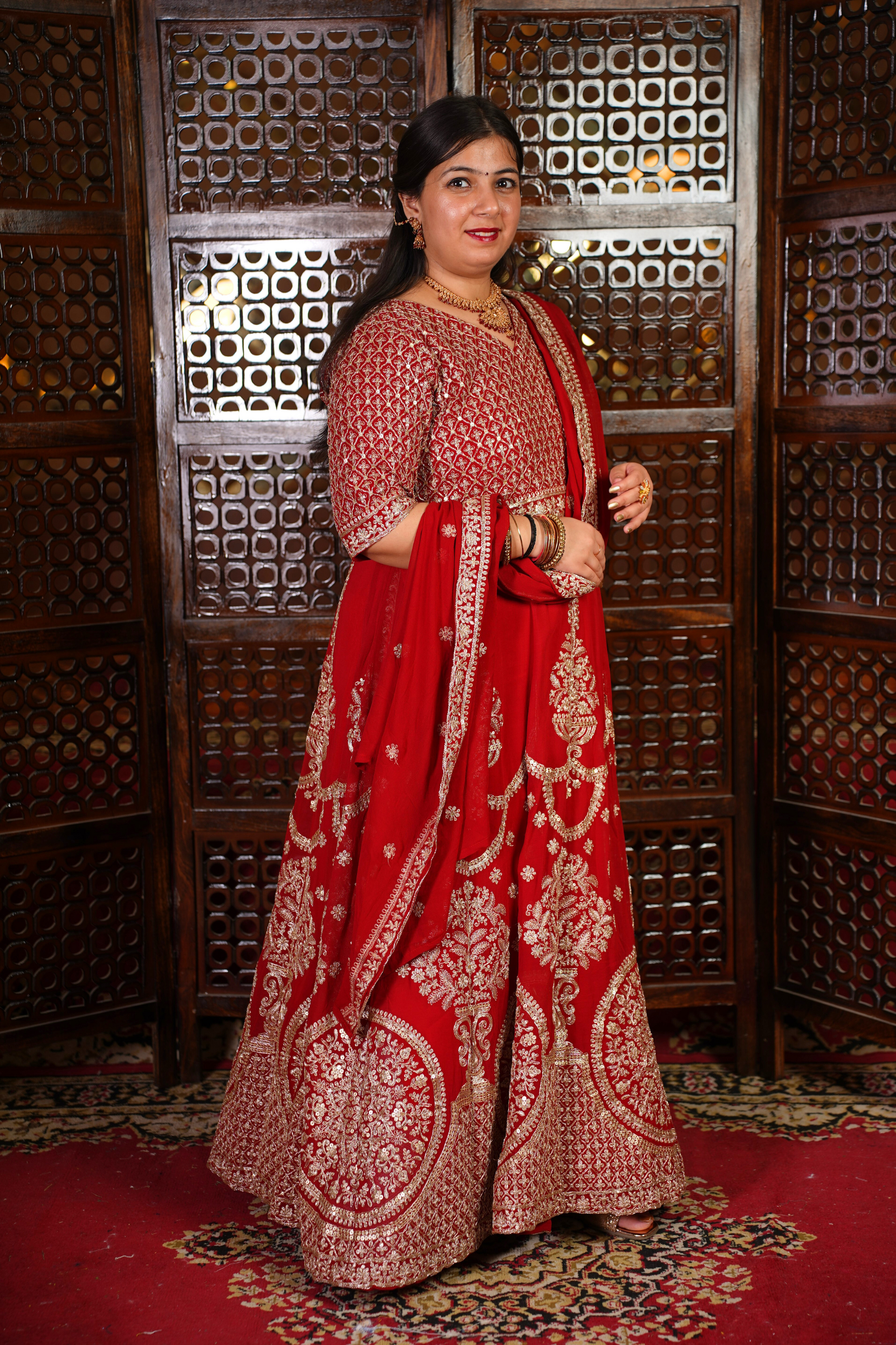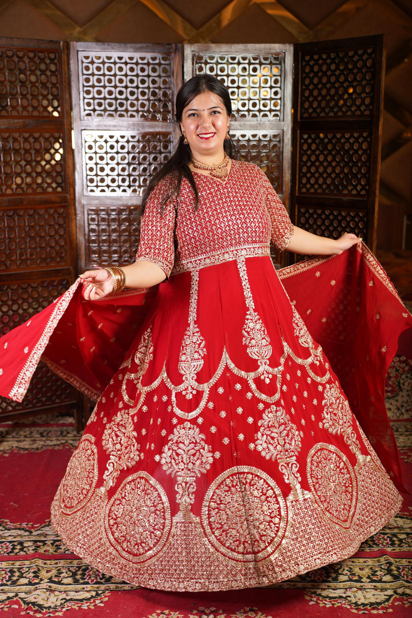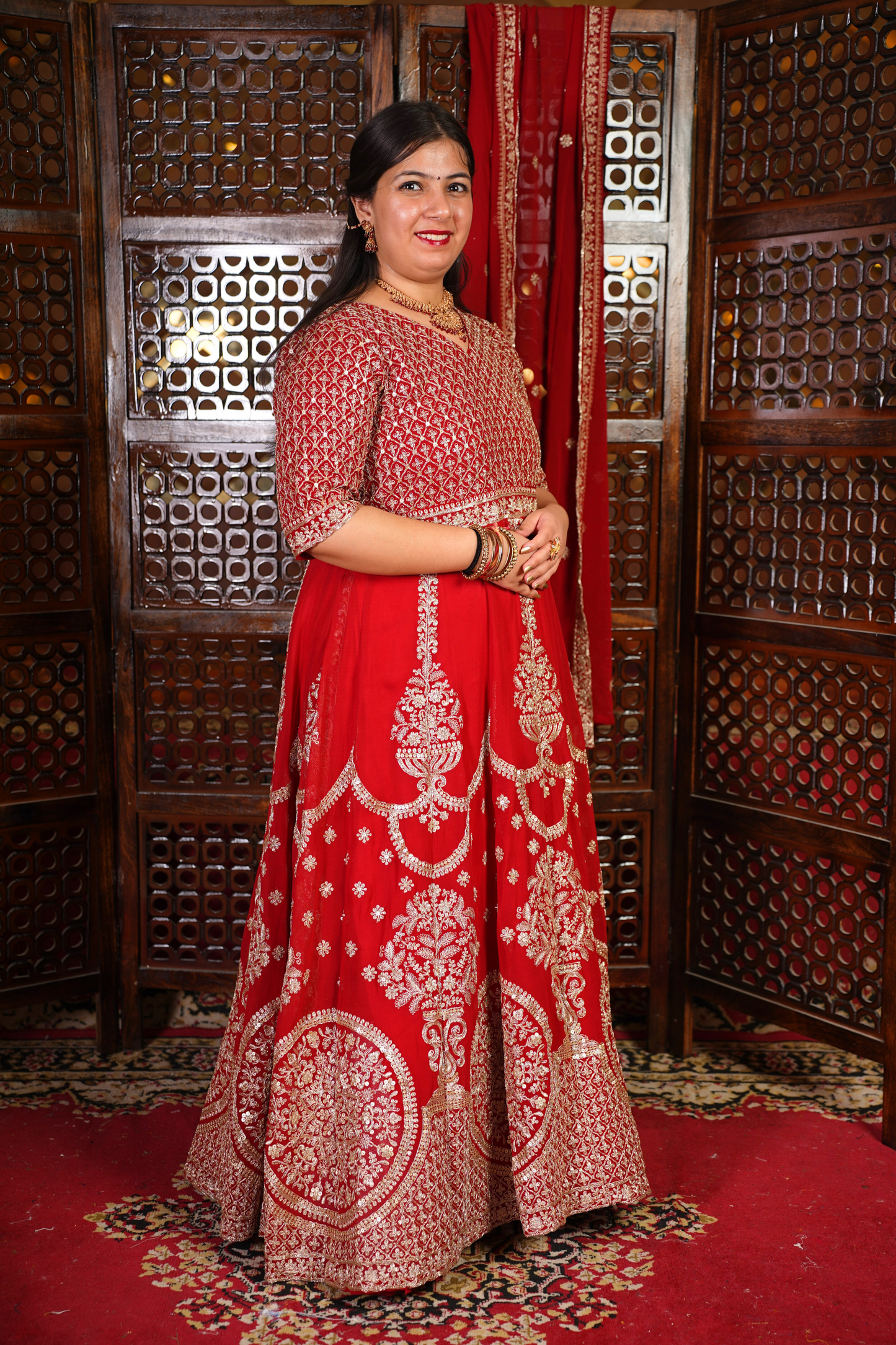 - Red Anarkali Dress made from Georgette fabric
