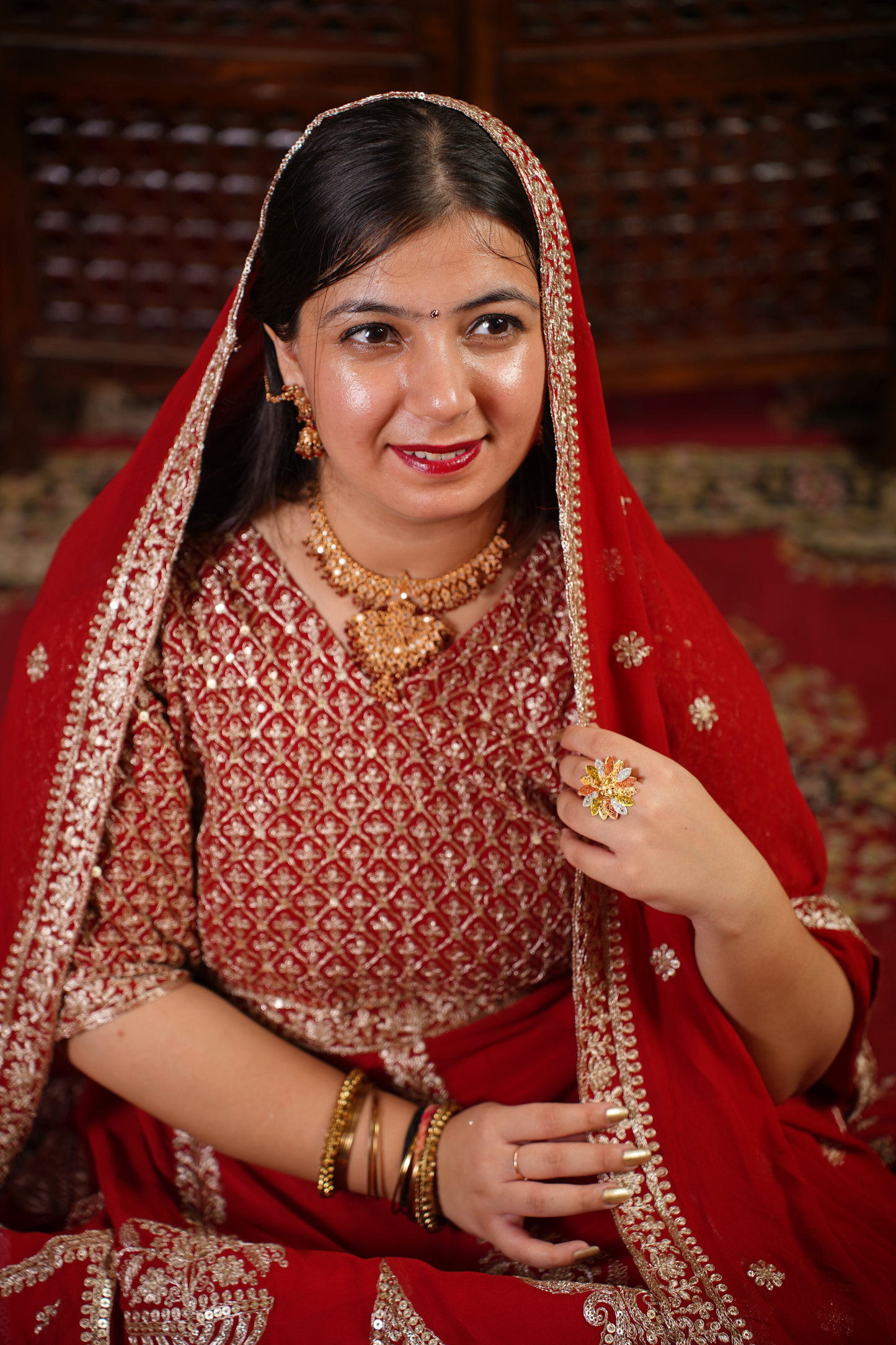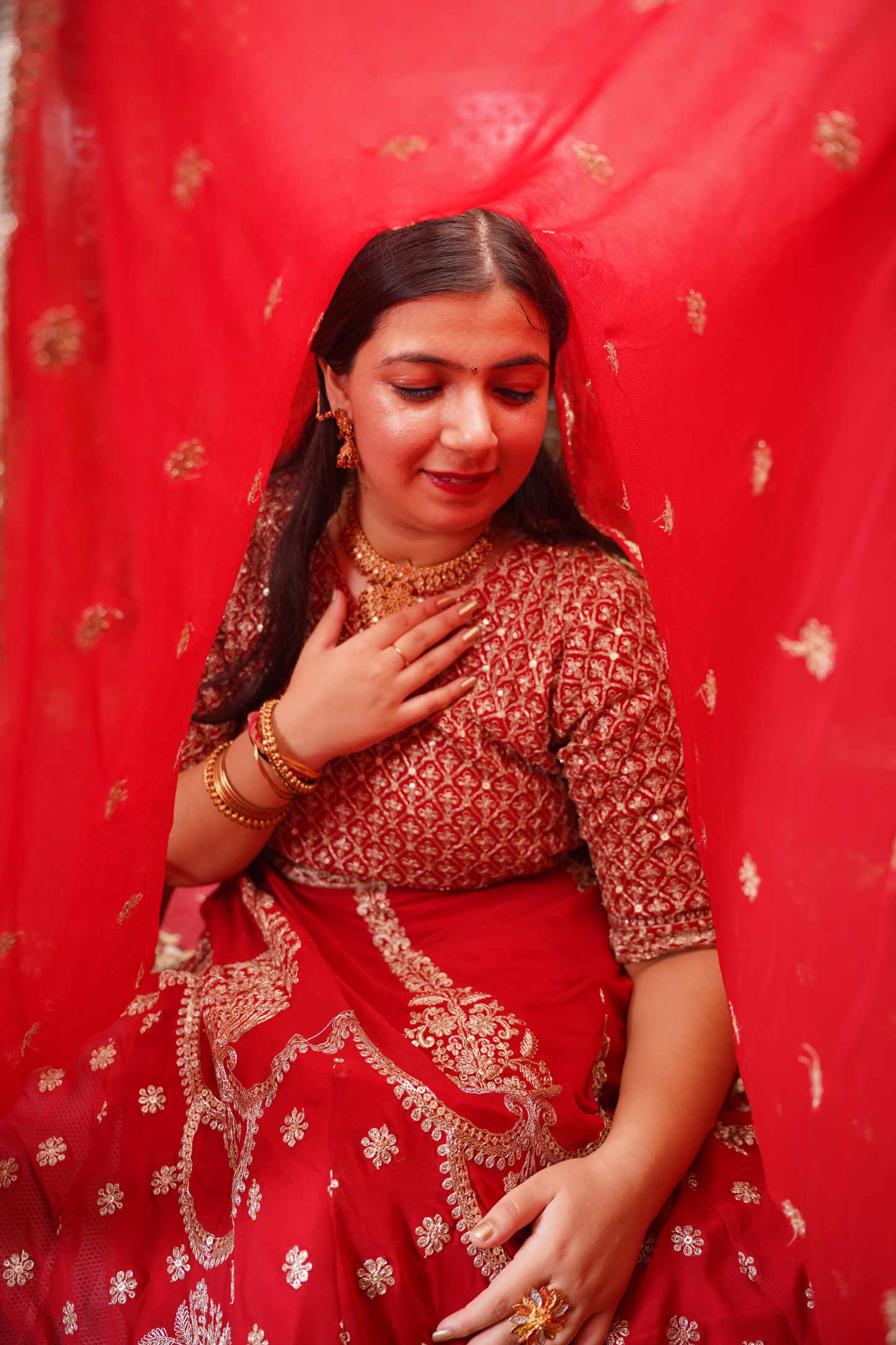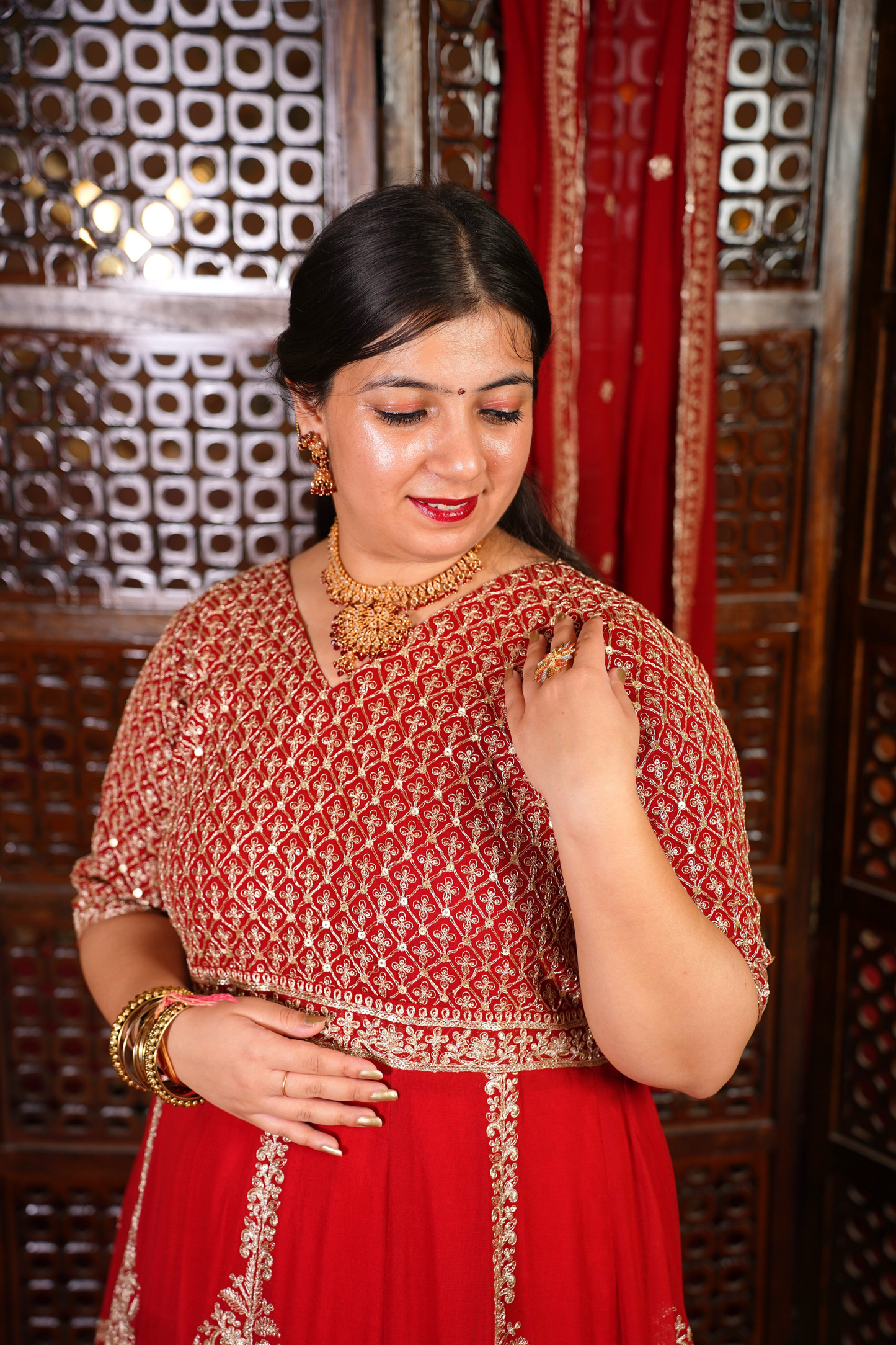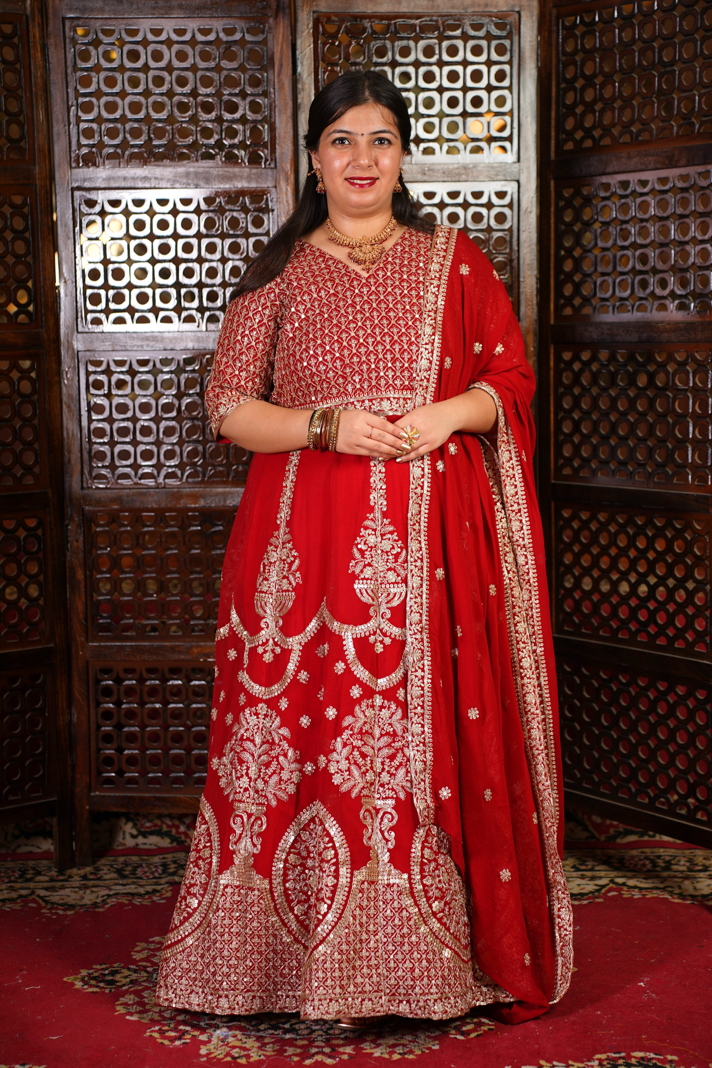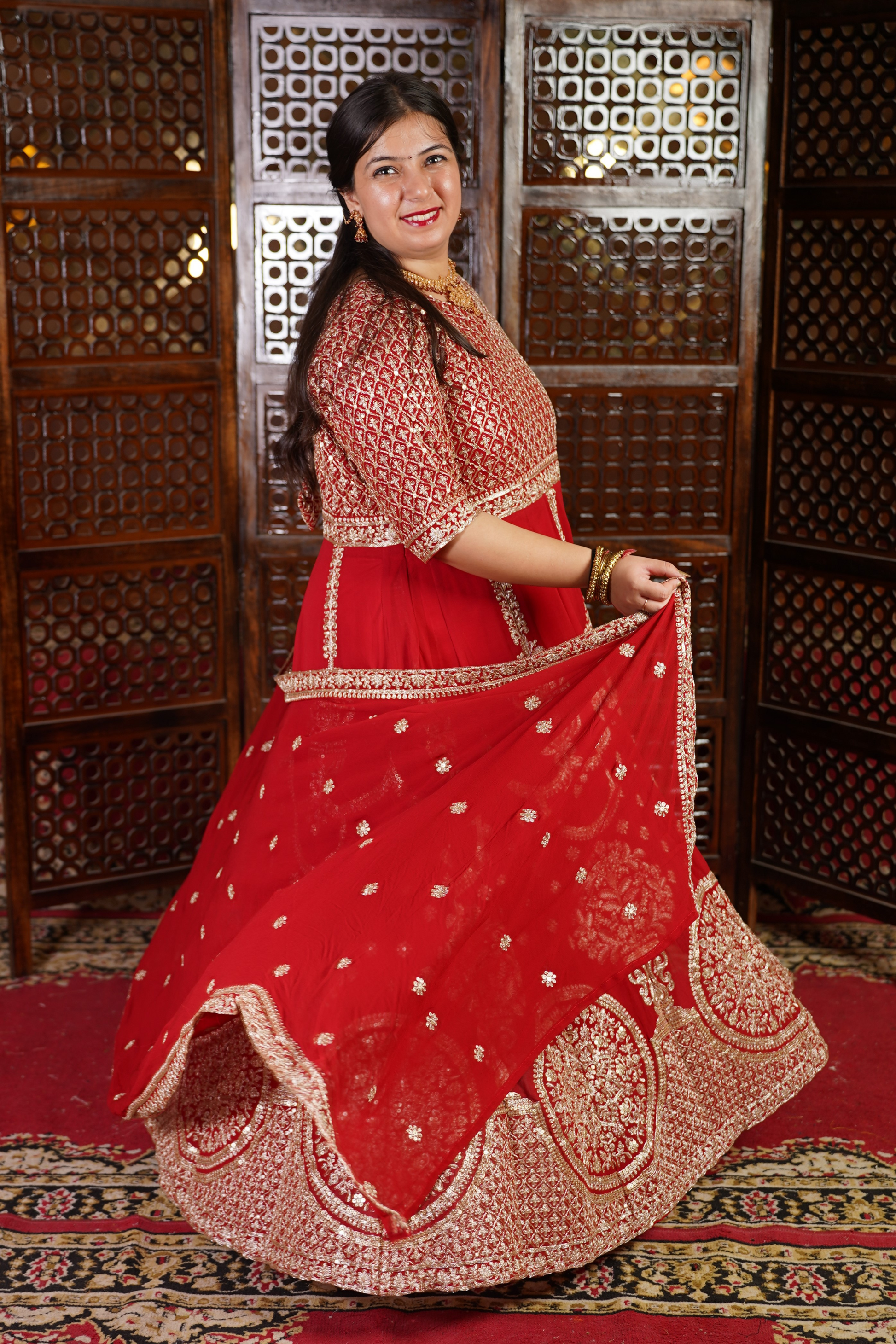 - Red Anarkali Dress made from Georgette fabric