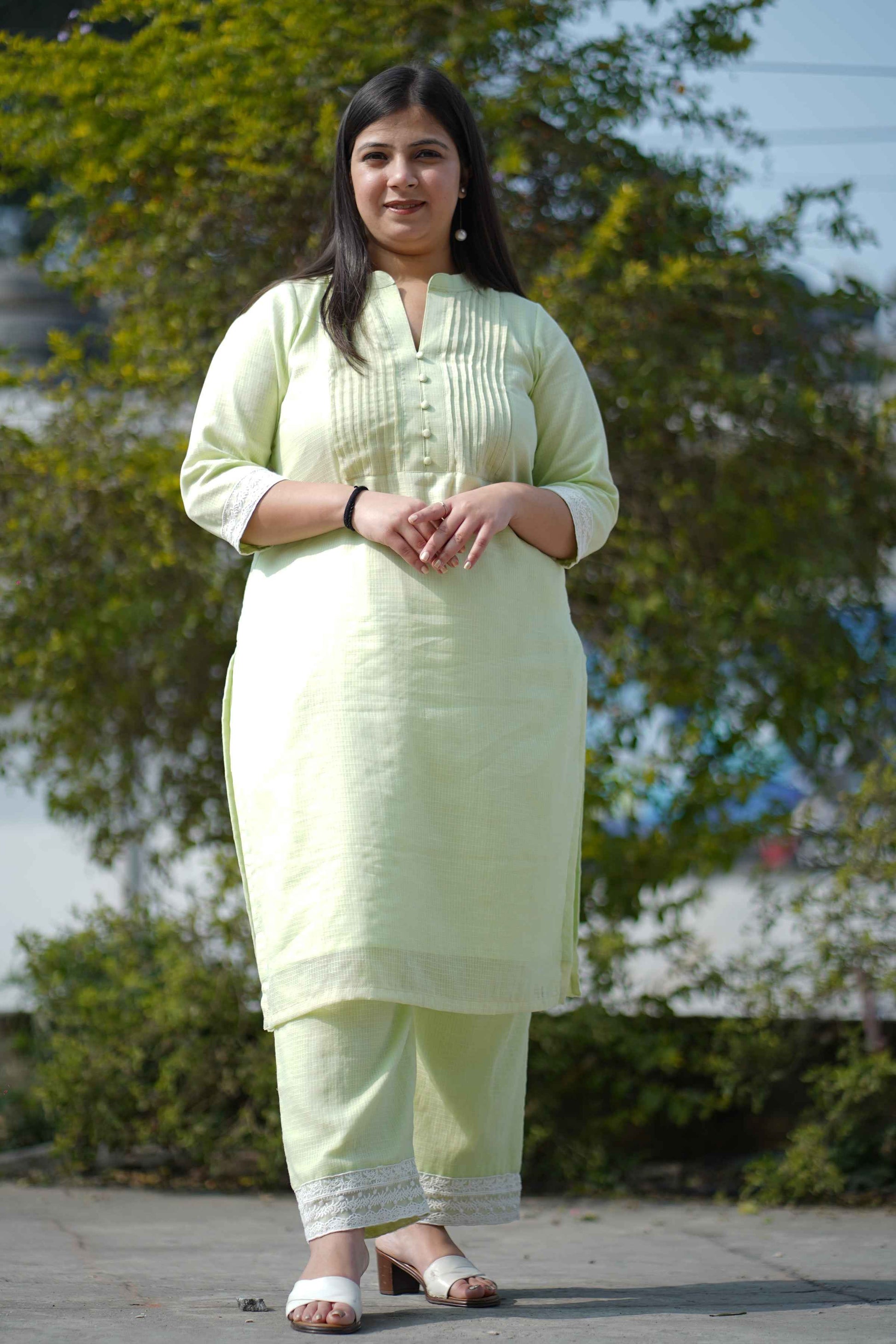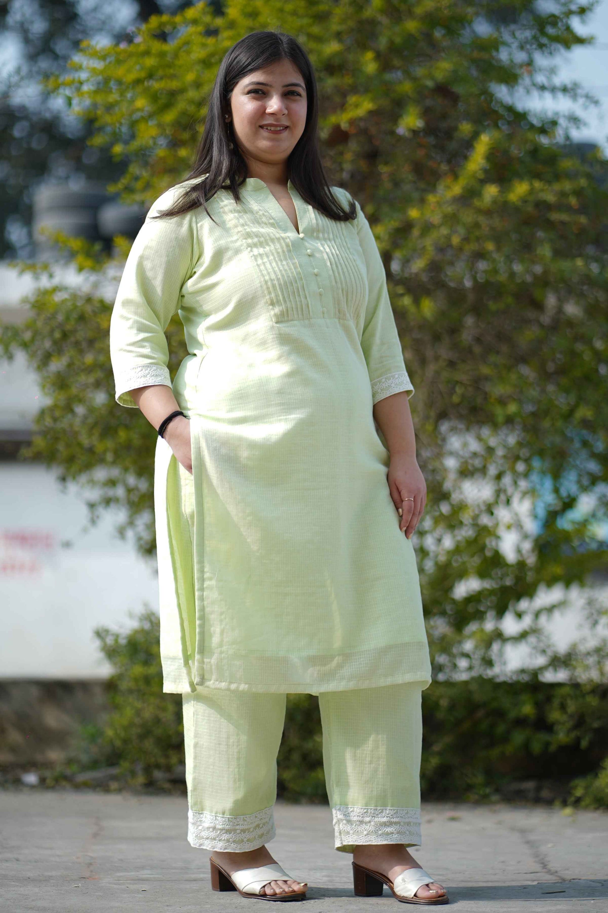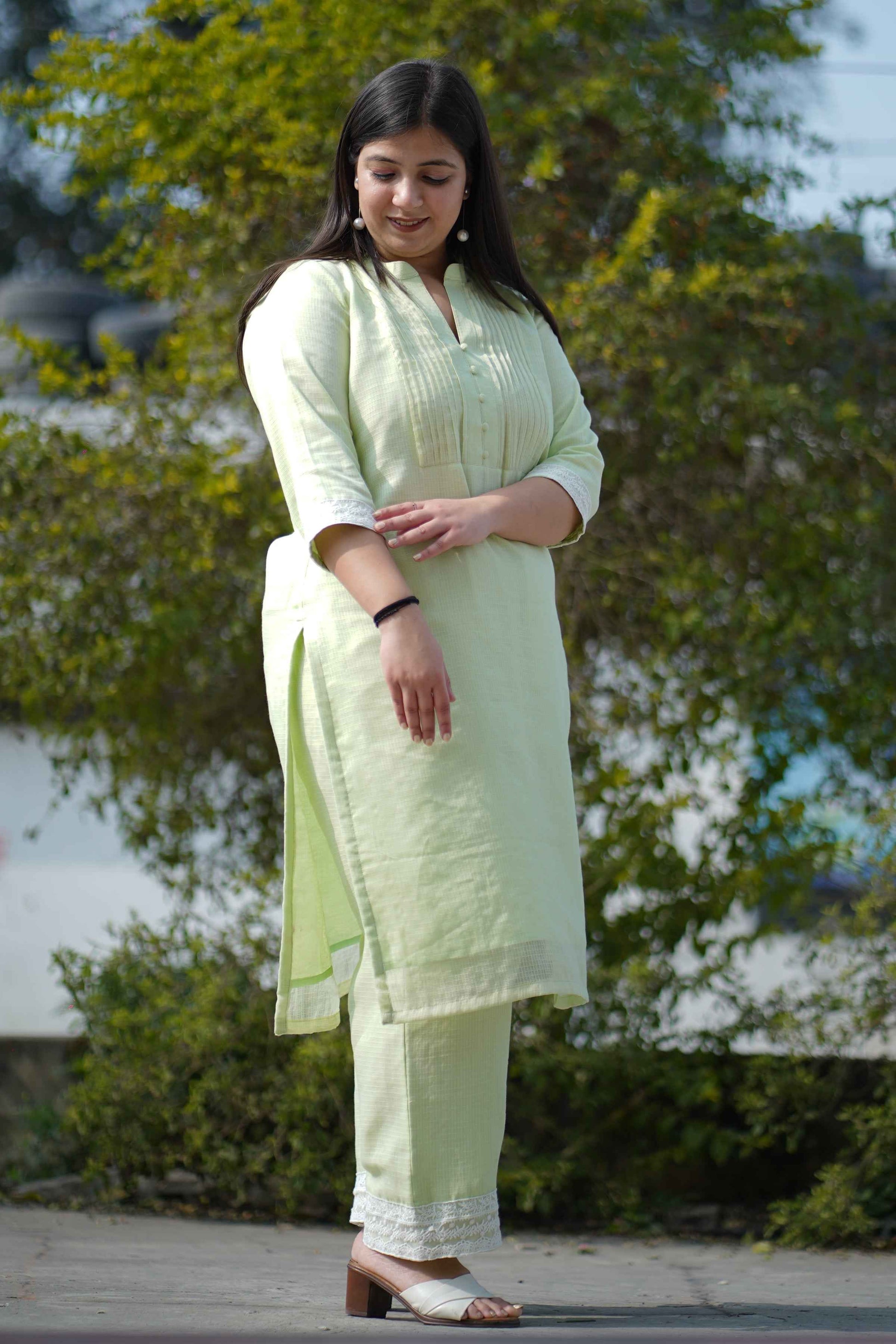 - Dewy Green Kota Co-ord Set made from Cotton fabric