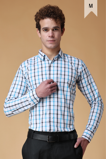 This stylish Men's Blue Checked Shirt is the perfect addition to any wardrobe. Crafted from a lightweight Cotton fabric, it features a classic checked pattern in shades of blue and black, with a comfortable regular fit for an easy, relaxed look. Team this shirt with your favorite jeans or chinos for a timeless, stylish look.