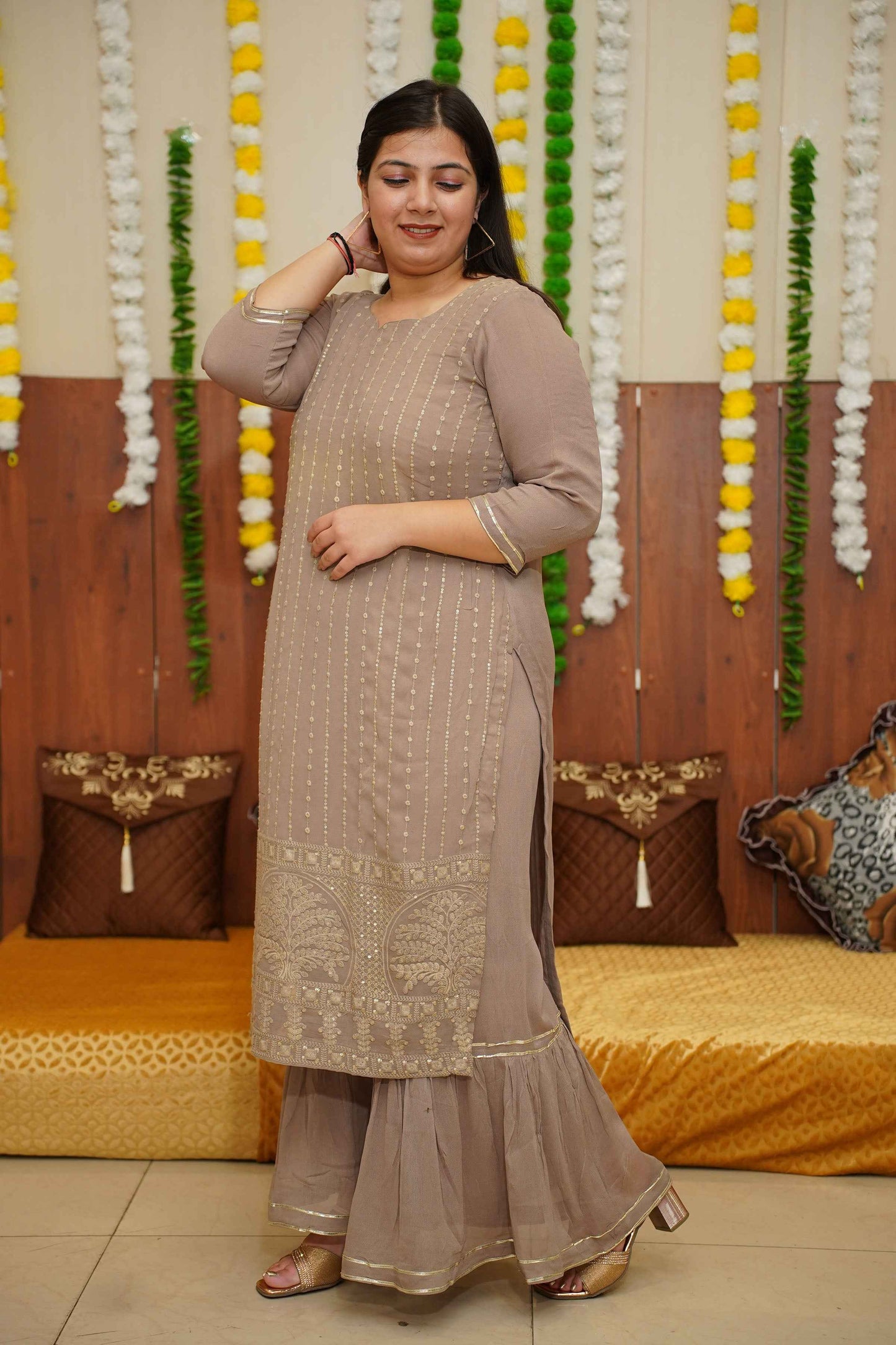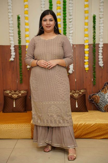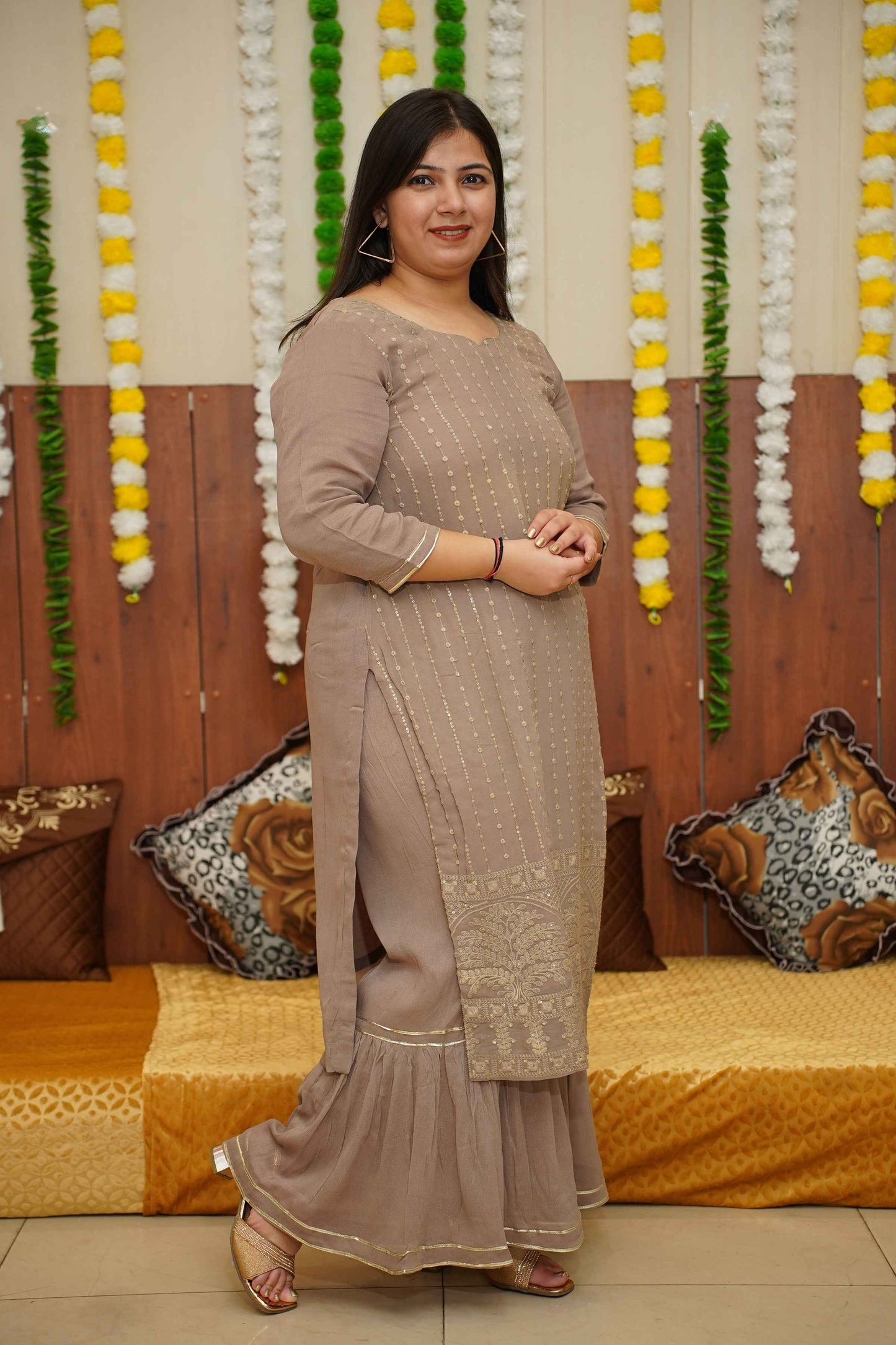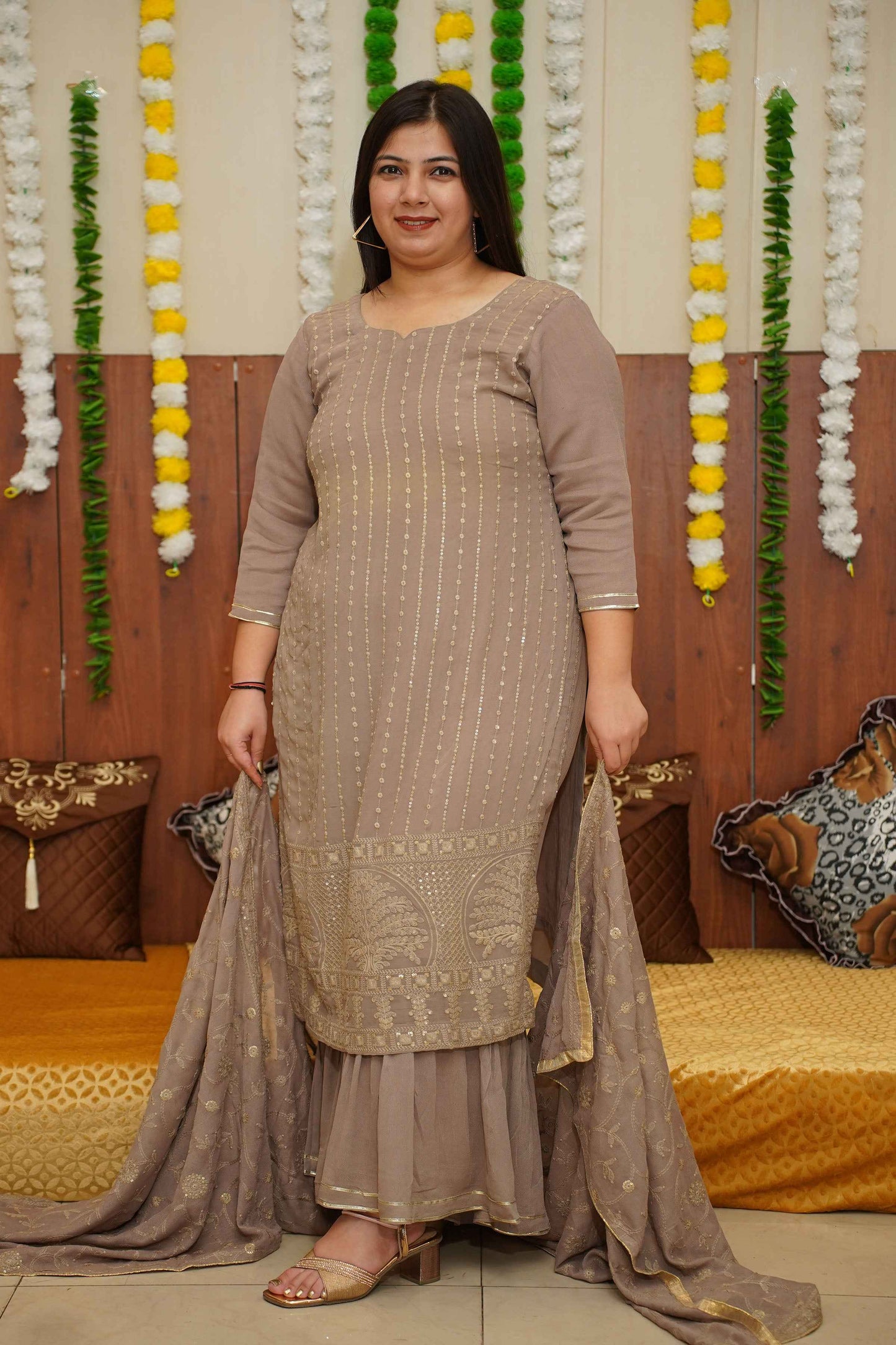 - Earthy Brown Suit Set made from Viscose Georgette Fabric
