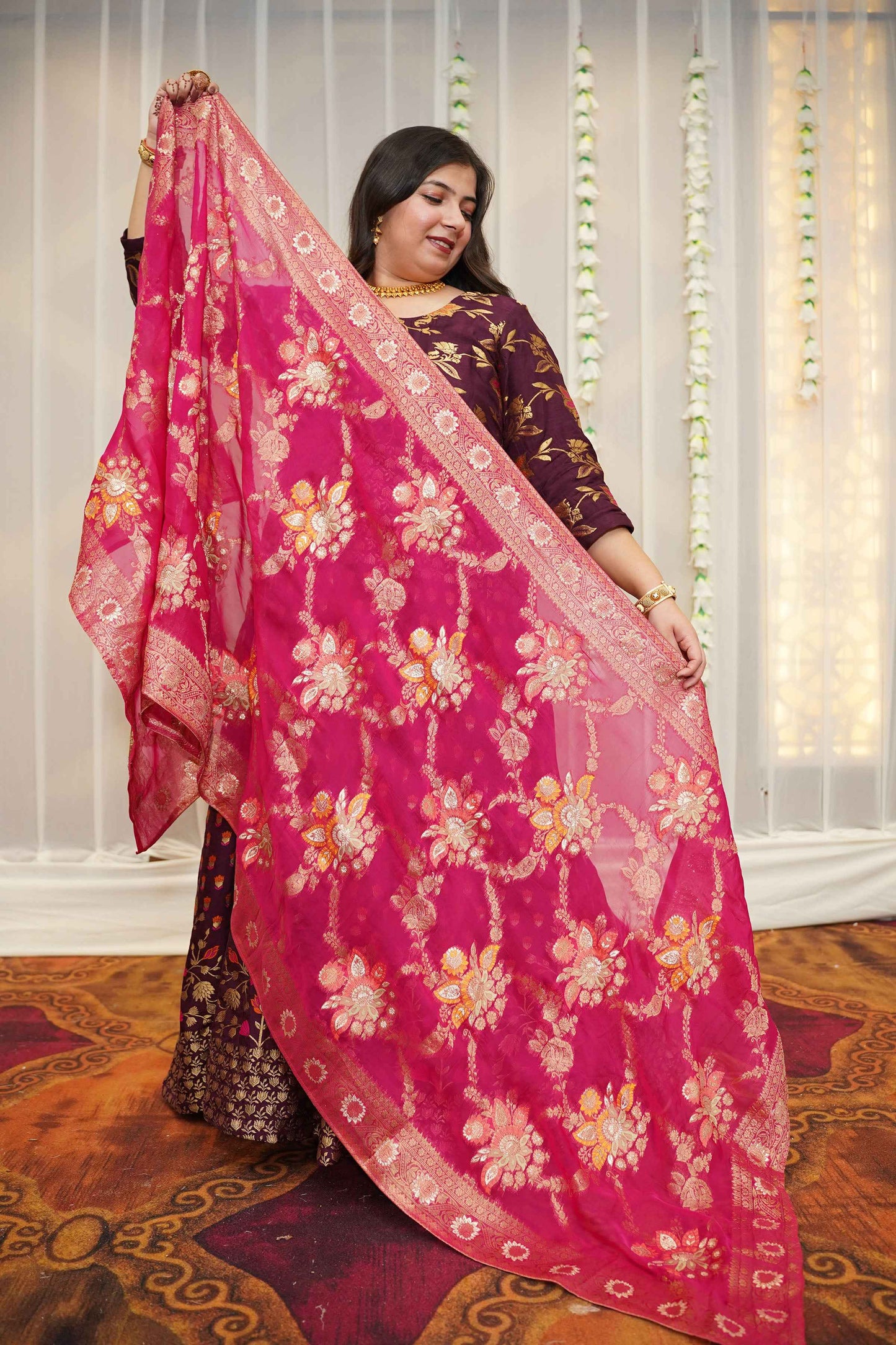 - Stunning Jacquard Woven Silk Dupatta