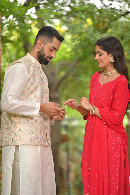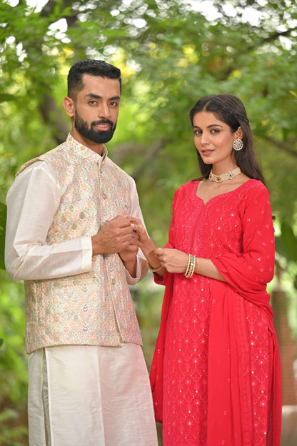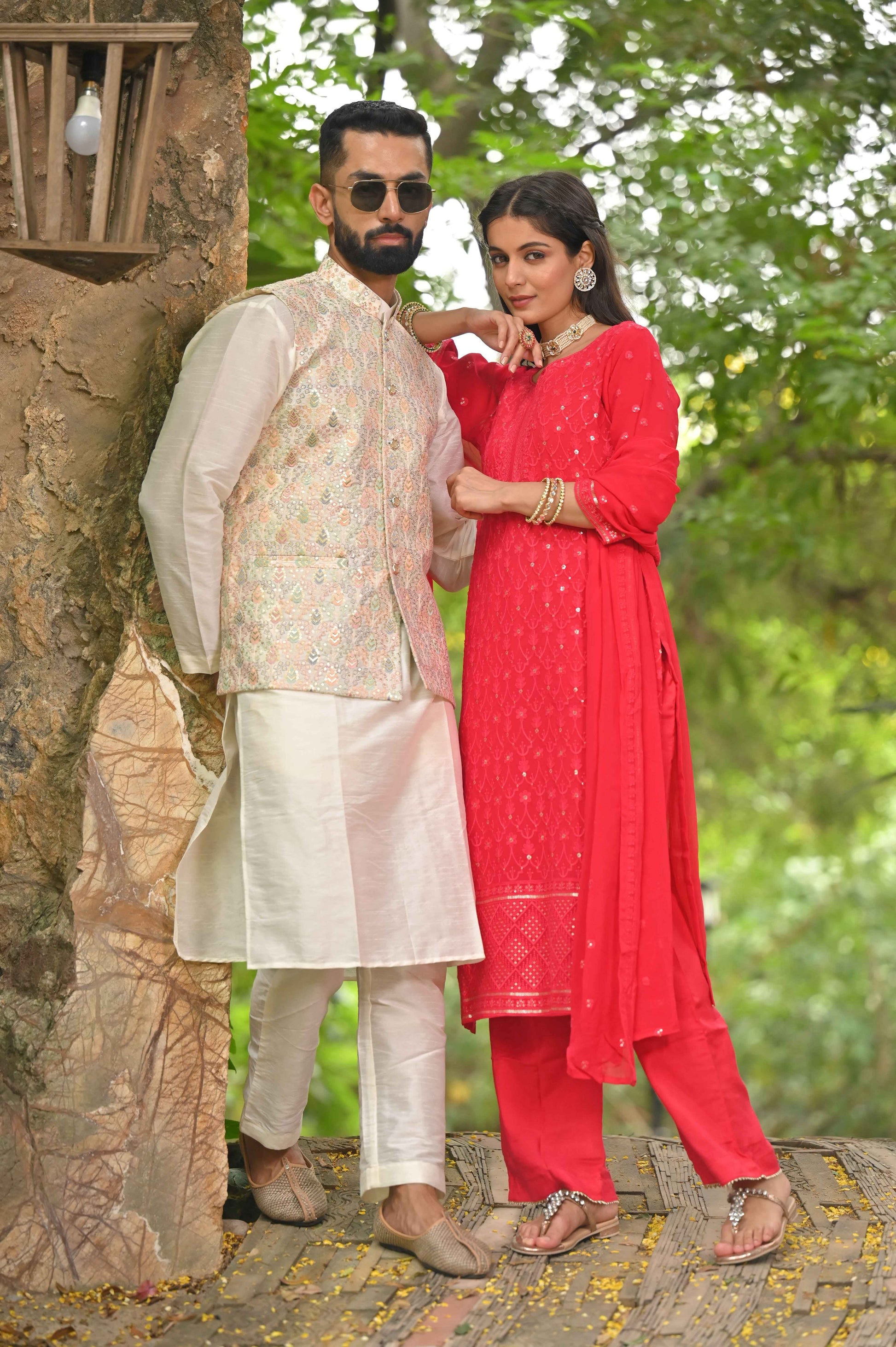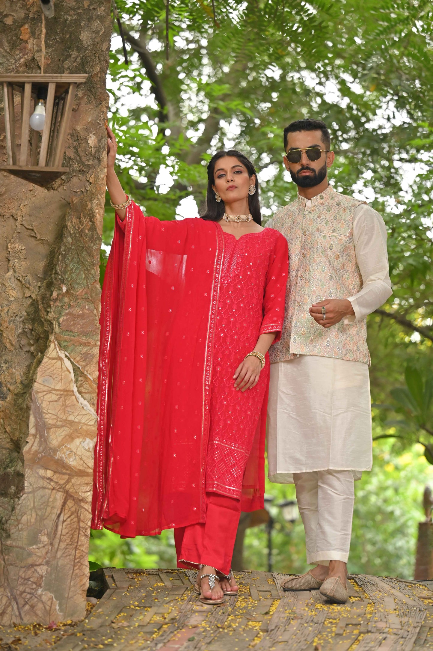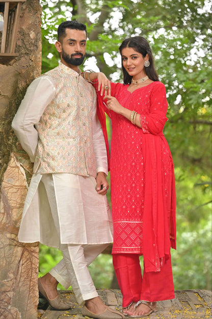 - For Her: The Rose Pink Mirrored Suit Set made with Georgette