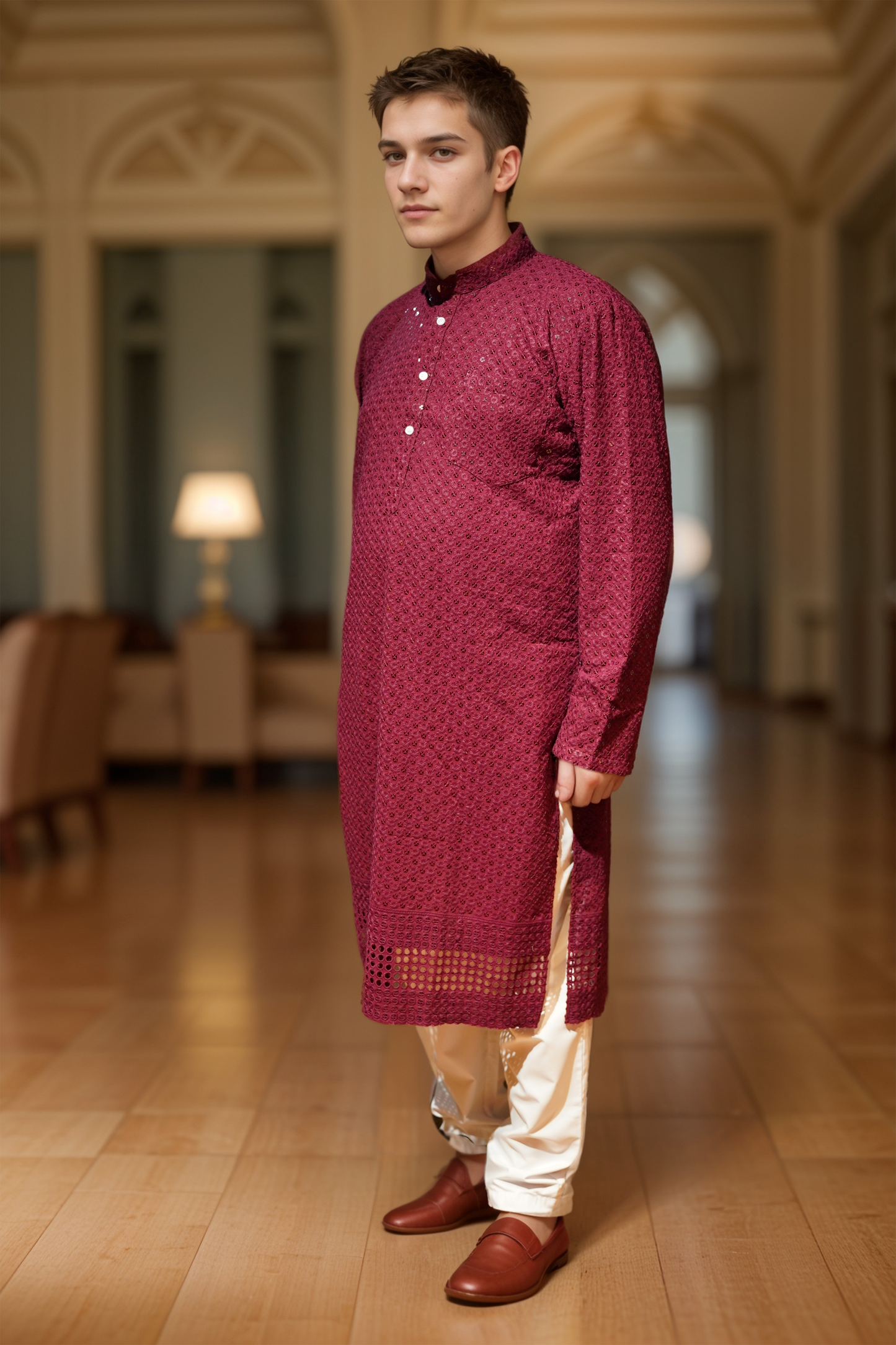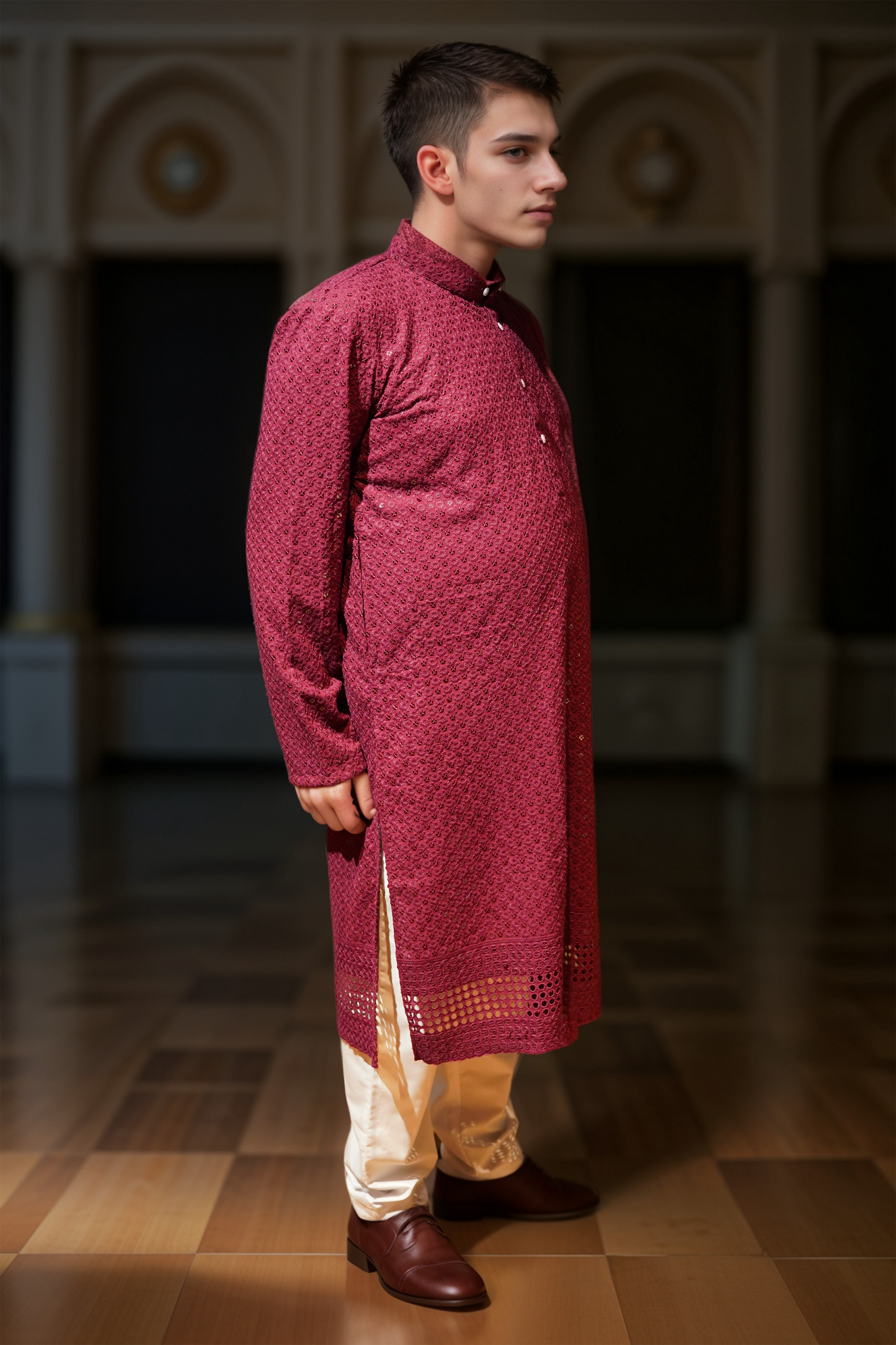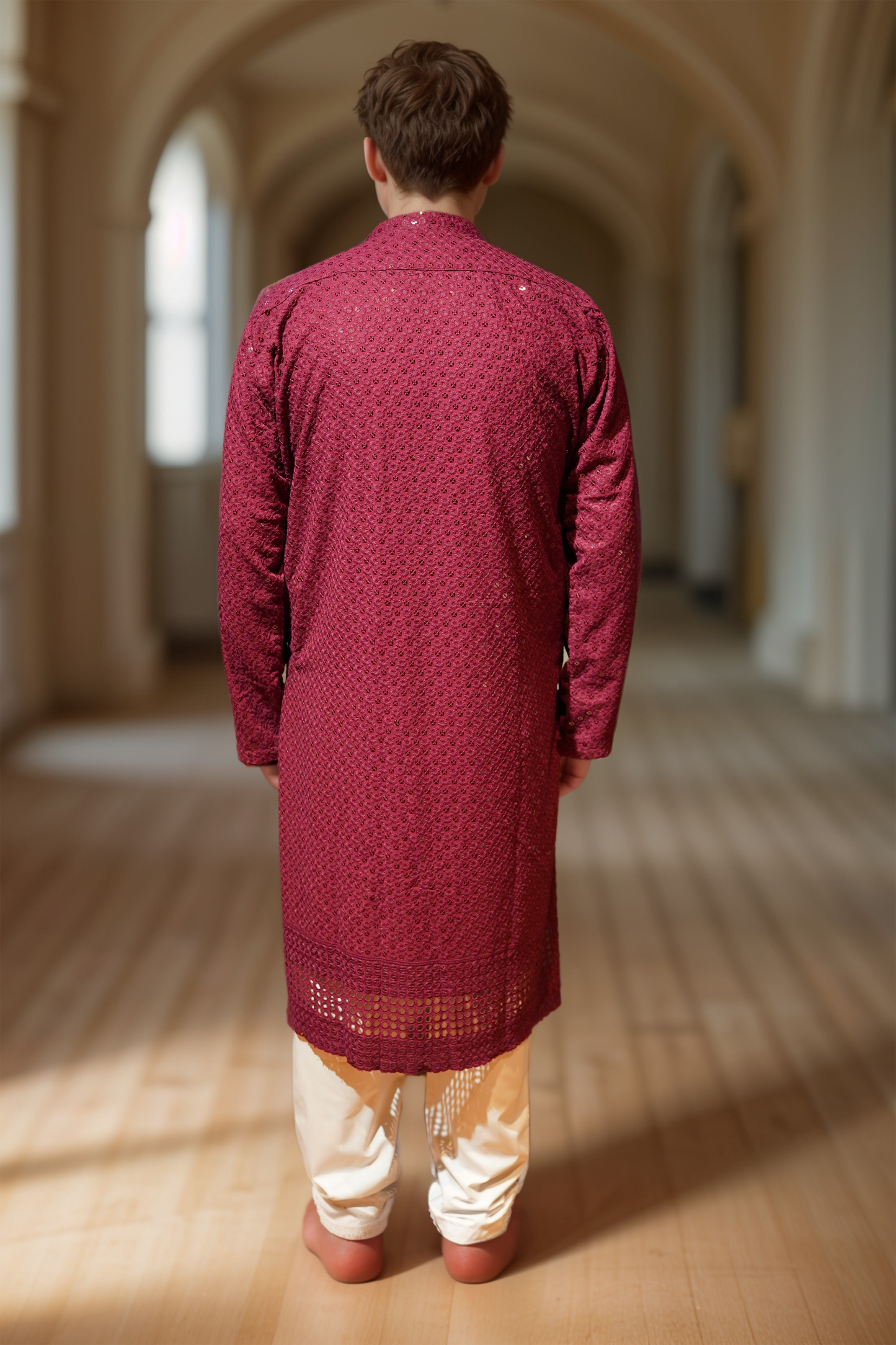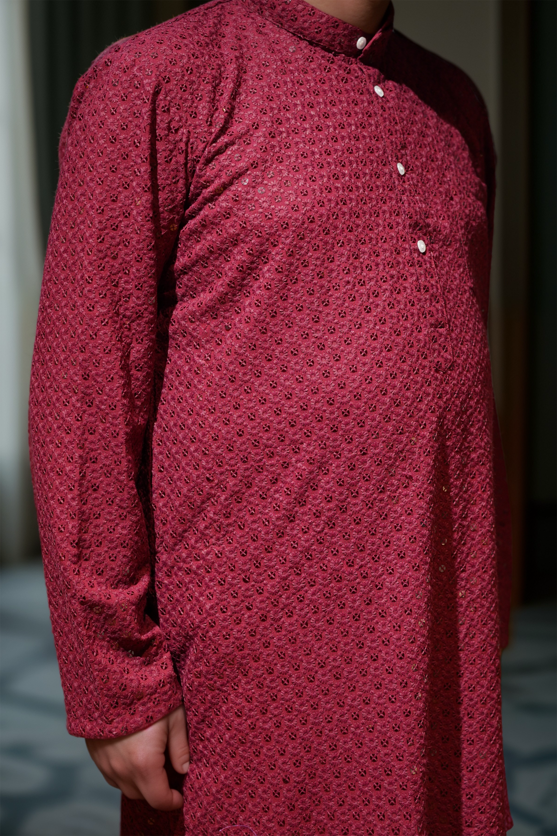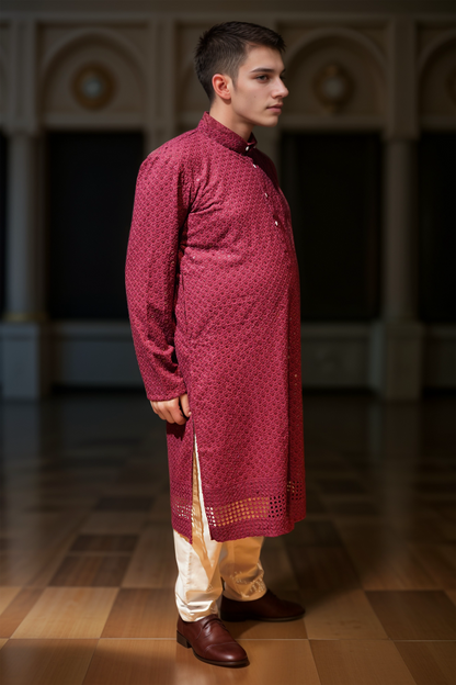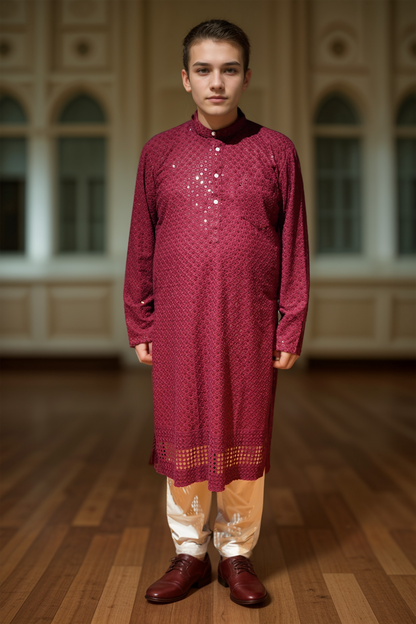 Festive Maroon Sequined Kurta Pajama