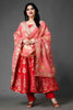 - Fiesta Red Anarkali Suit Set made from Tanjore Silk fabric