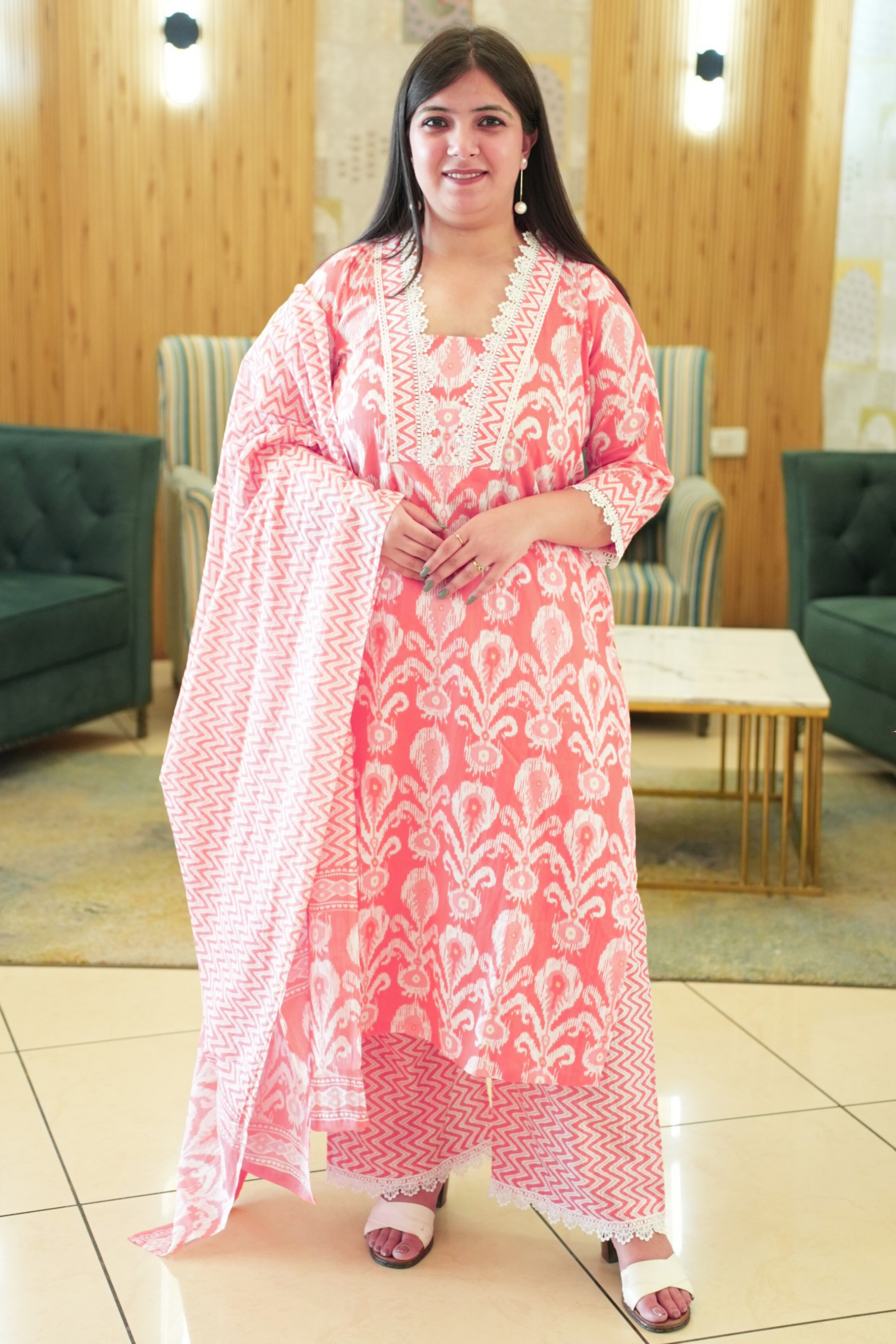 Paired with printed cotton pants and dupatta