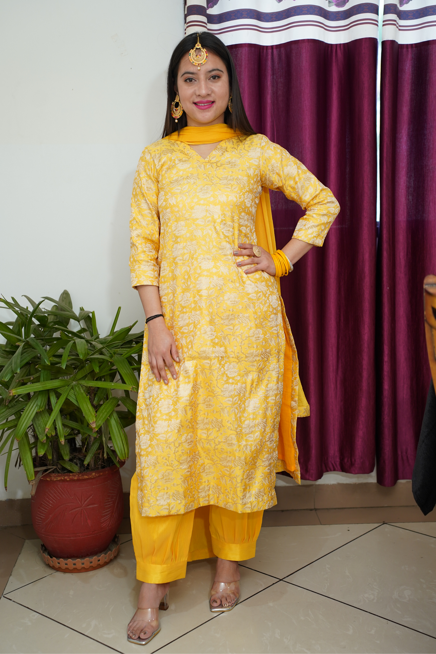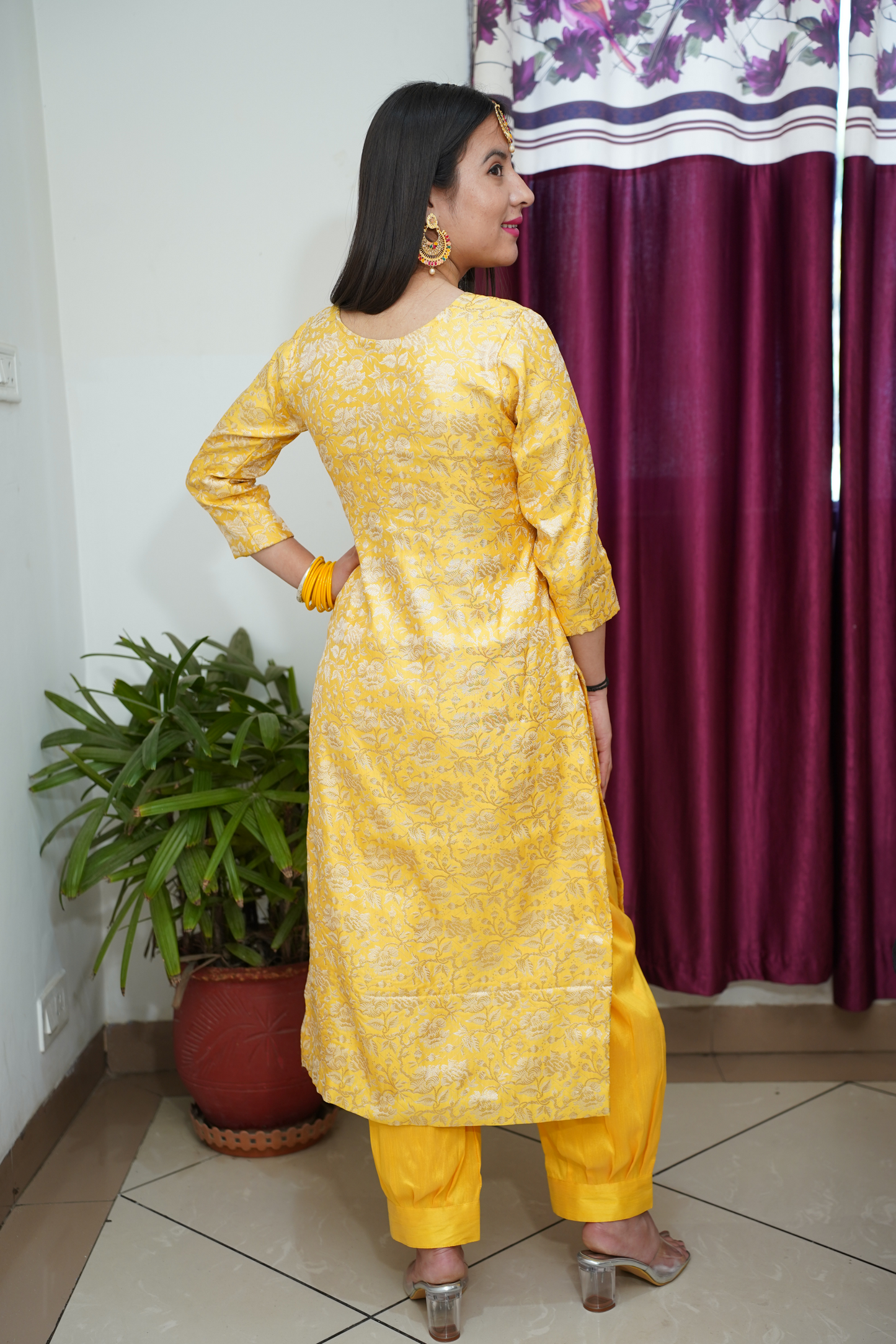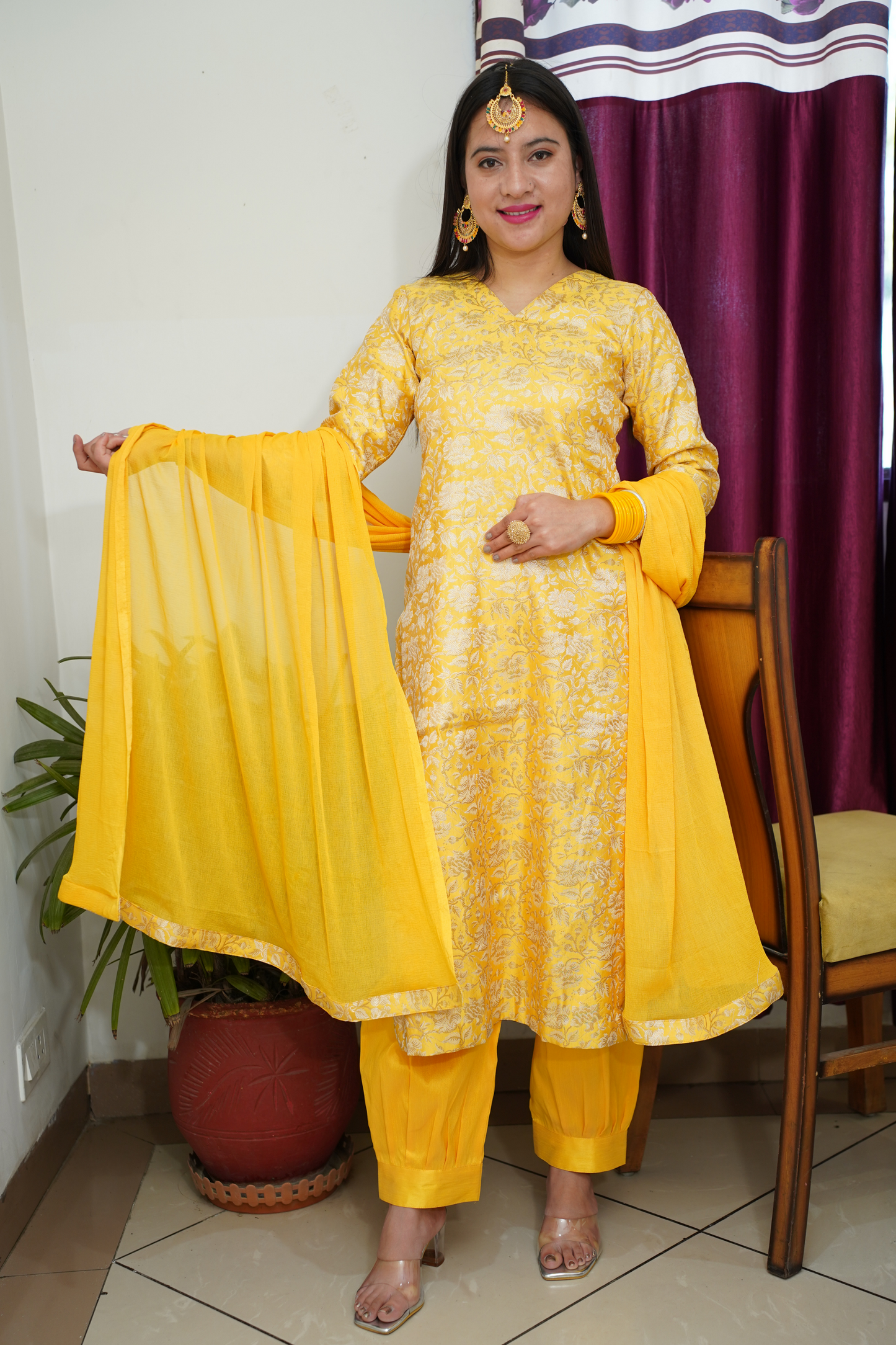 • Yellow Suit made from Brocade fabric