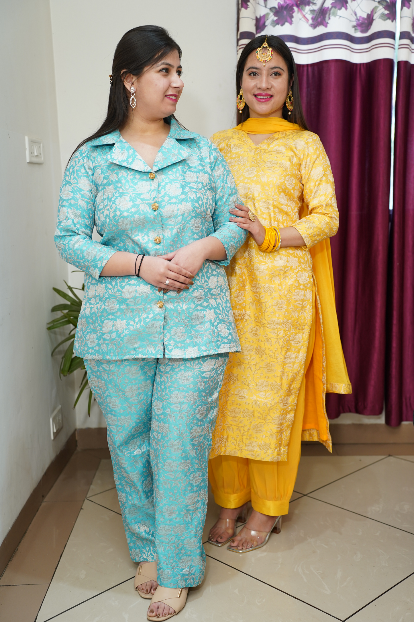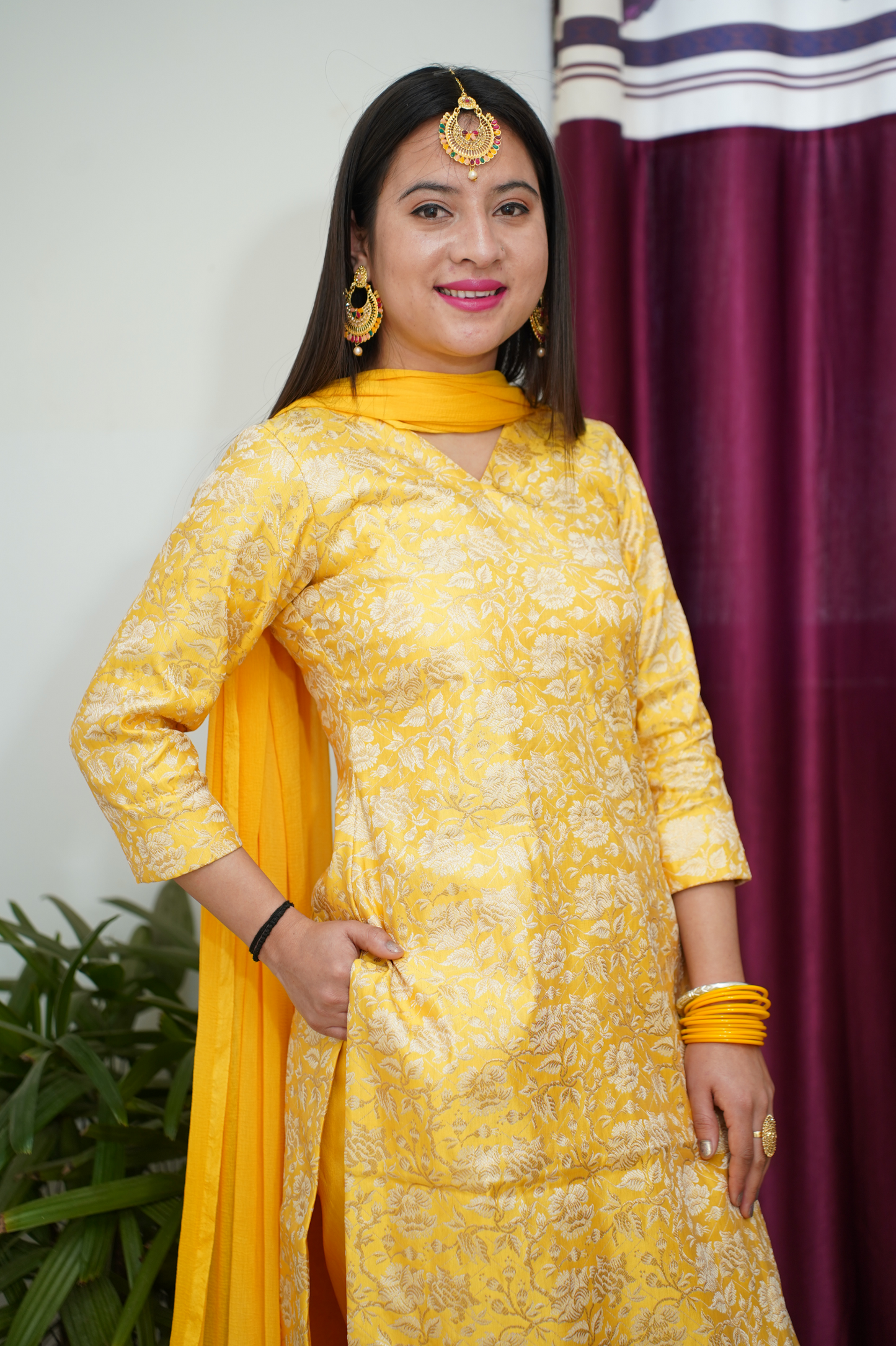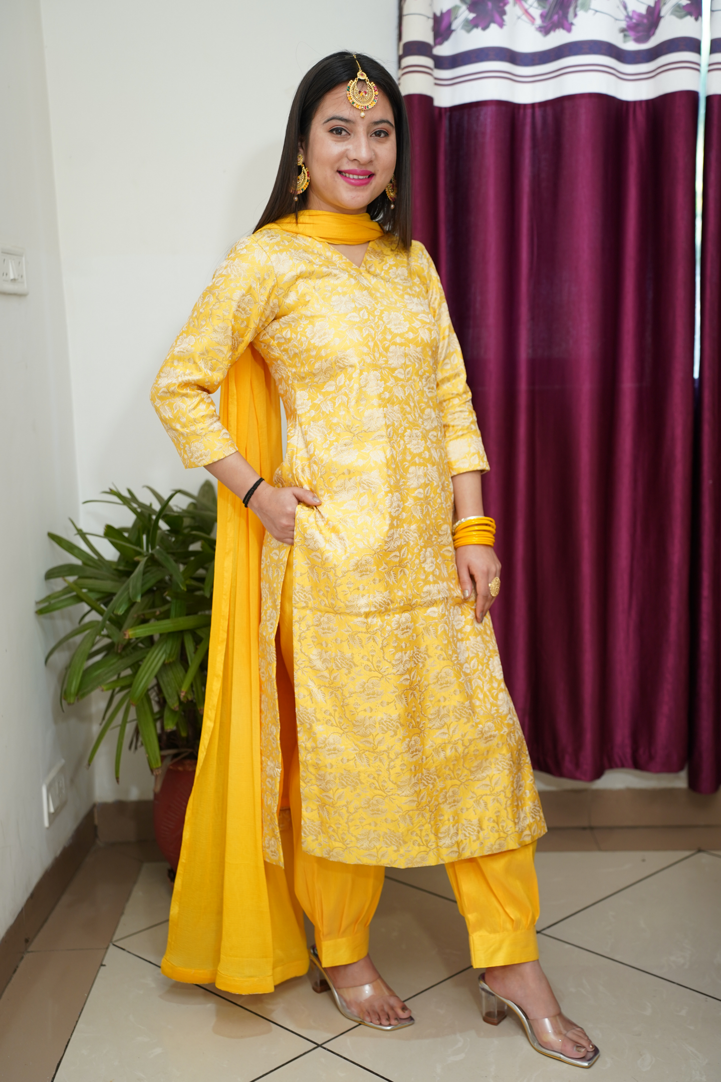 • Yellow Suit made from Brocade fabric