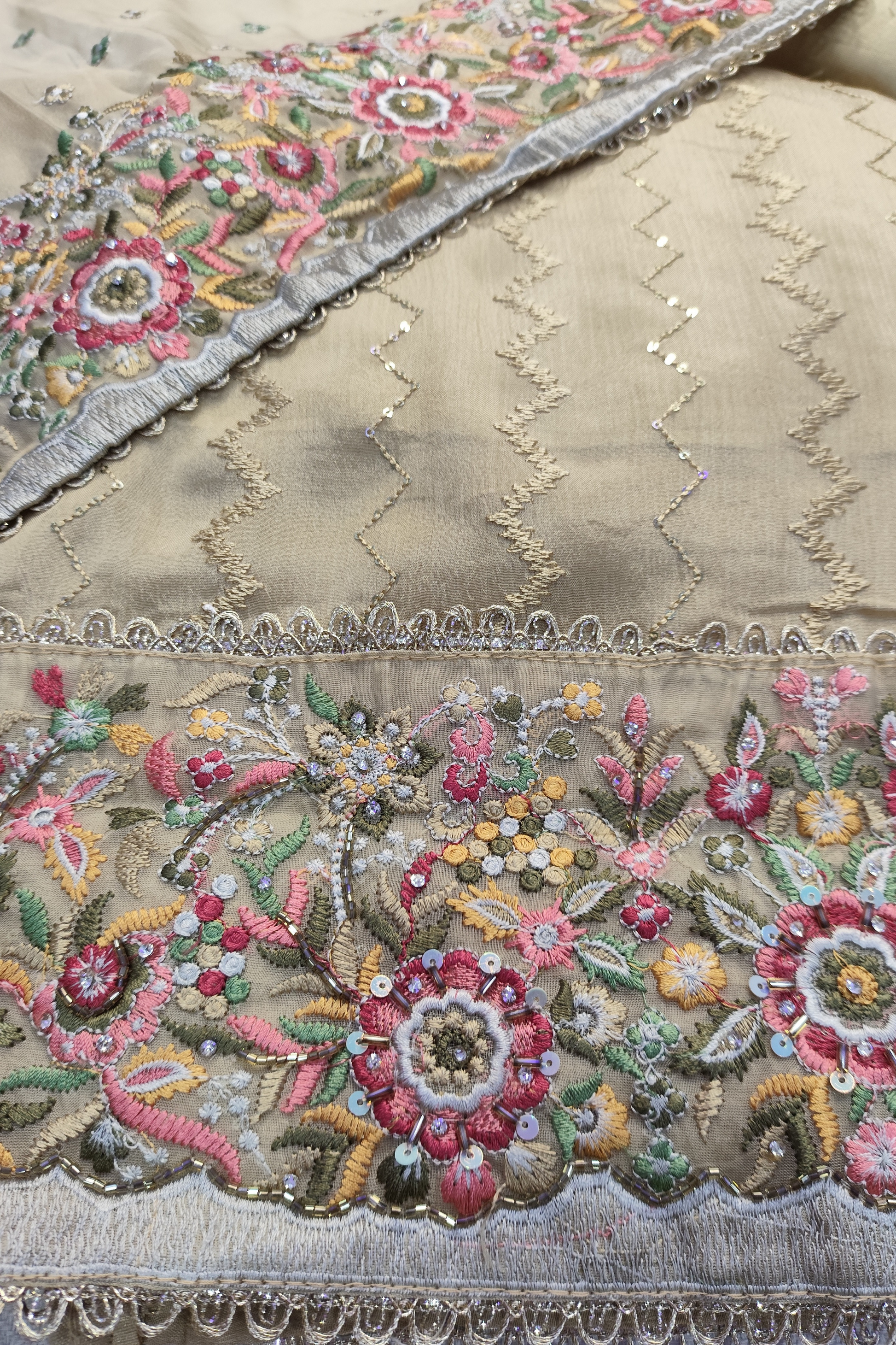 Gold Thread Embroidered Chinon Suit