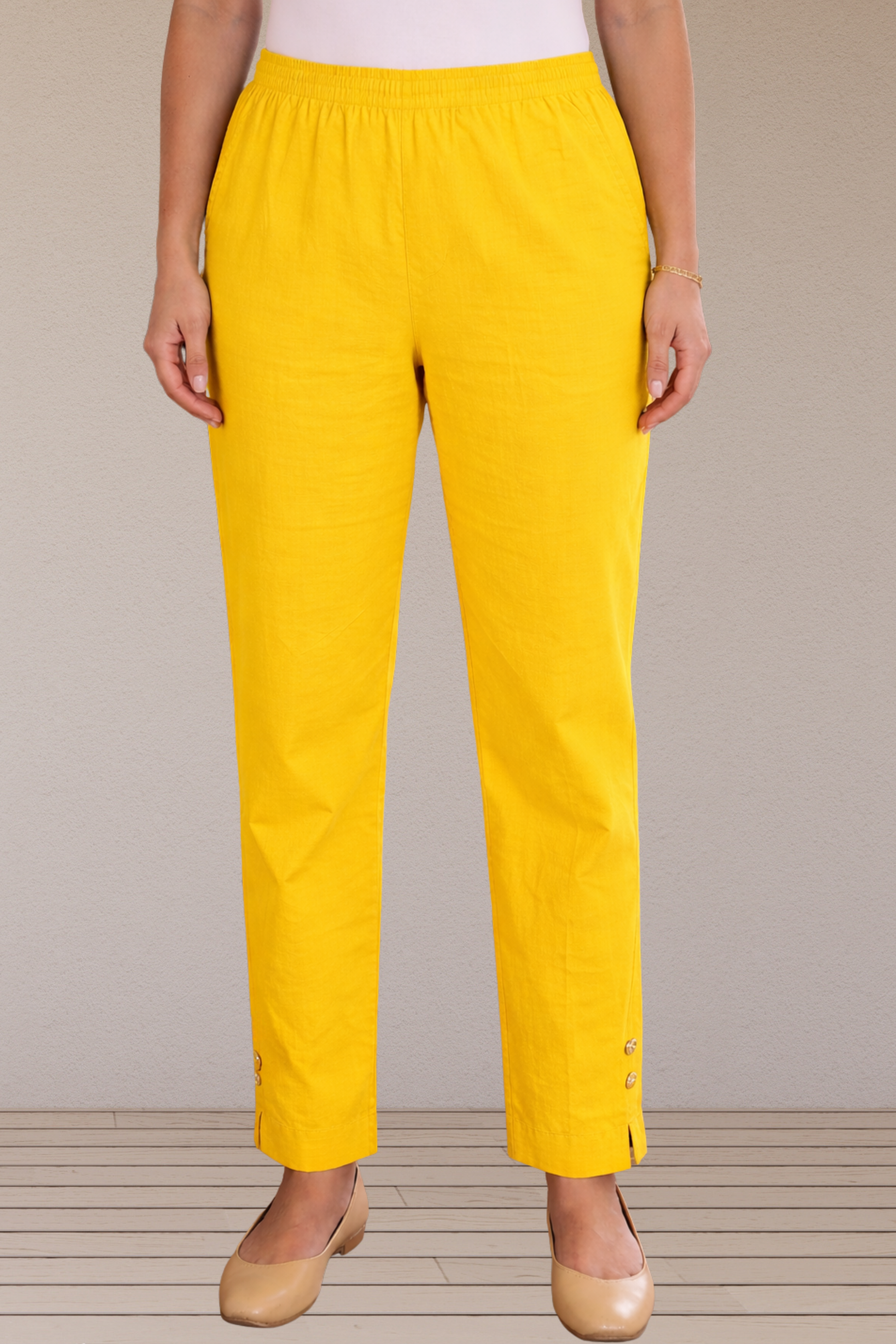 Yellow Cotton Straight Pants