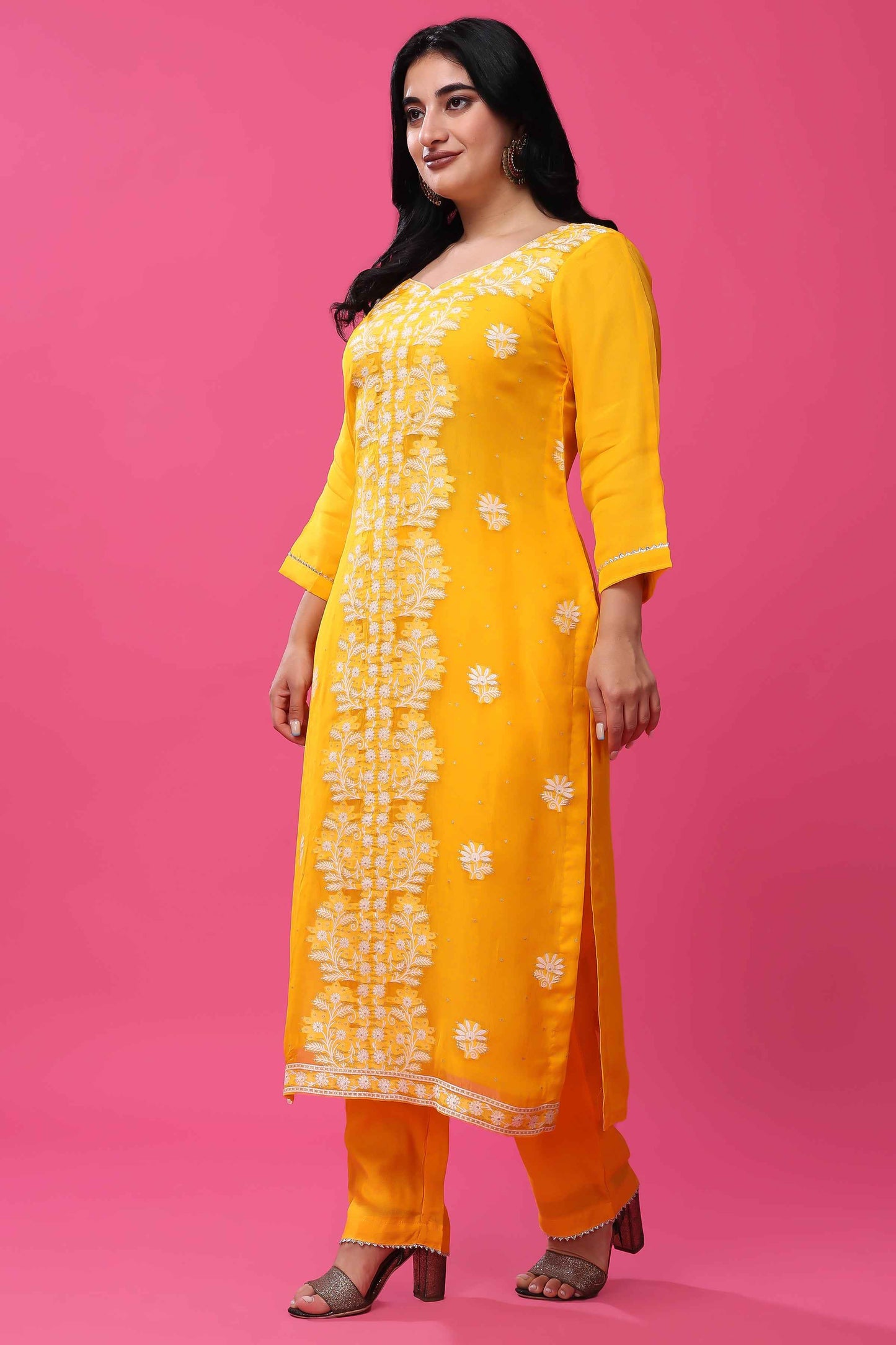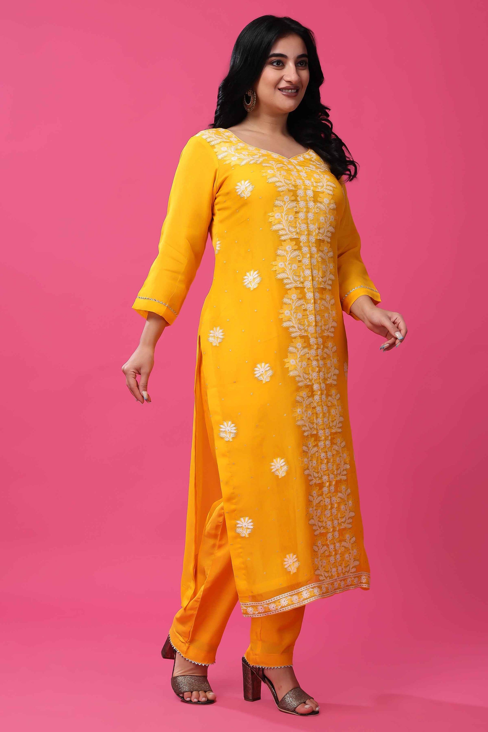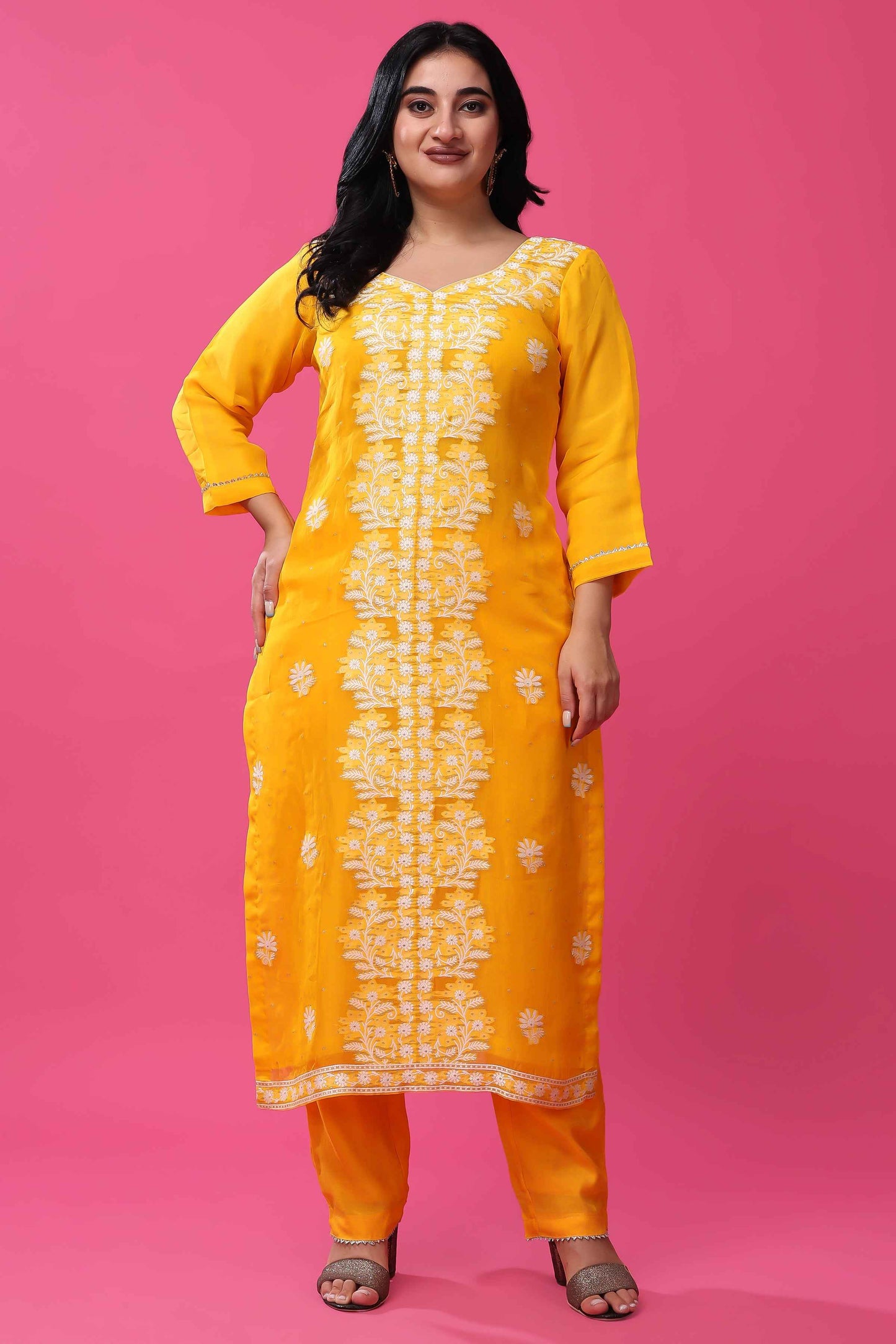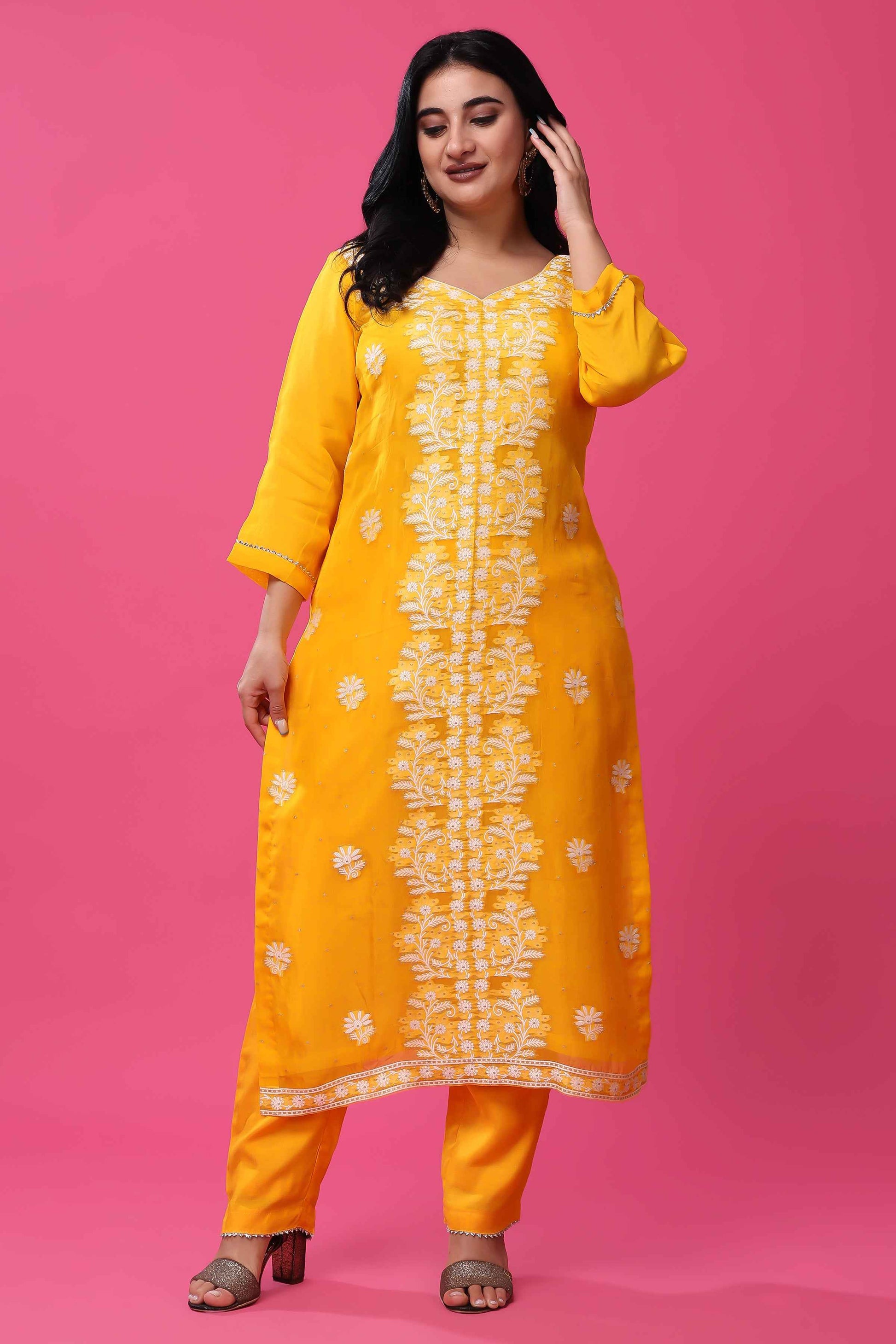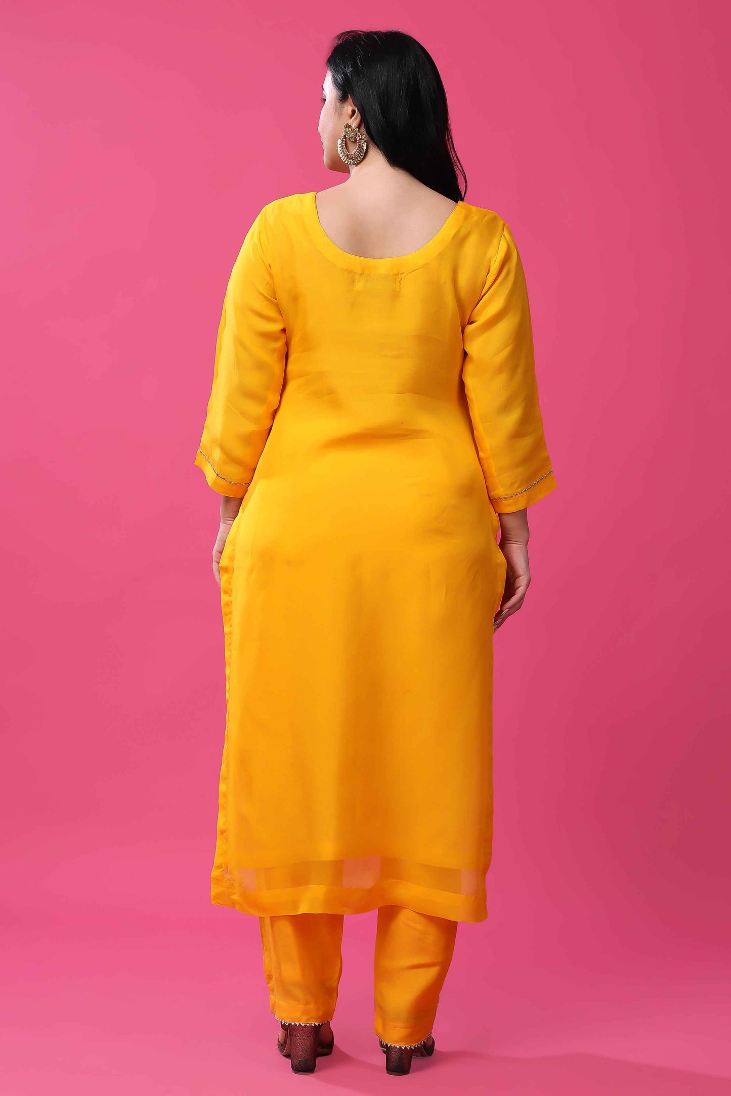 - Mustard Yellow Fancy Suit made from Organza fabric