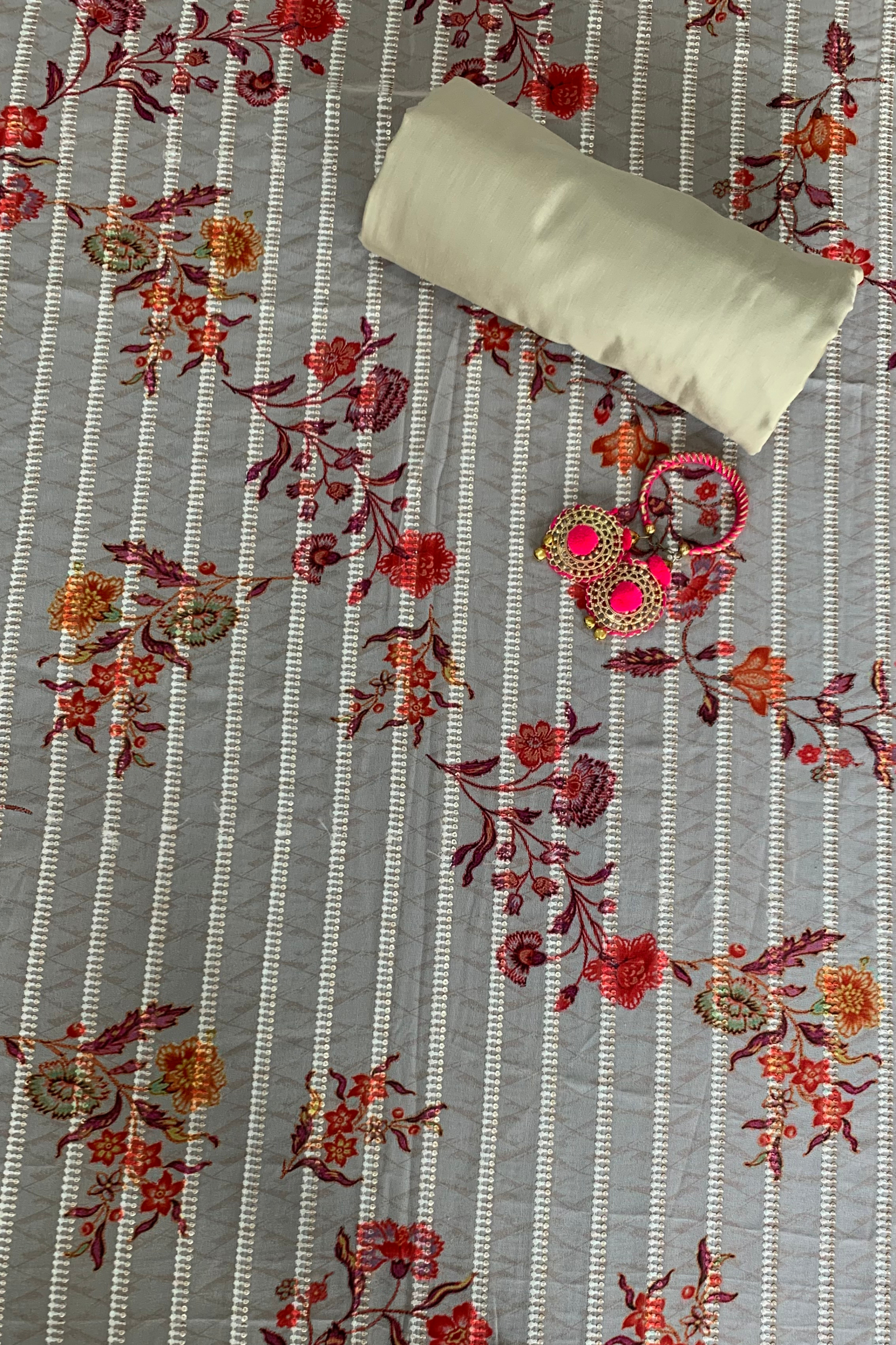 - Comes with a lining, unstitched bottom and Printed floral Dupatta