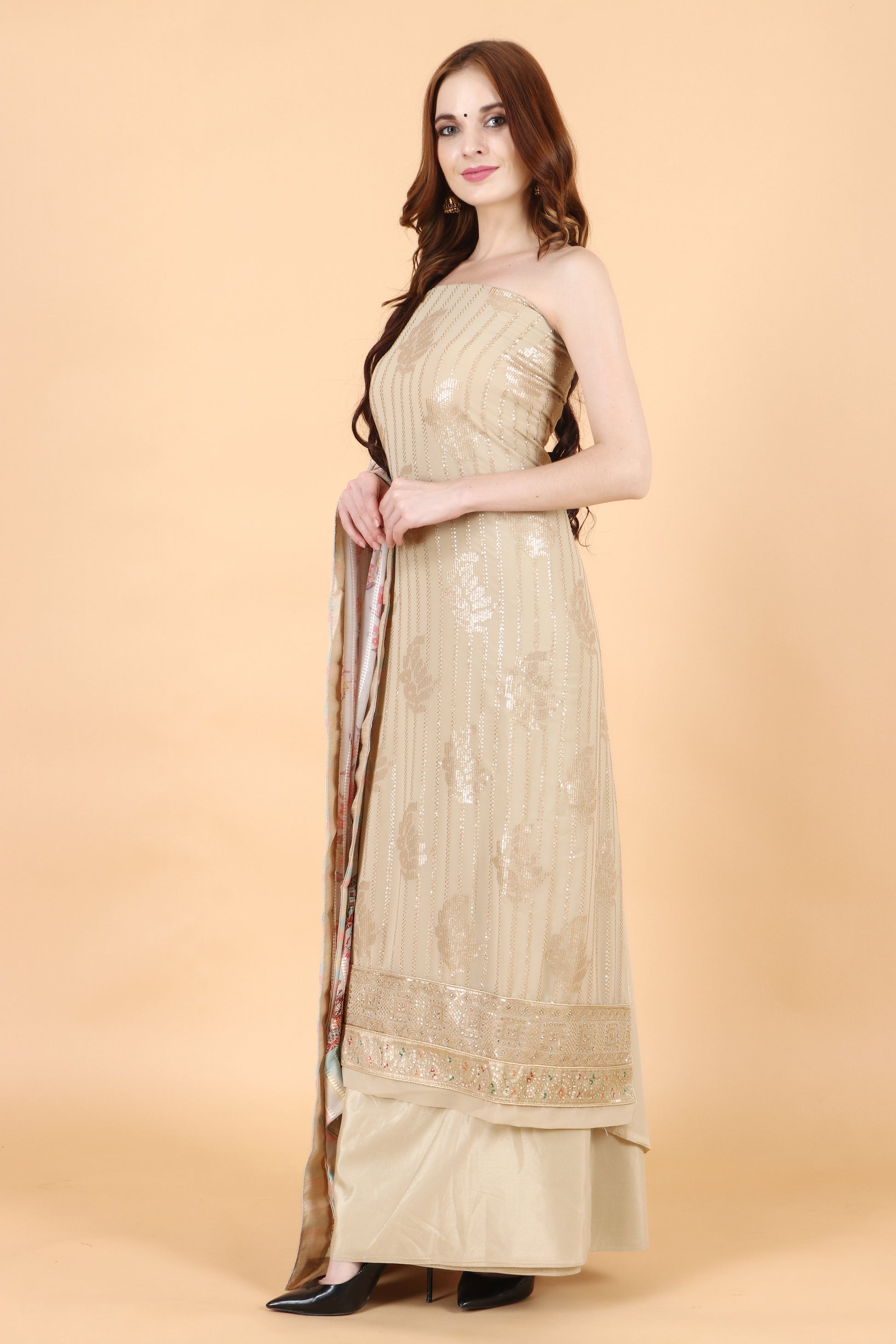 - Golden Unstitched Salwar Suit in Georgette fabric