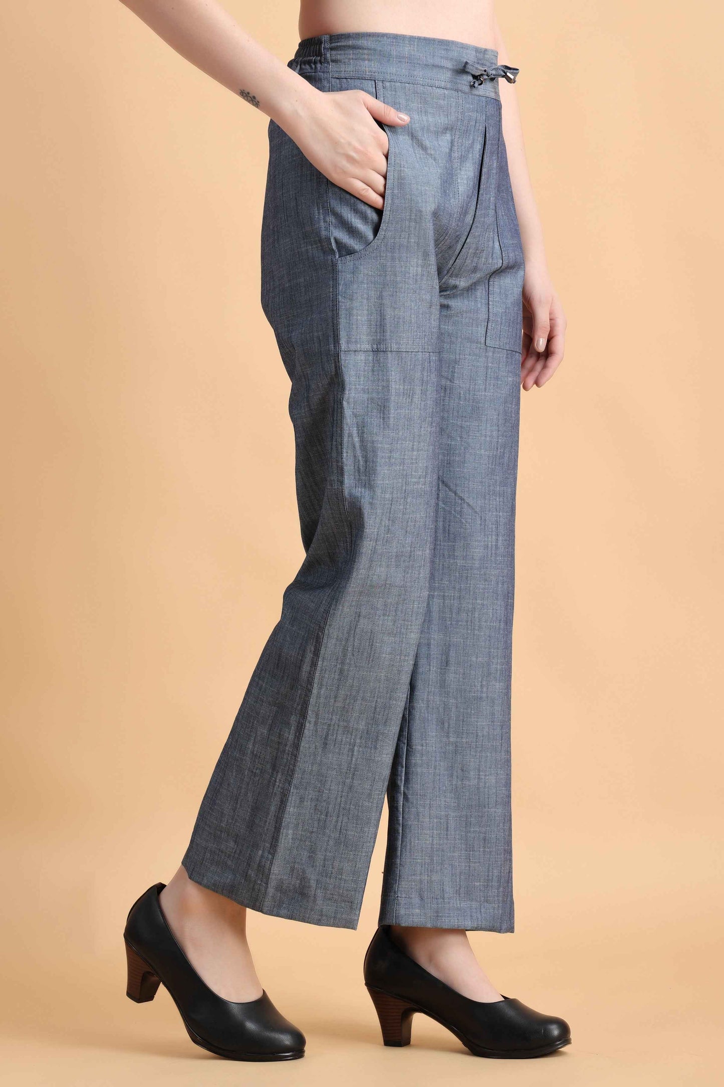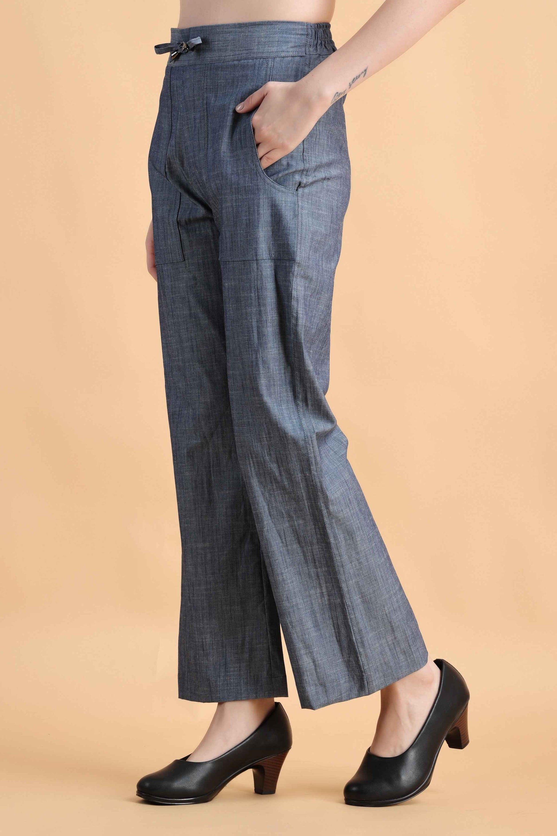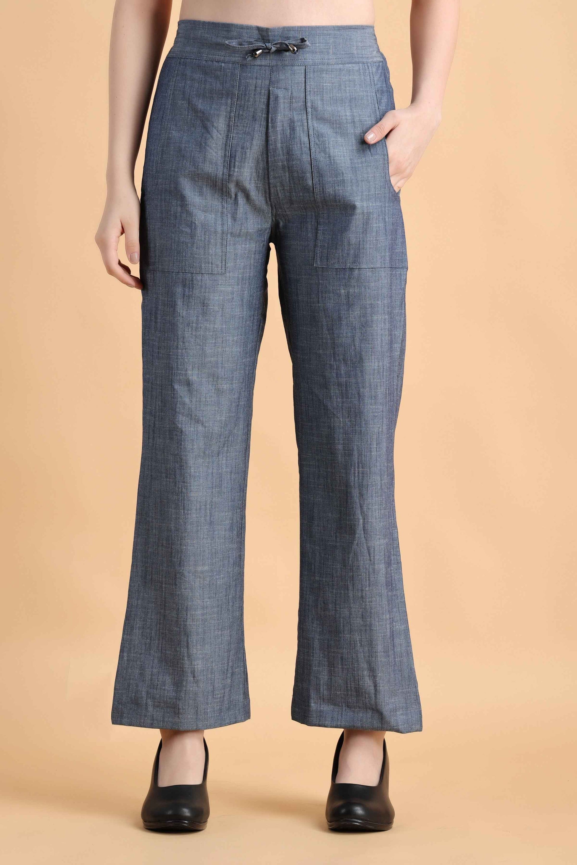 Give your casual wardrobe a stylish lift with these Grey palazzos. This fascinating beauty is crafted in high-quality Cotton fabric making it a fabulous ensemble to wear on any traditional or casual event. The denim look of these pants makes it a must have it every fashionista's wardrobe.
