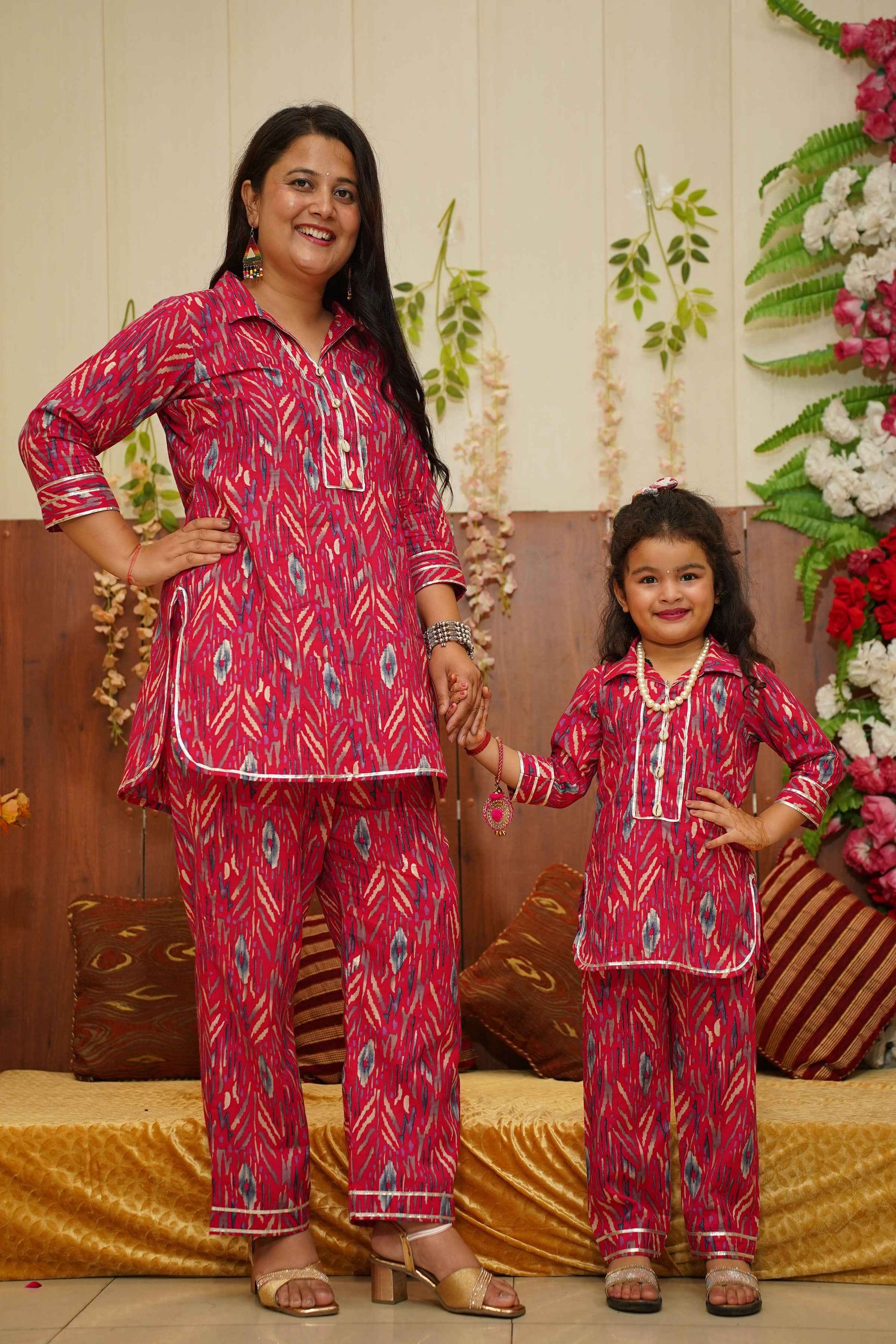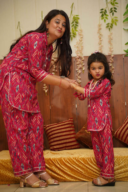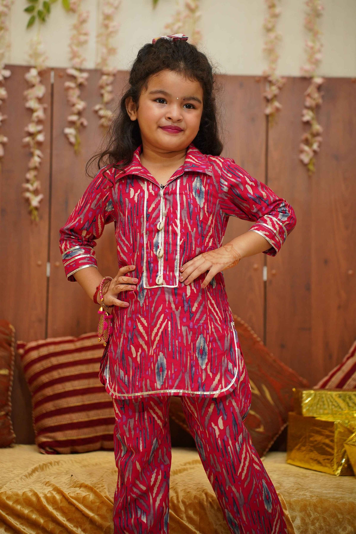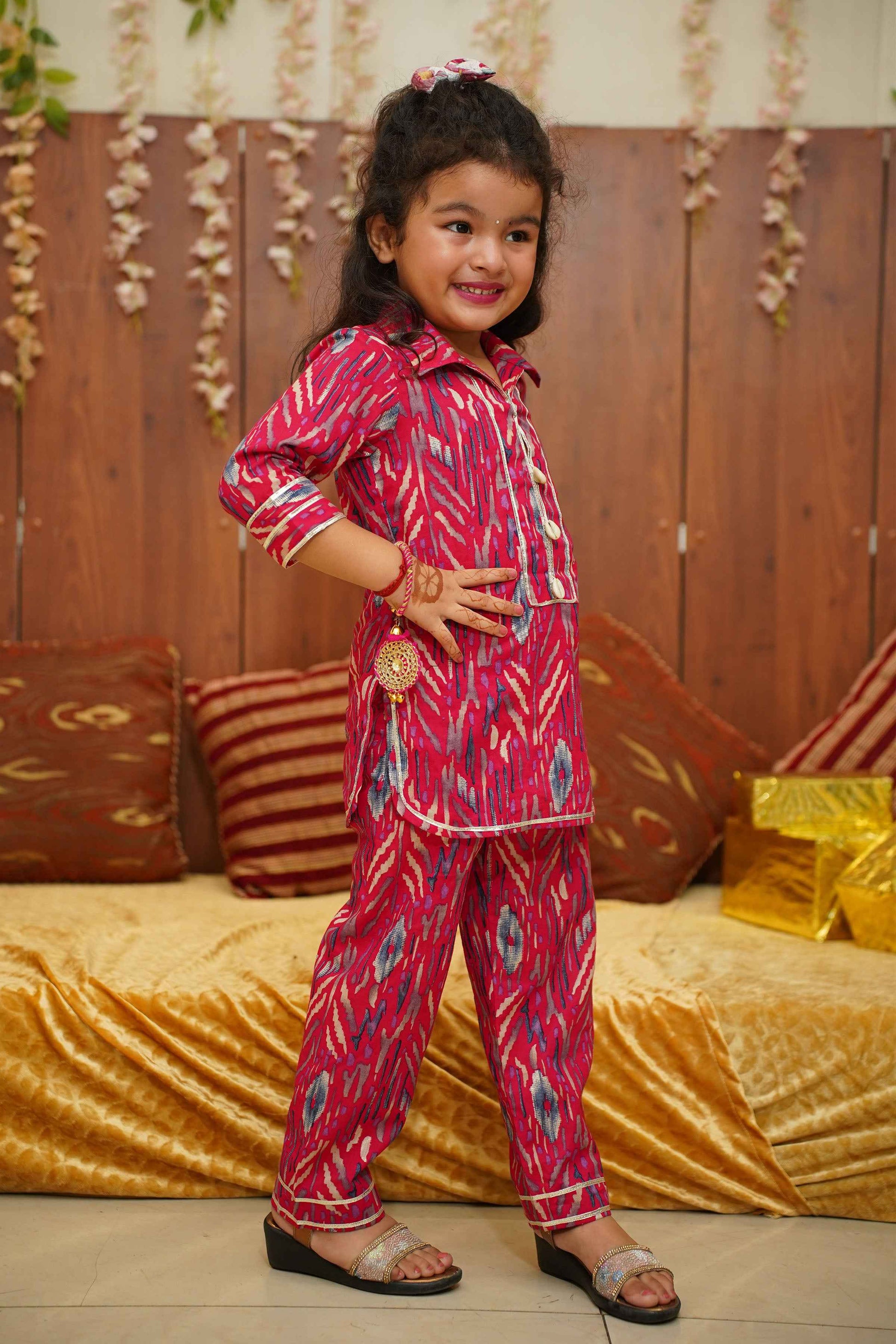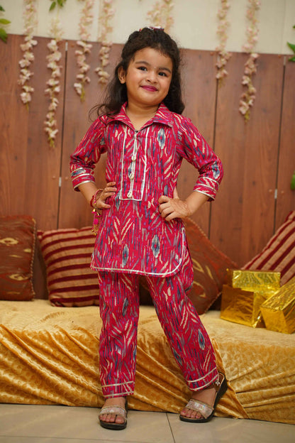 Brighten up their day with our Hot Pink Girls Co-ord Set! Crafted from Cotton fabric, this set features a playful Digital with foiled print with delicate lace detailing. The charming collar neckline is adorned with sea shells and lace accents, adding a touch of whimsy to their wardrobe. Perfect for any occasion, this set combines comfort and style effortlessly.