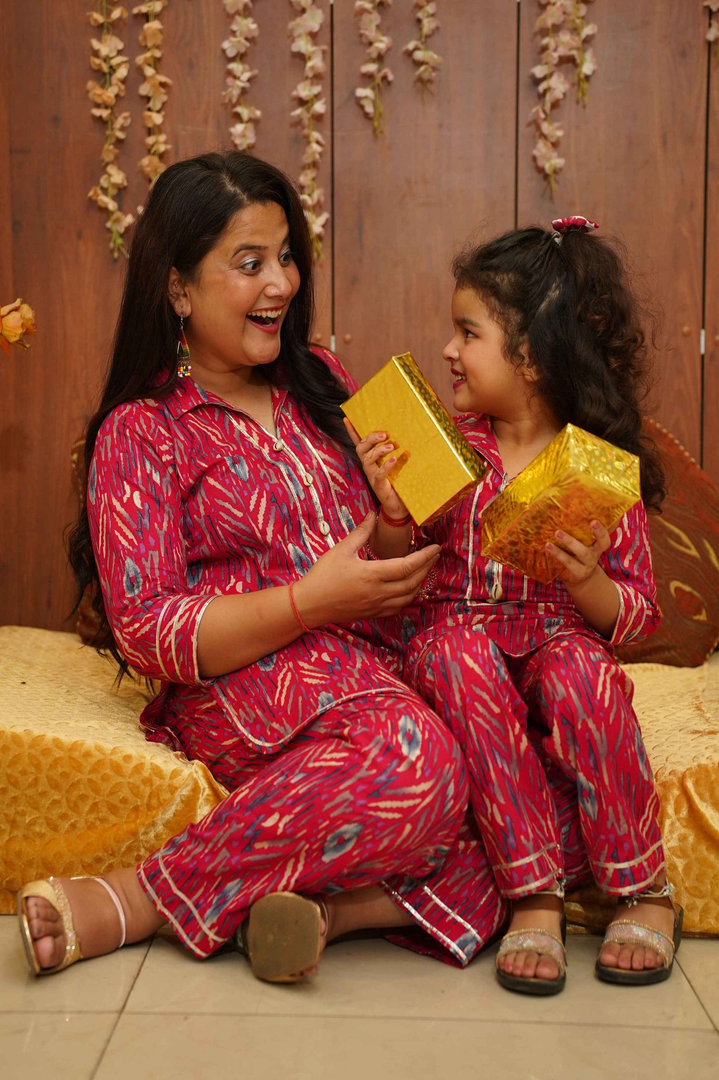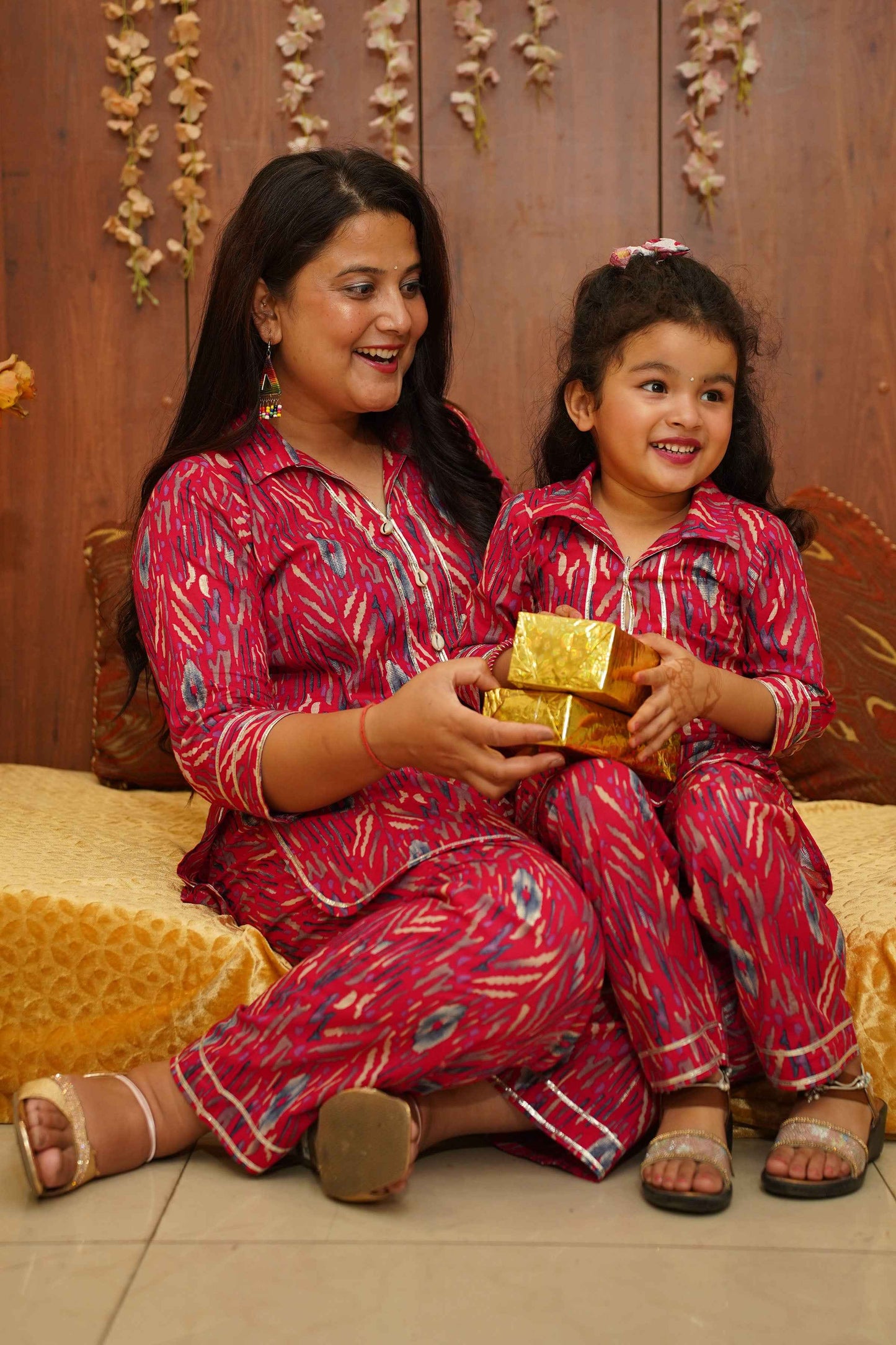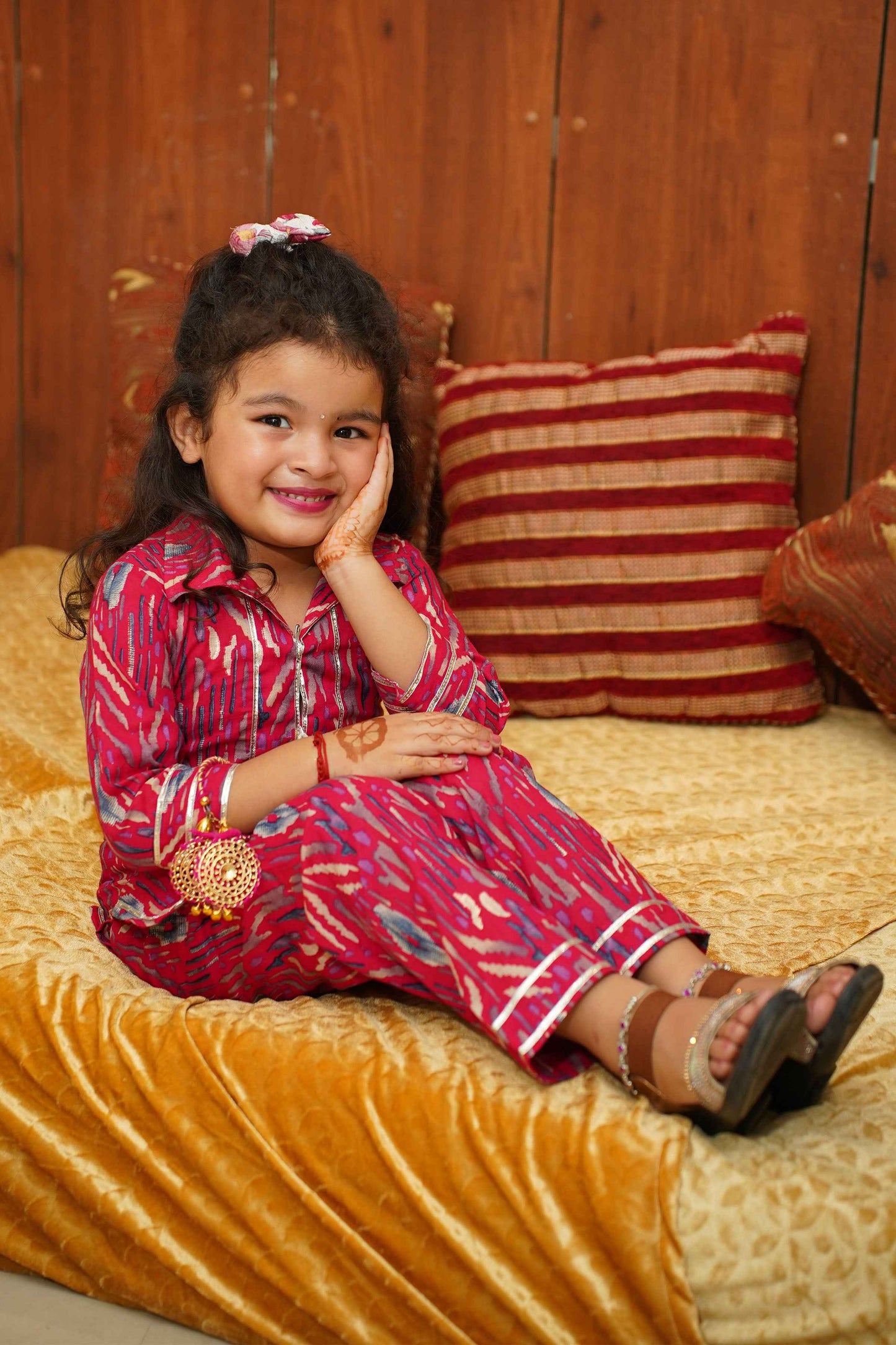 Brighten up their day with our Hot Pink Girls Co-ord Set! Crafted from Cotton fabric, this set features a playful Digital with foiled print with delicate lace detailing. The charming collar neckline is adorned with sea shells and lace accents, adding a touch of whimsy to their wardrobe. Perfect for any occasion, this set combines comfort and style effortlessly.