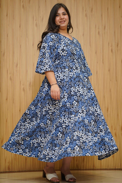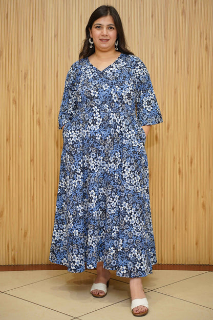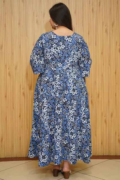 Indigo Blossom Floral Maxi Dress