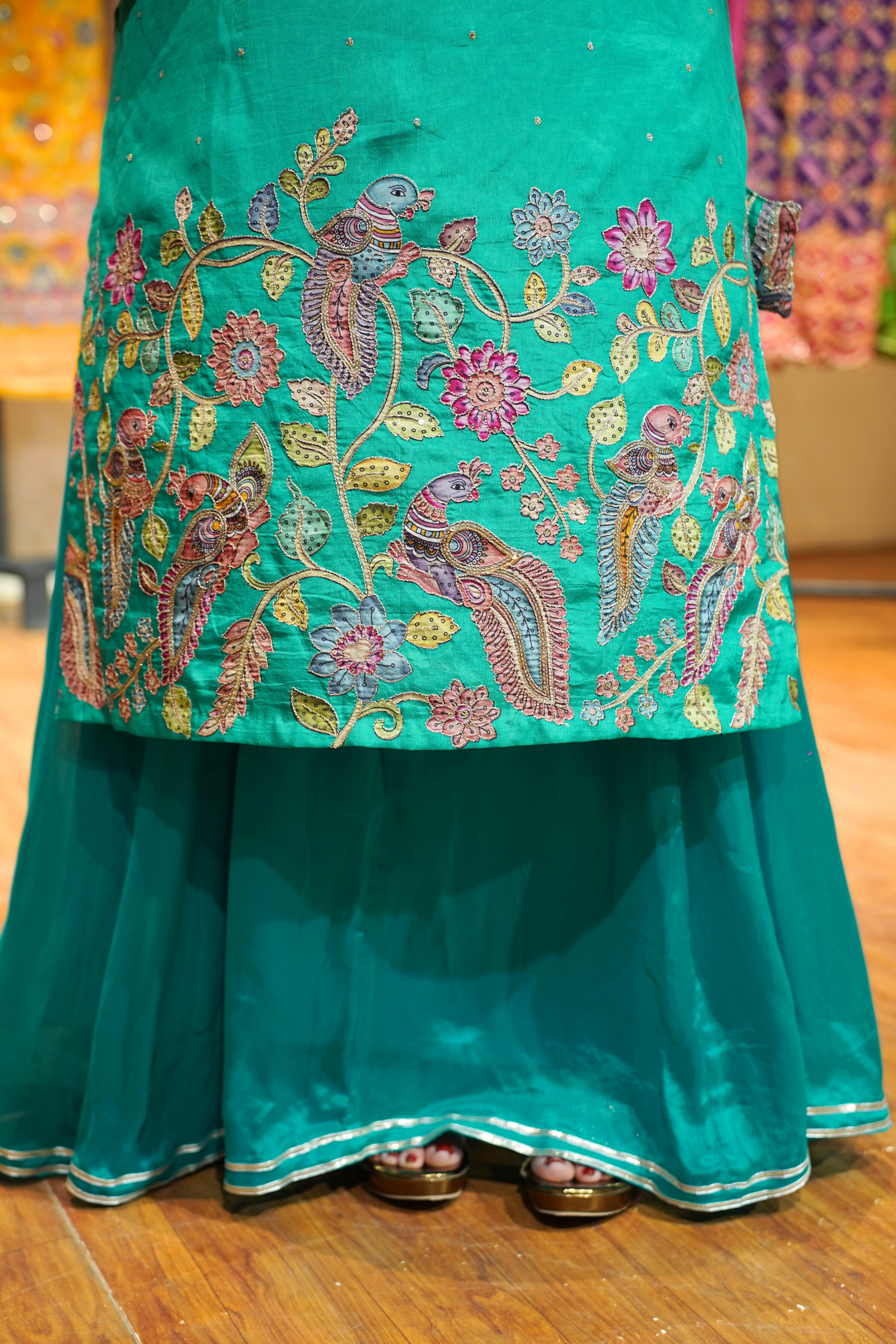 - Exquisite peacock motifs with placement work