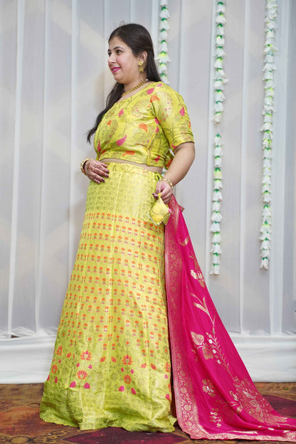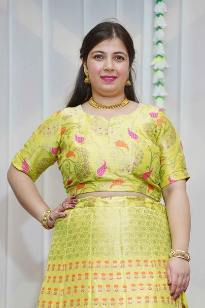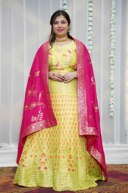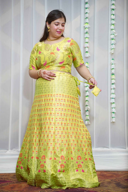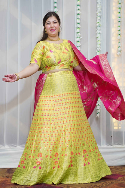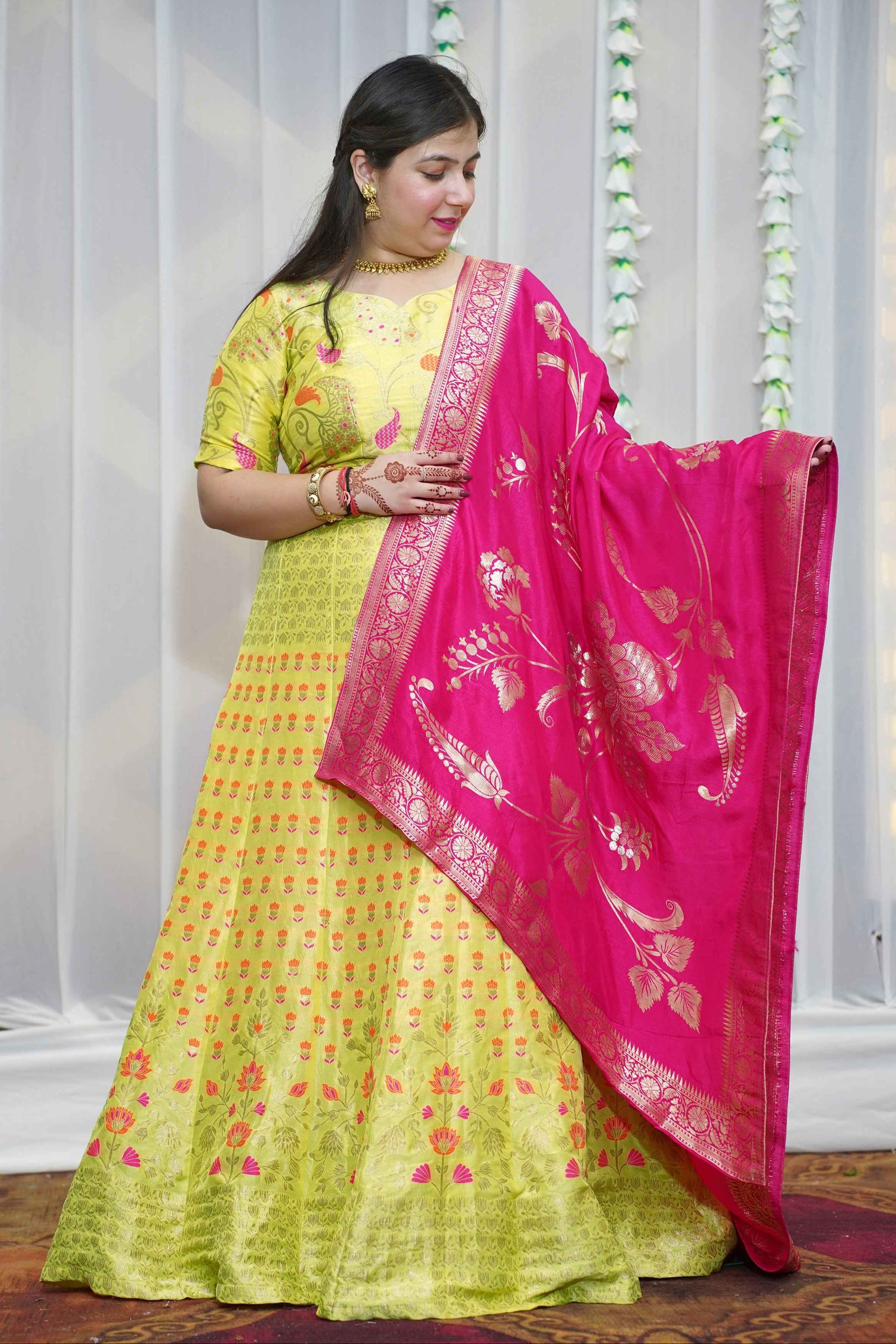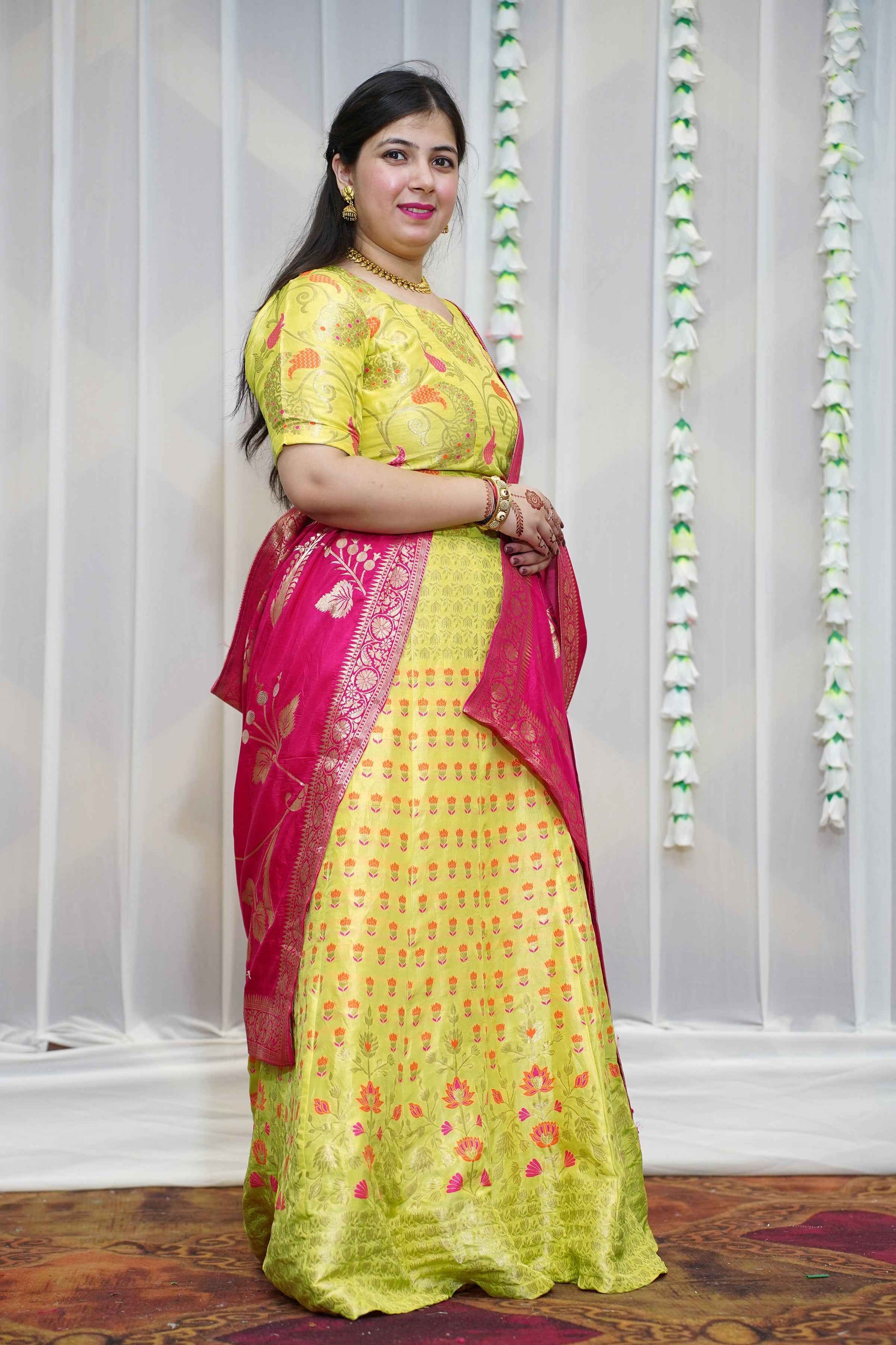 - Accompanied with a Readymade Silk Blouse and Dupatta
