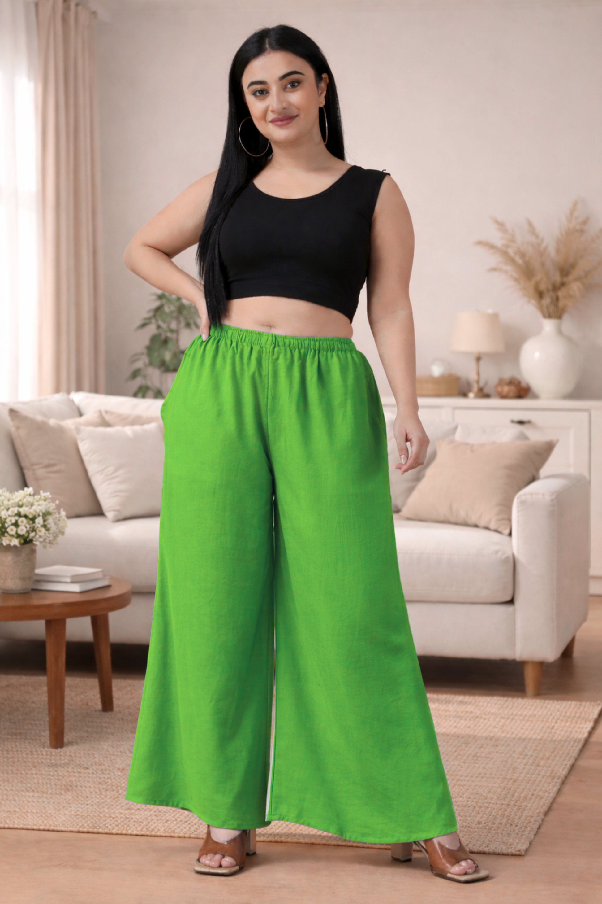 Light Green Rayon Loose Palazzo