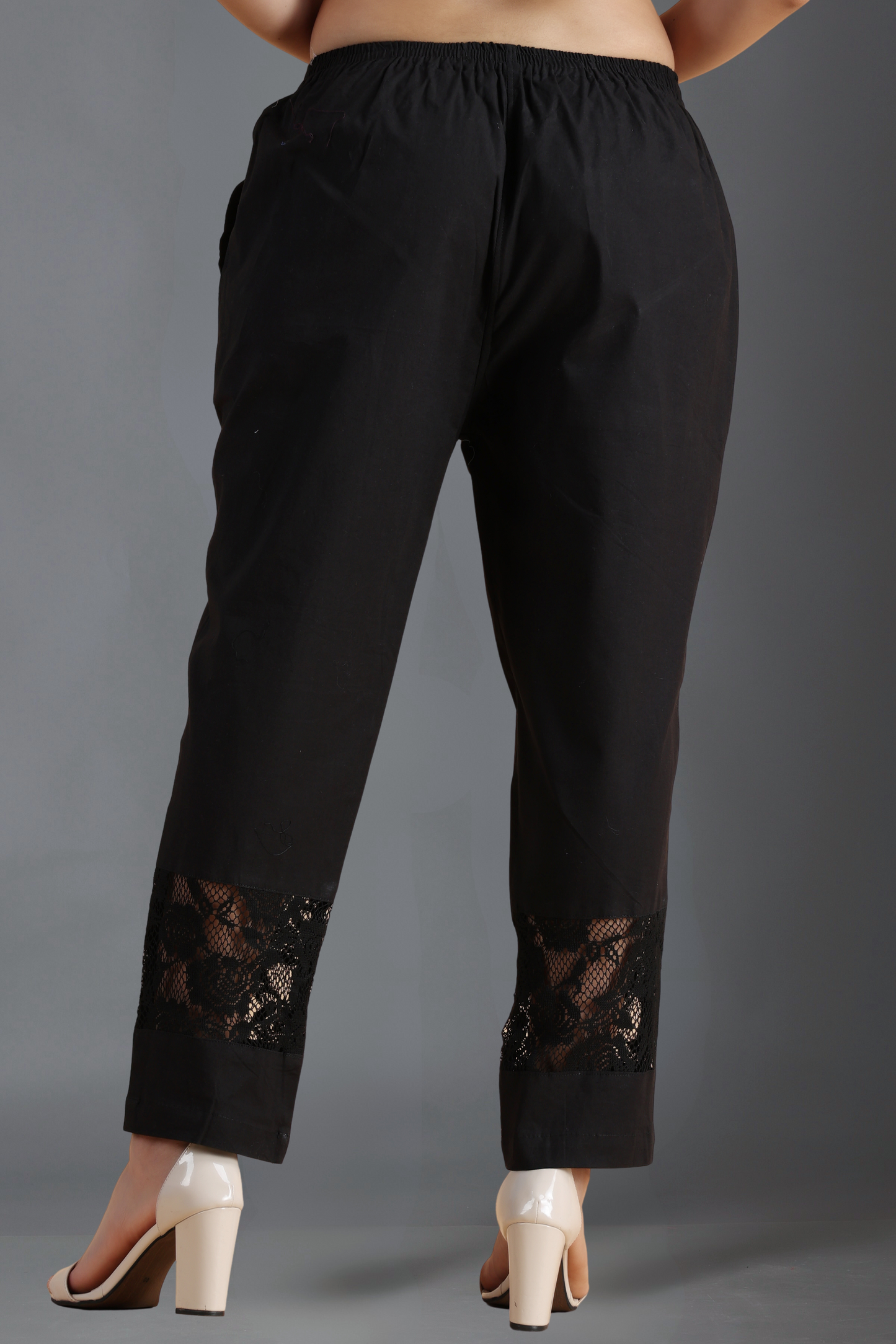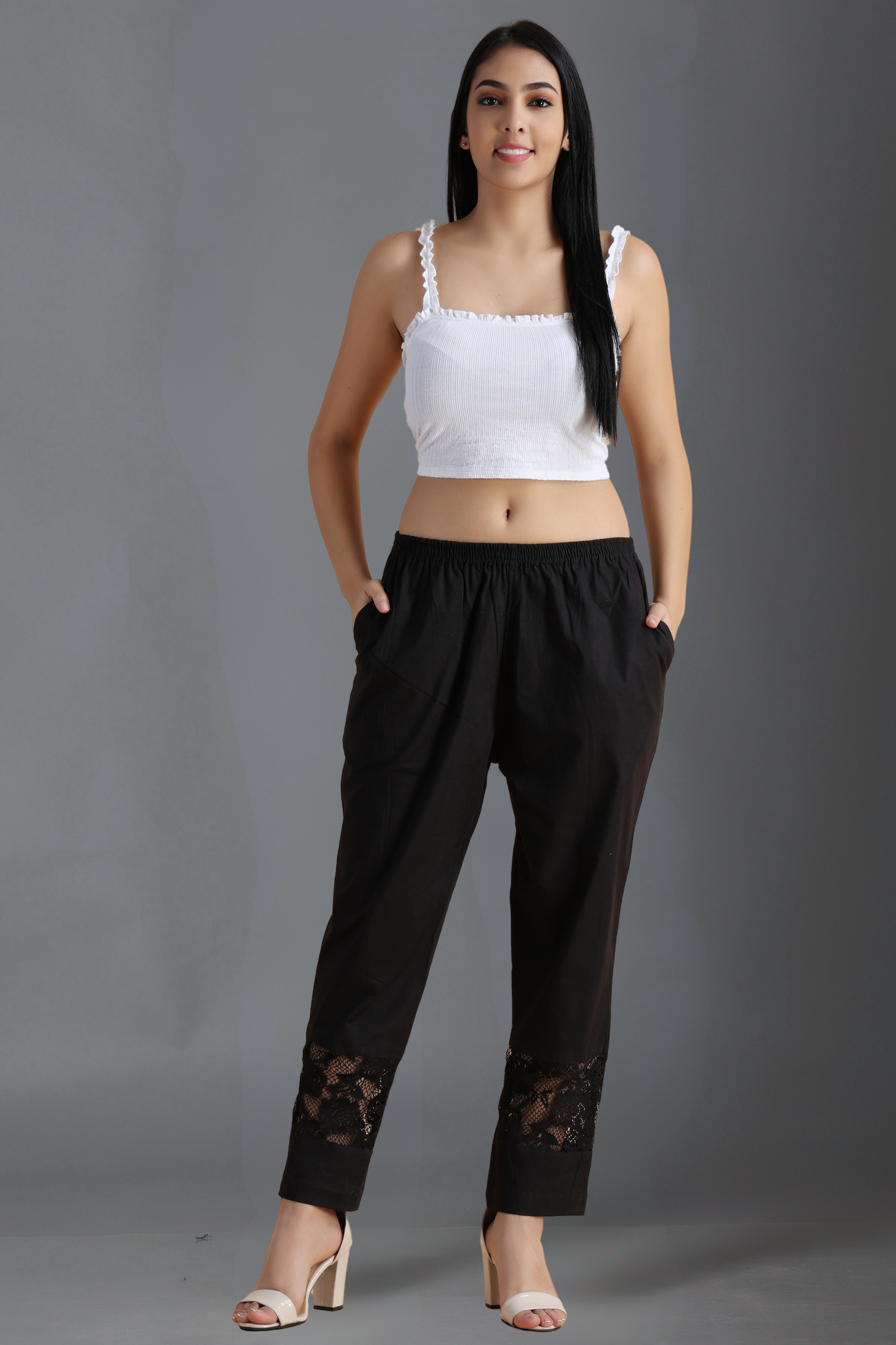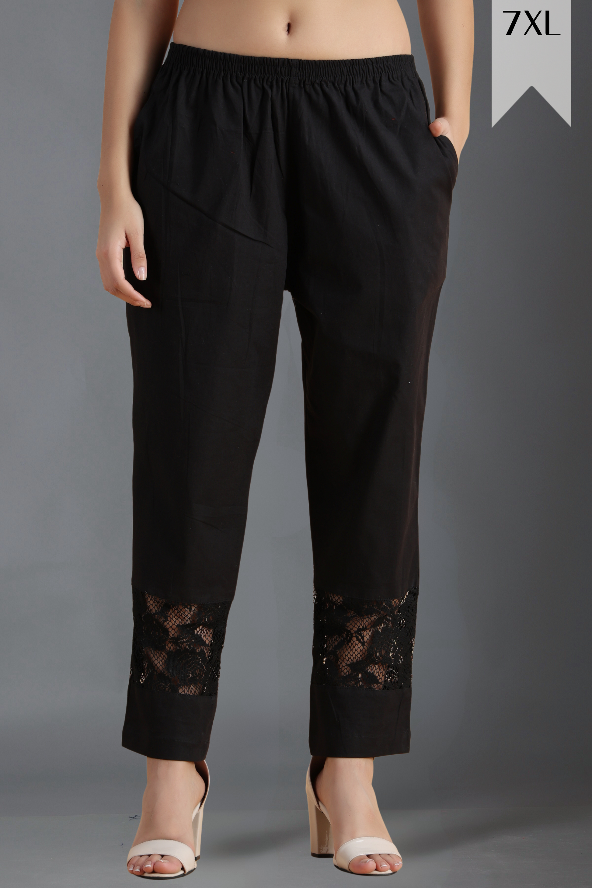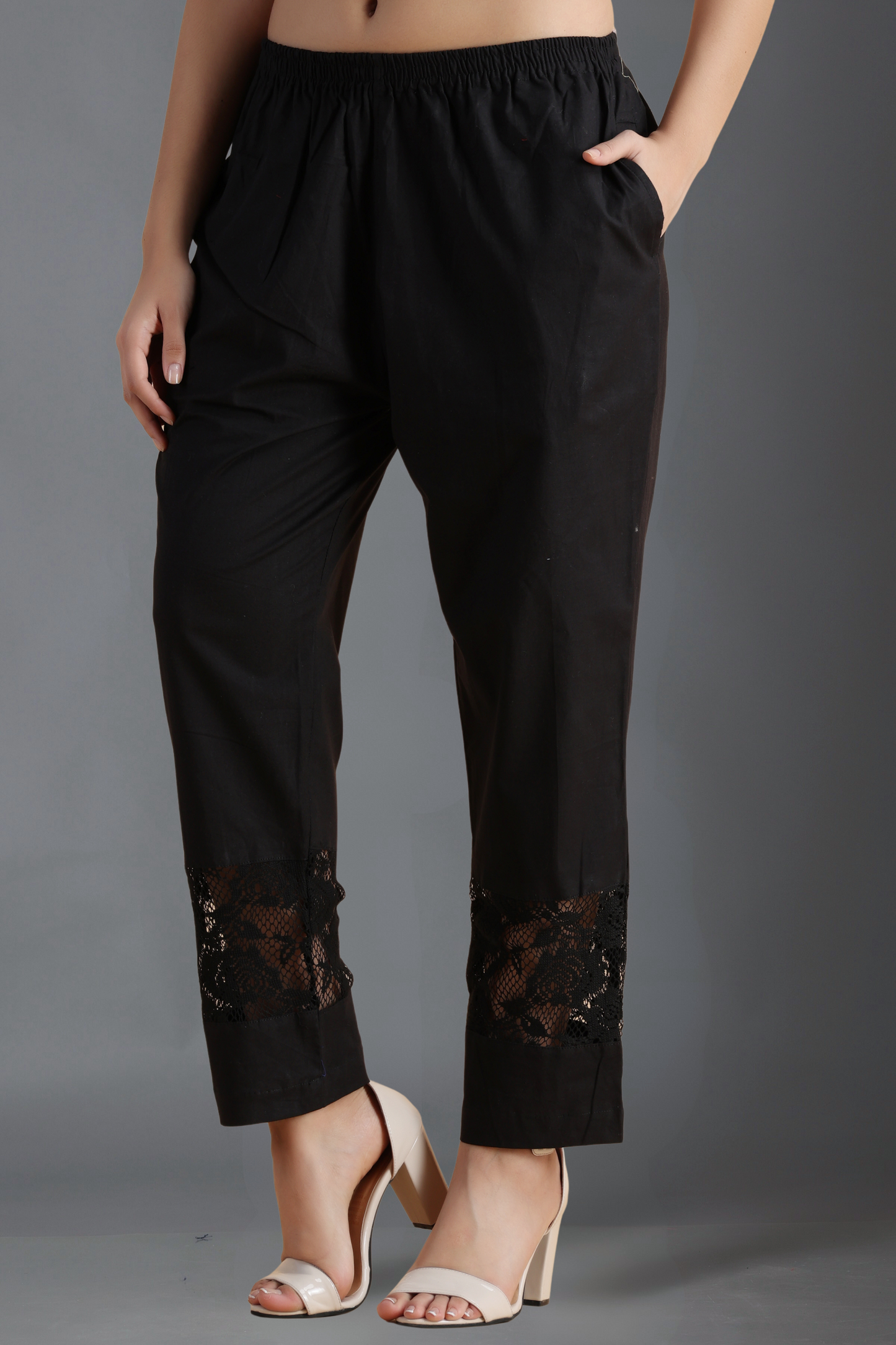 Give your ethnic wear a top-notch with these straight pants designed in a solid hue and complemented with double pockets and lace hems. Made with Cotton, these pants feature a regular fit & elasticized waistband for unmatched comfort. Team them with a printed kurta, dangling earrings, and a pair of flats.