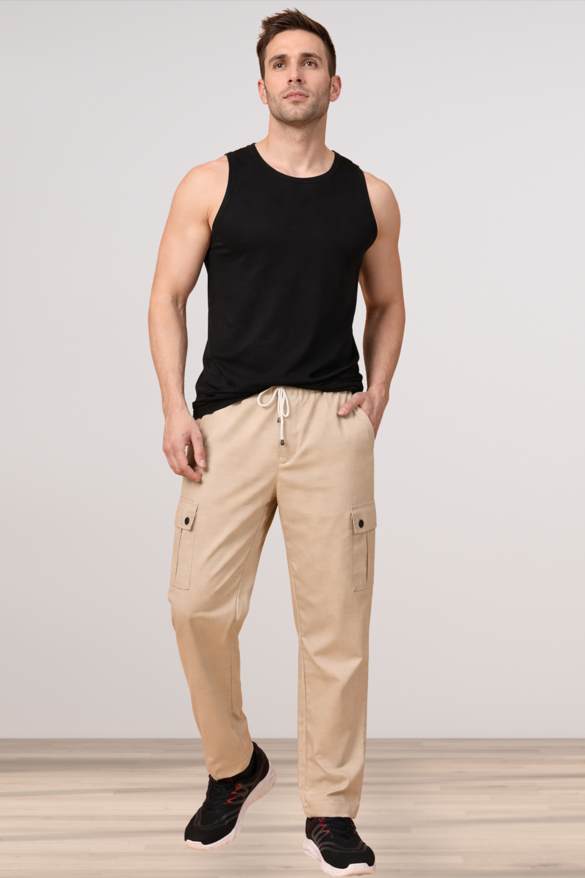 Introducing the Light Beige Textured Cargo, expertly crafted from soft Lycra Poly Viscose fabric for the perfect fit and all-day comfort. Designed with two side pockets for added practicality, these pants offer a chic and versatile style suitable for any occasion. The textured finish adds a touch of sophistication, making them ideal for both casual outings and smart-casual events.