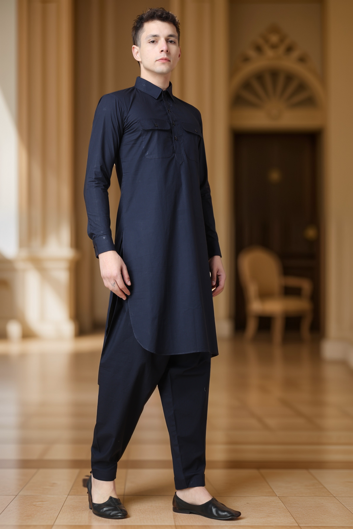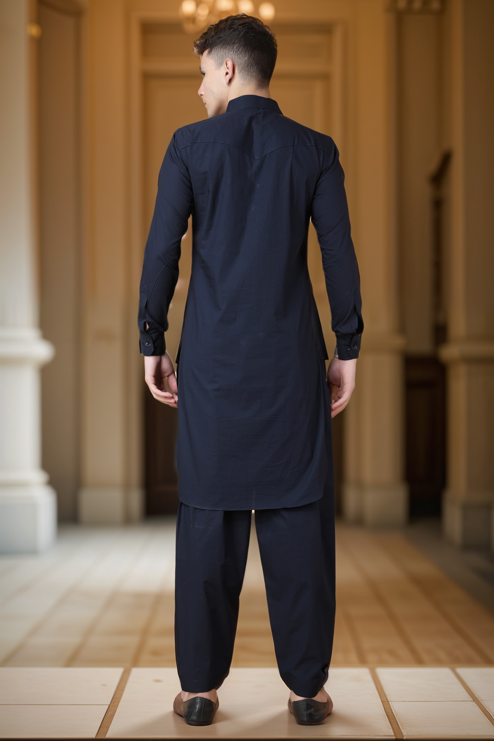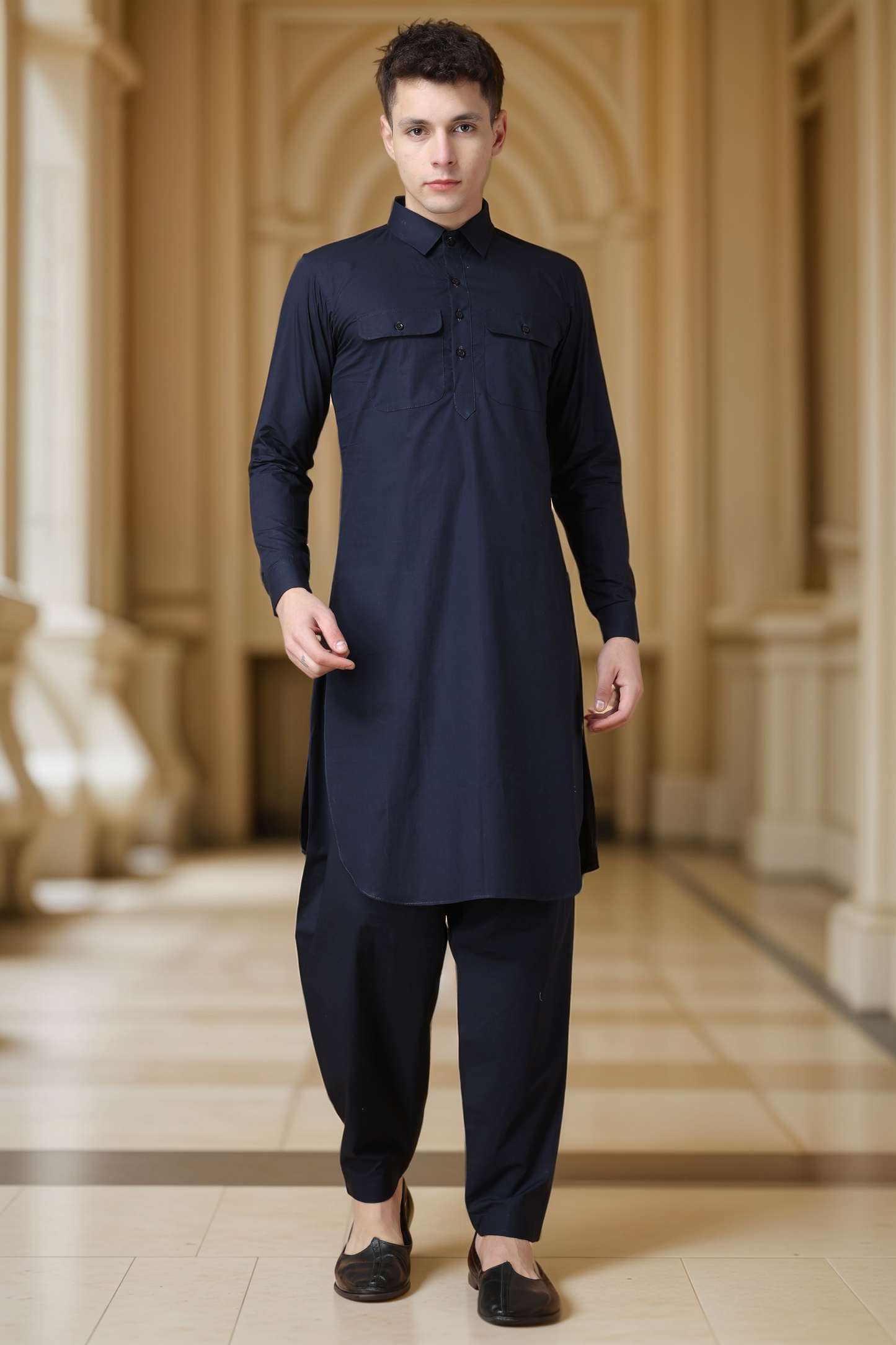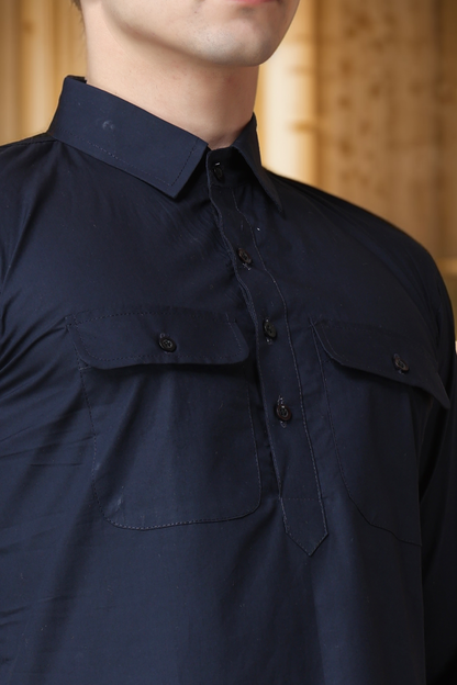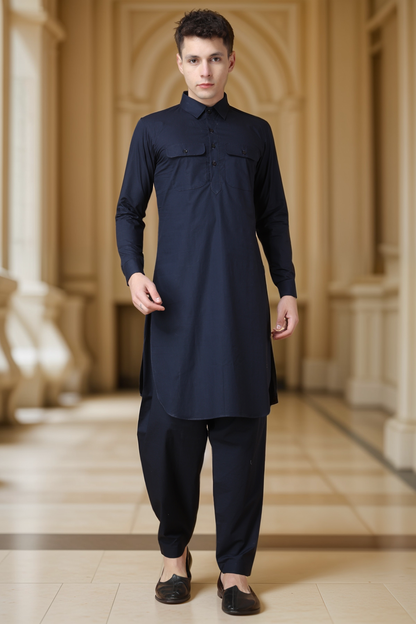 - Navy Blue Cotton Pathani Suit