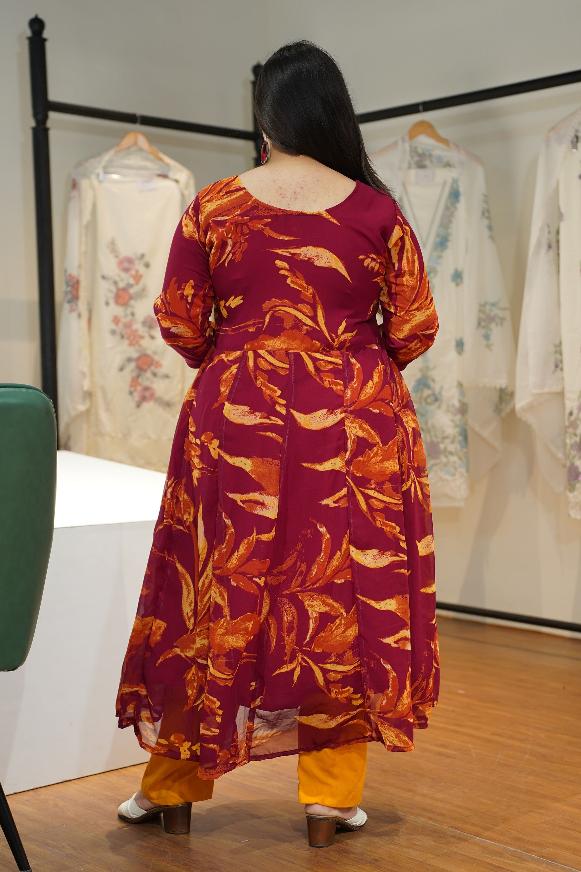 - Flowy anarkali cut with a rich flare