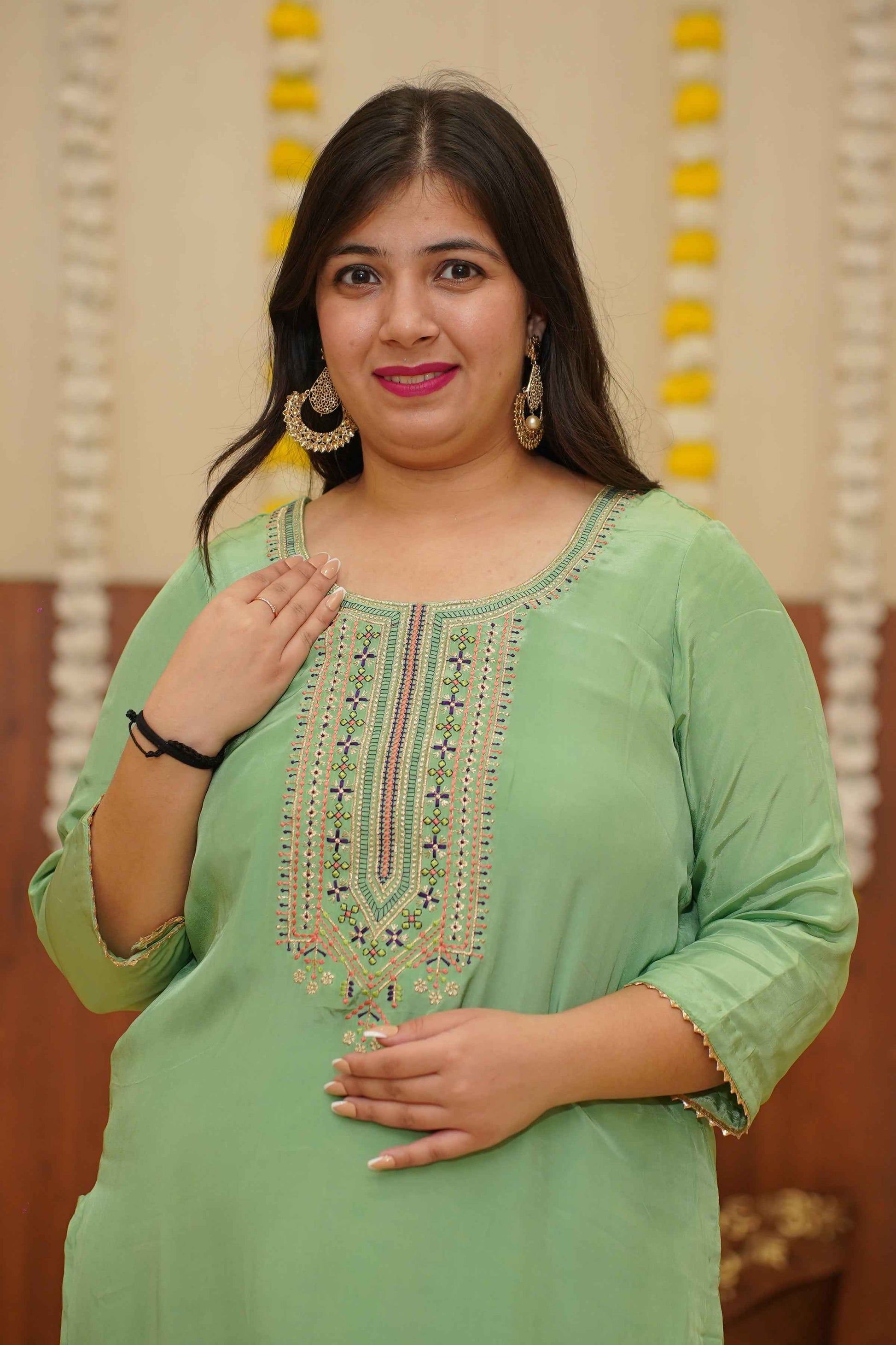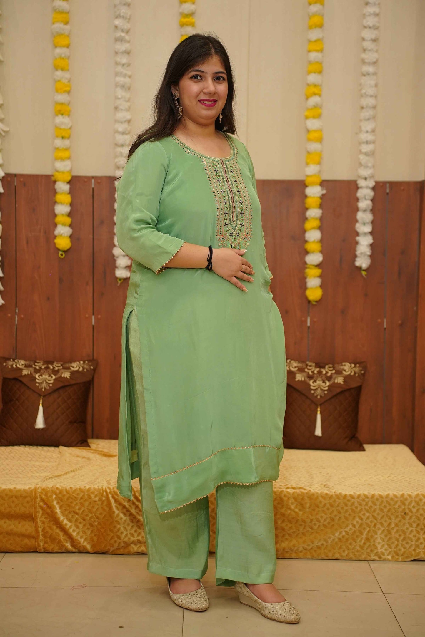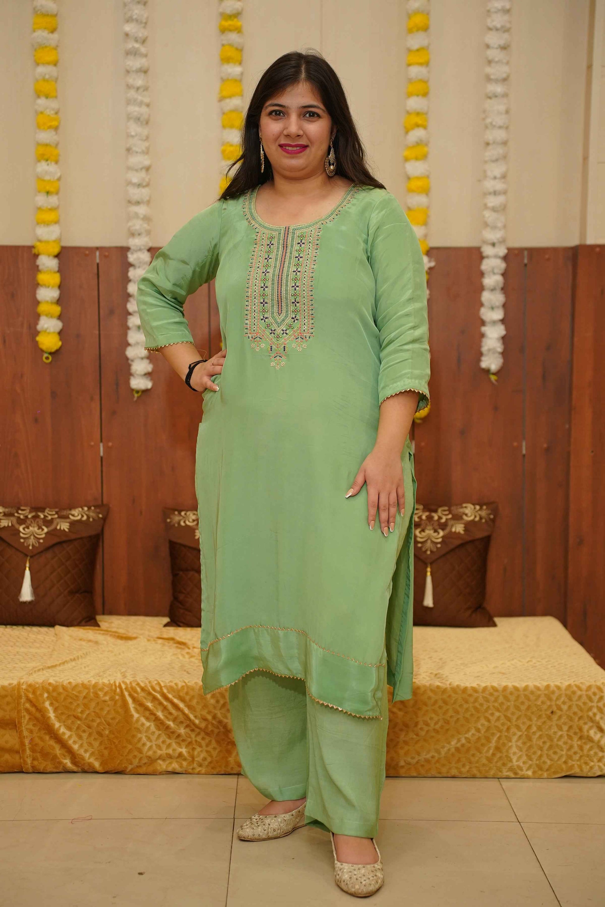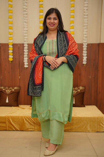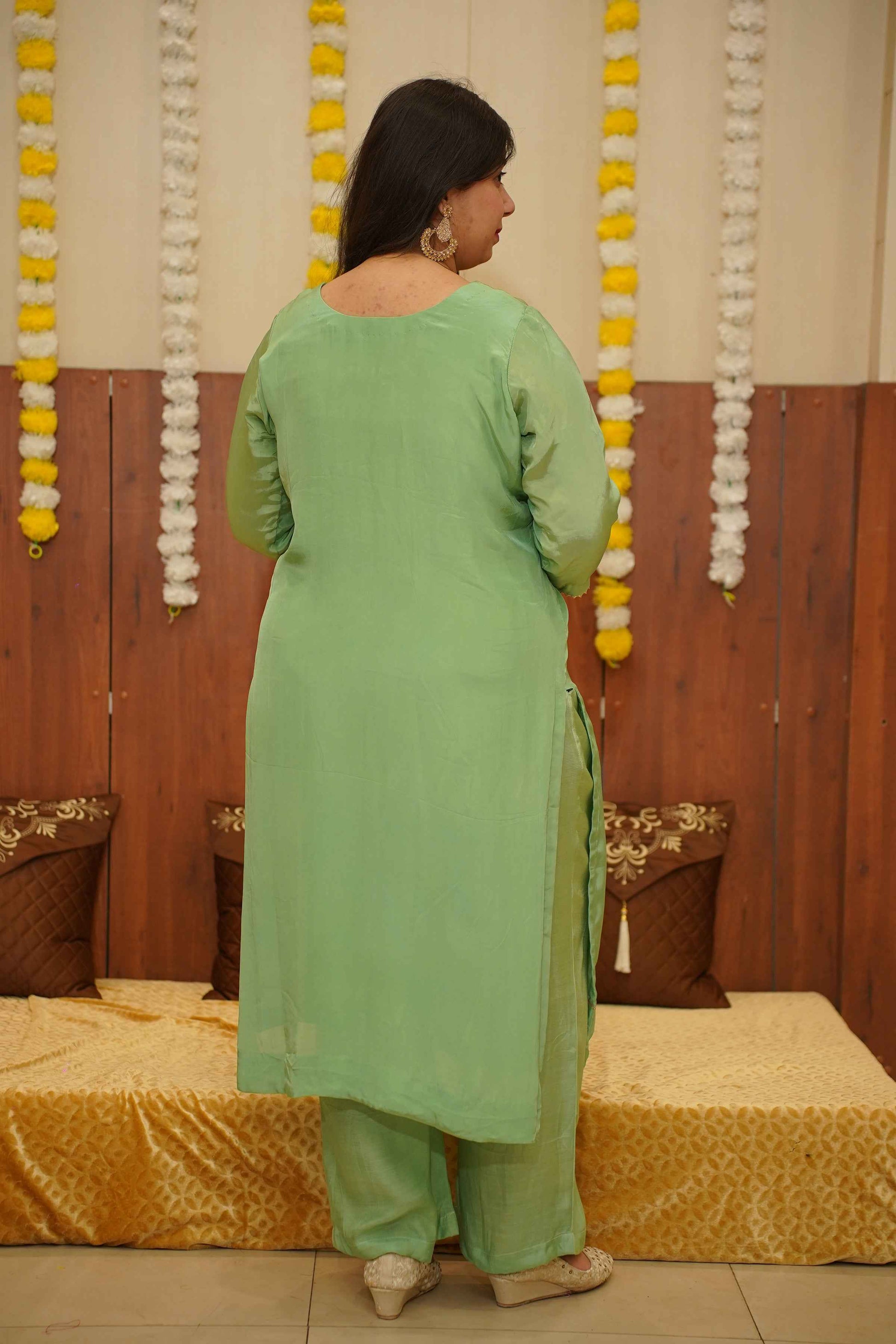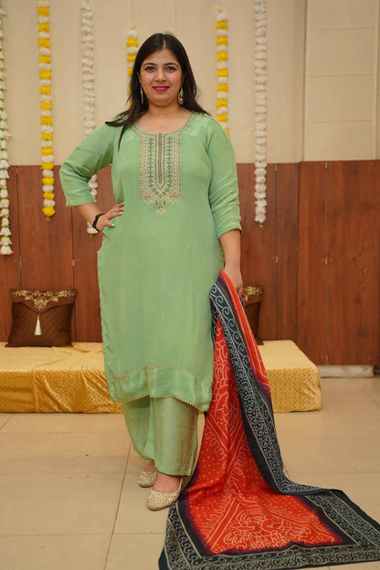 - Green Suit Set made from Silk fabric