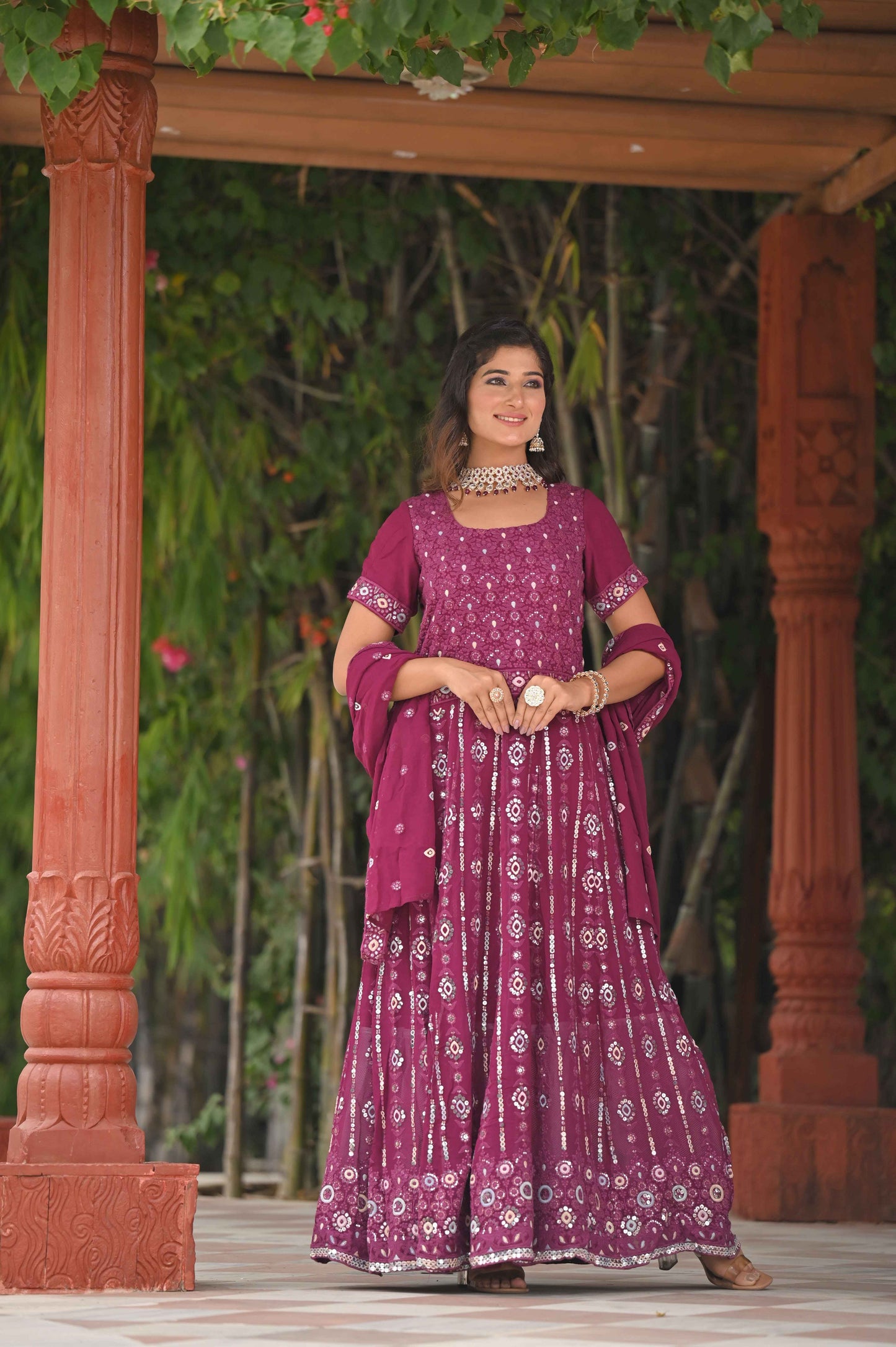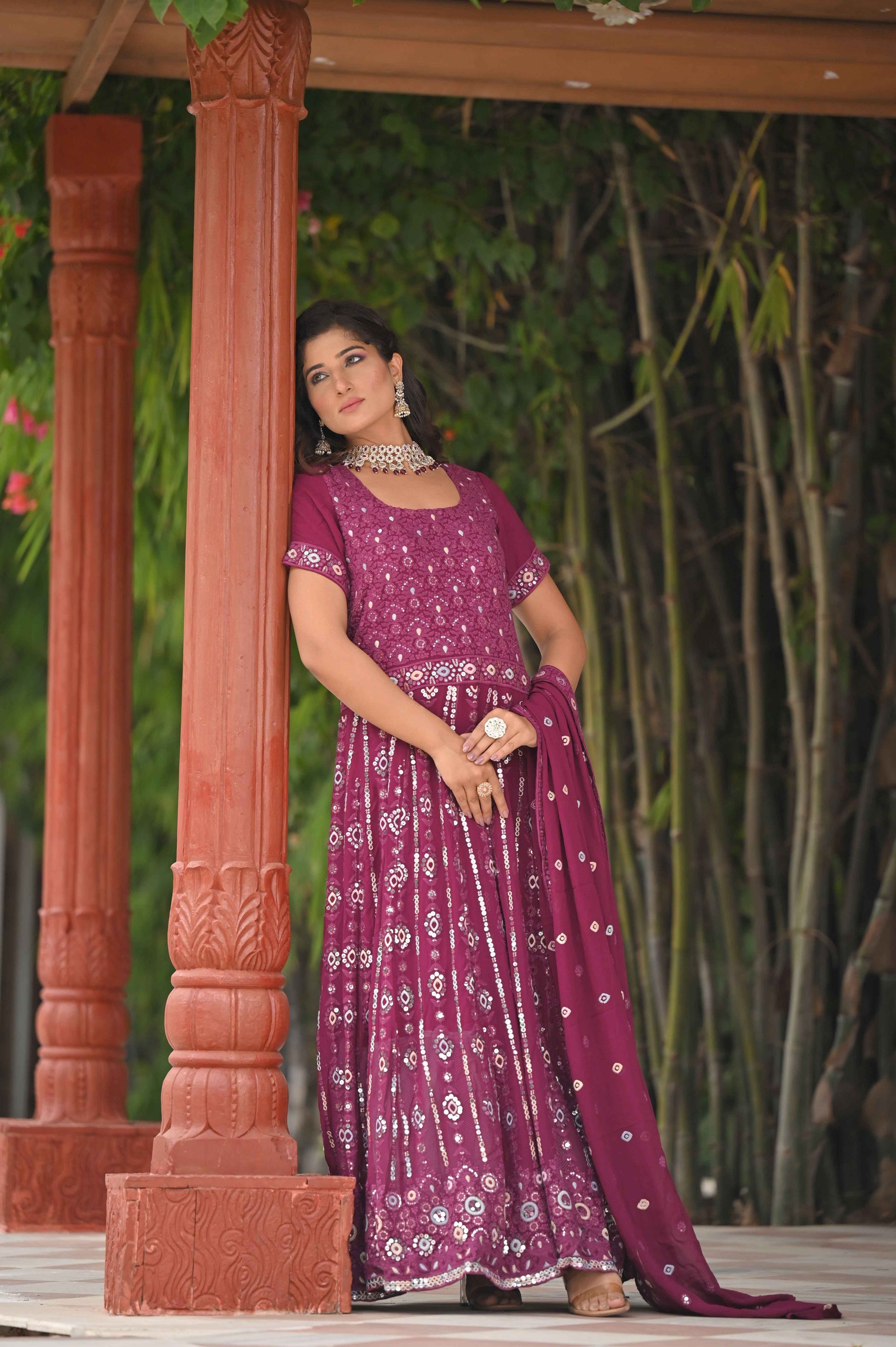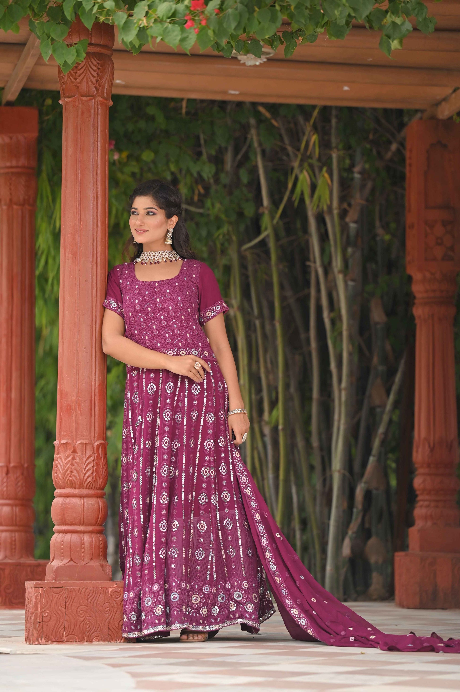 - Features intricate Thread Embroidery with Mirror Details