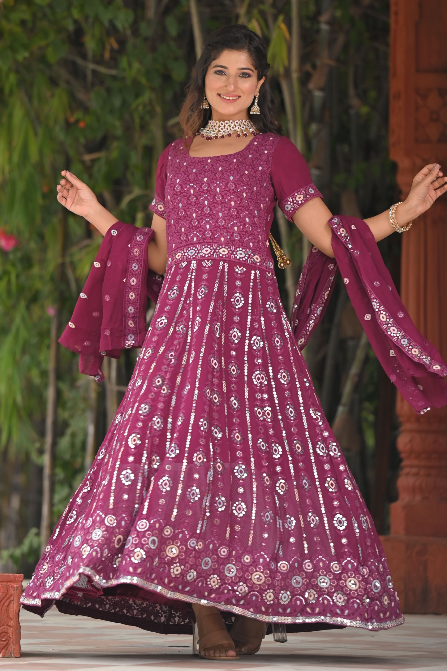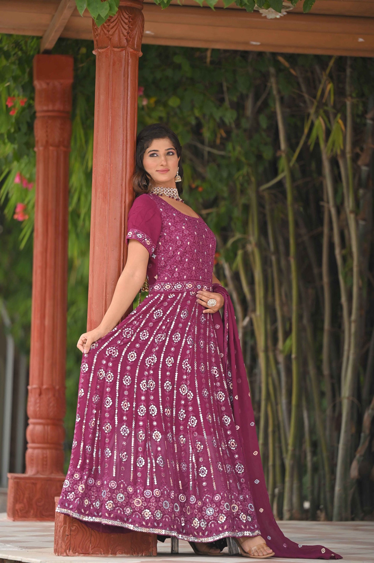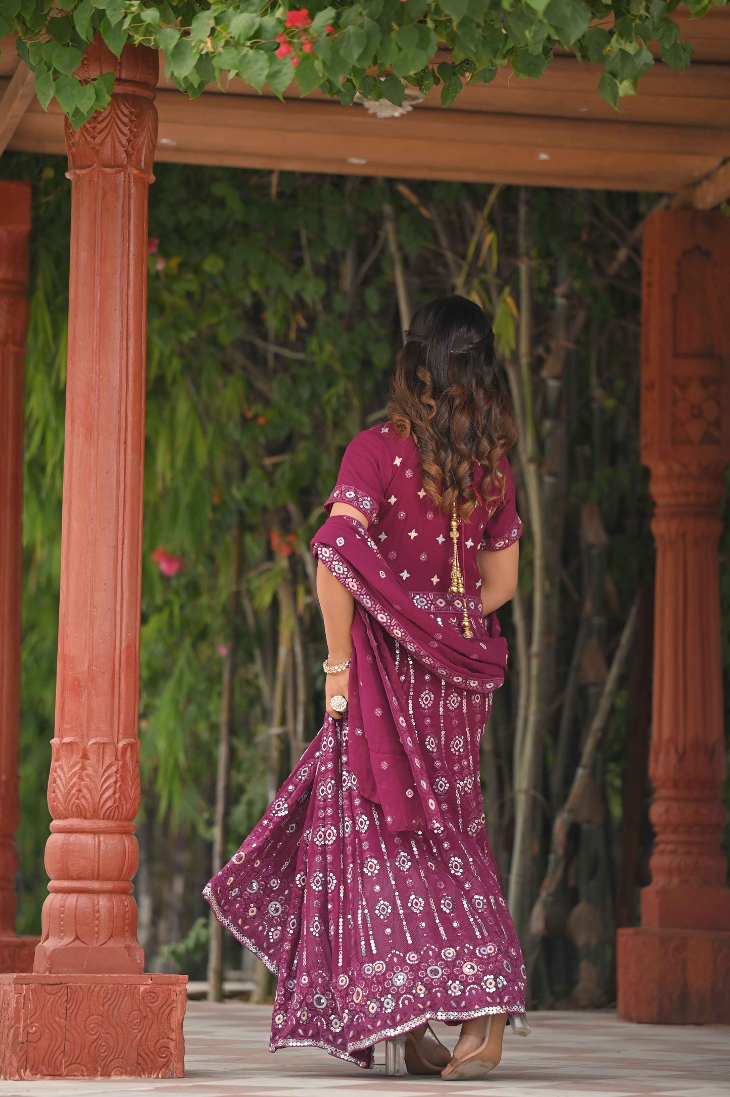 - Features intricate Thread Embroidery with Mirror Details