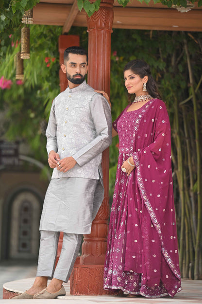 - Wine Mirrored Dress made from Georgette fabric