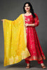- Magenta Anarkali Suit Set made from Tanjore Silk fabric