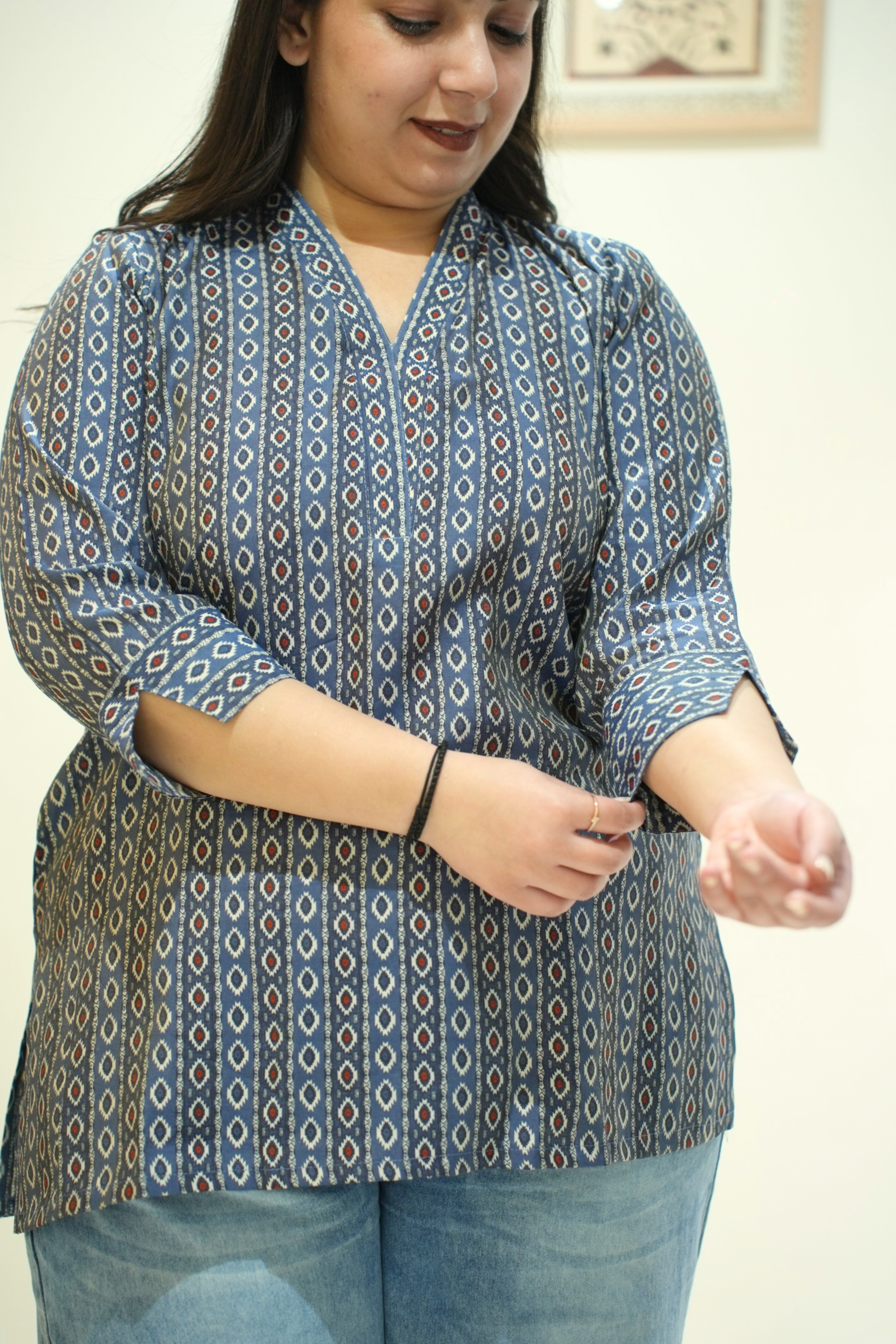Midnight Blue Printed Cotton Top