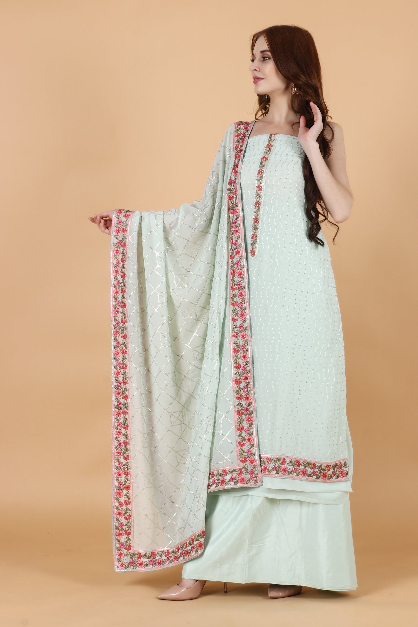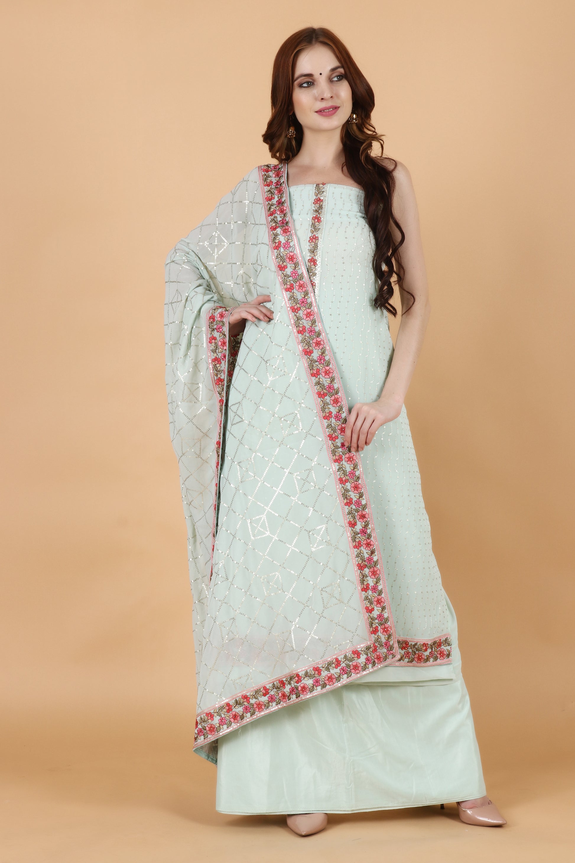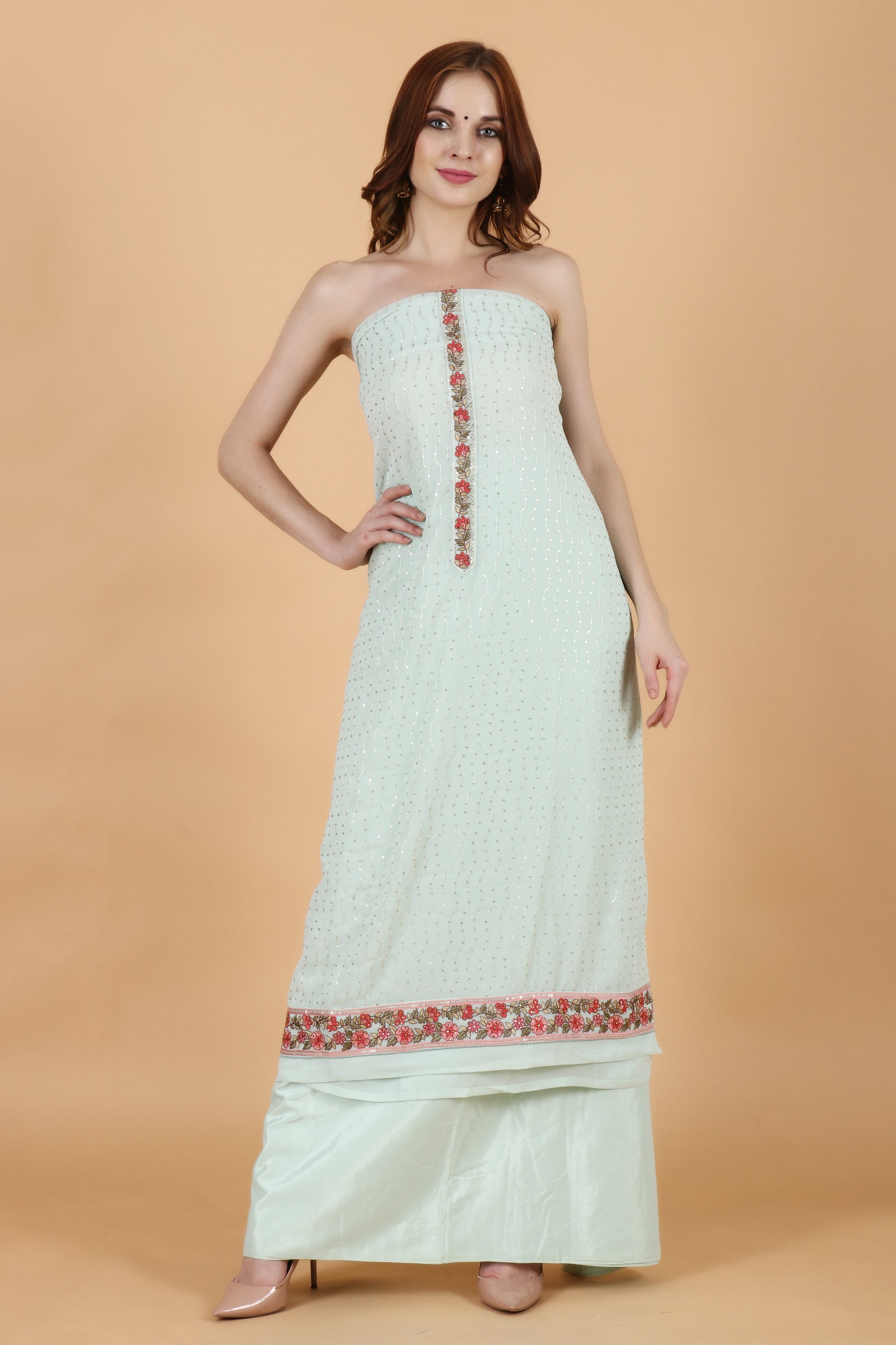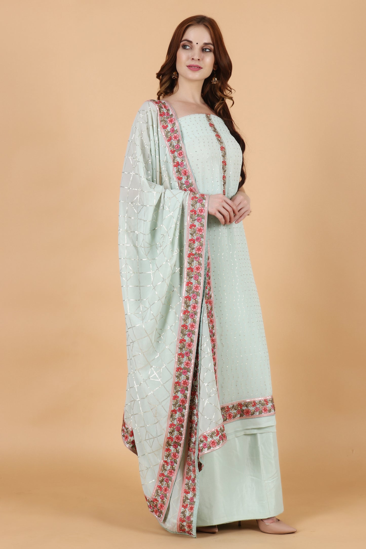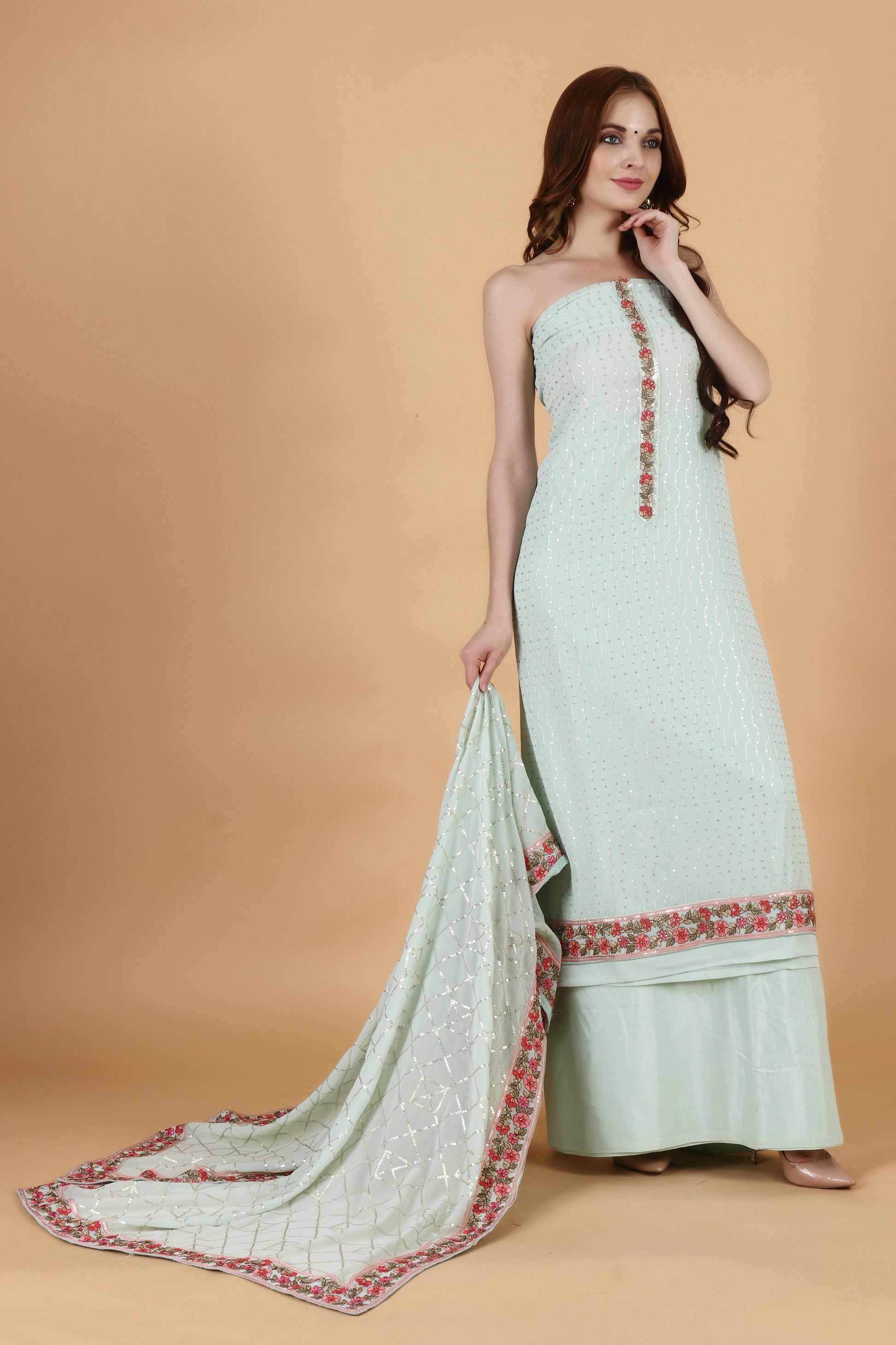 - Mint Green Unstitched Salwar Suit in Georgette fabric